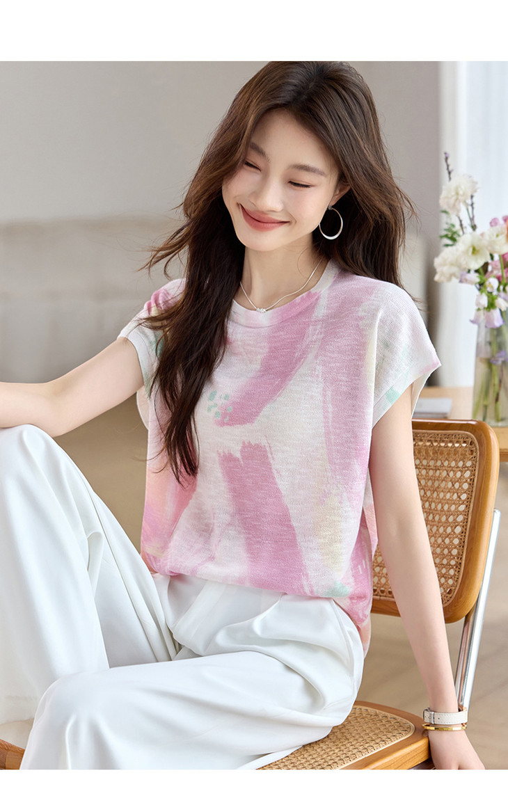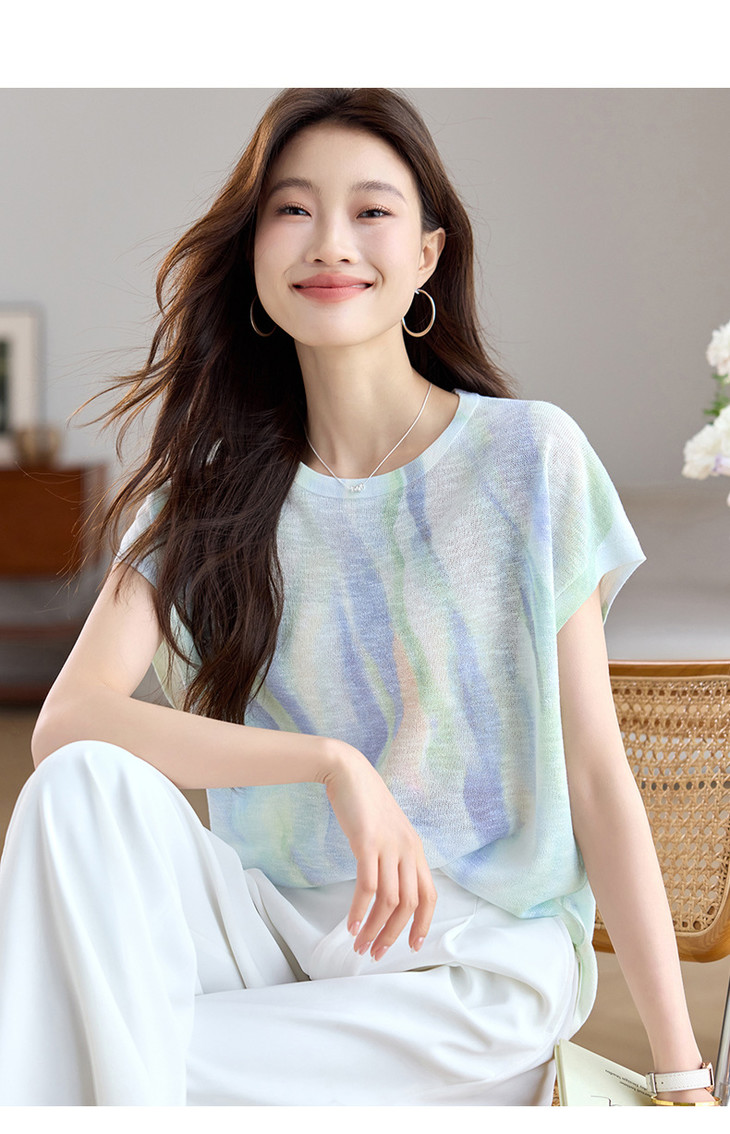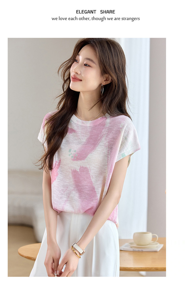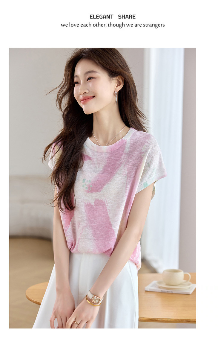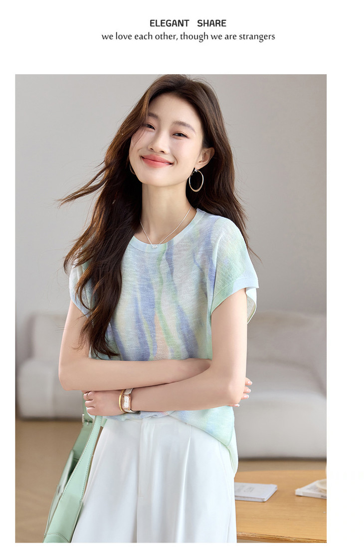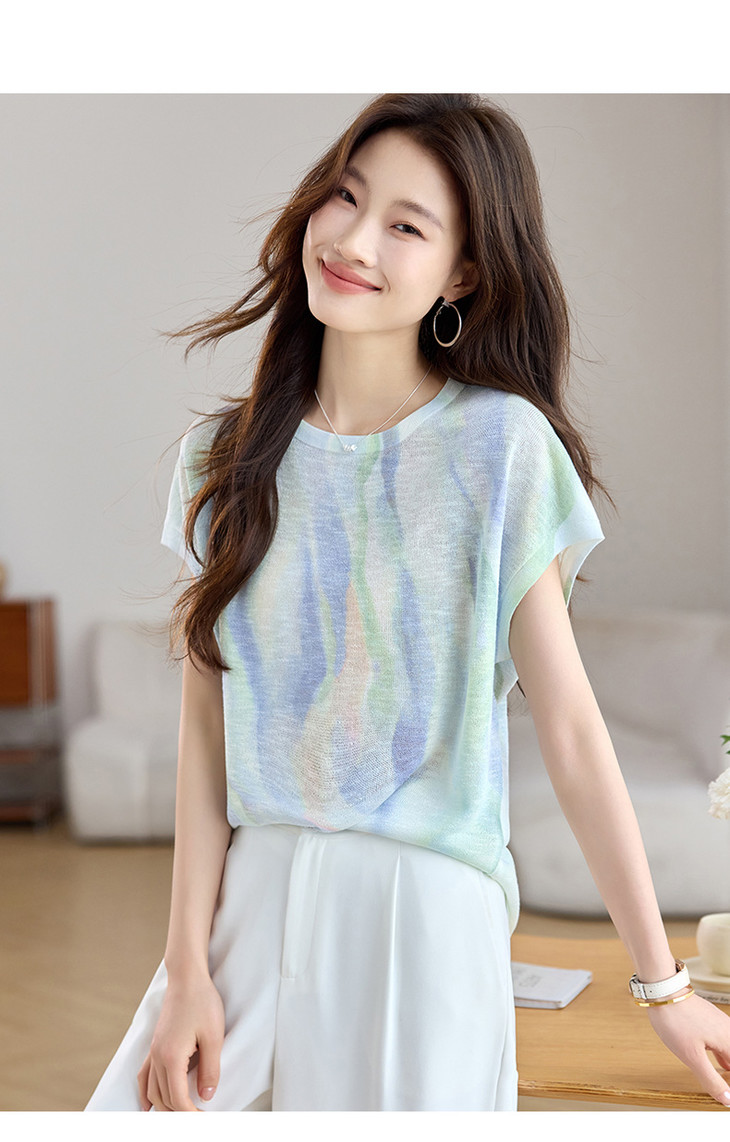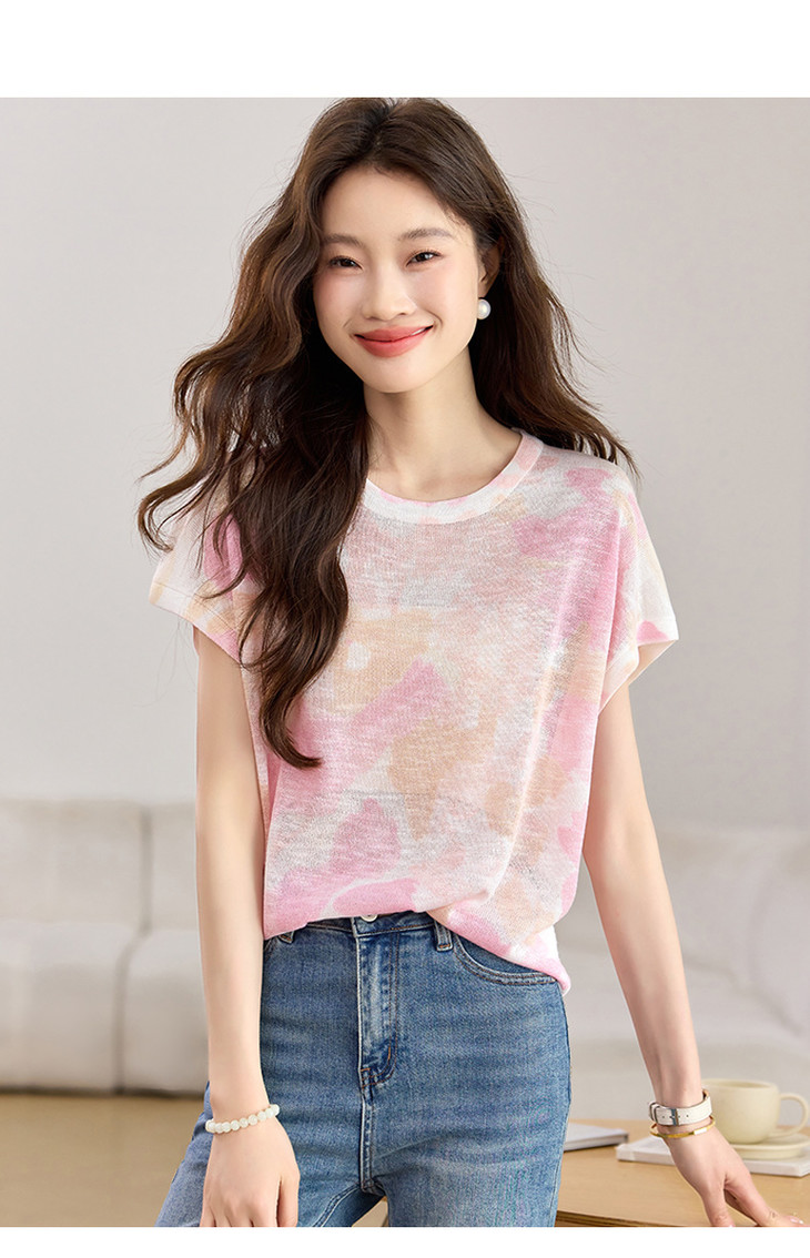 女遮肚子显瘦圆领休闲印花冰丝针织衫CC2767
