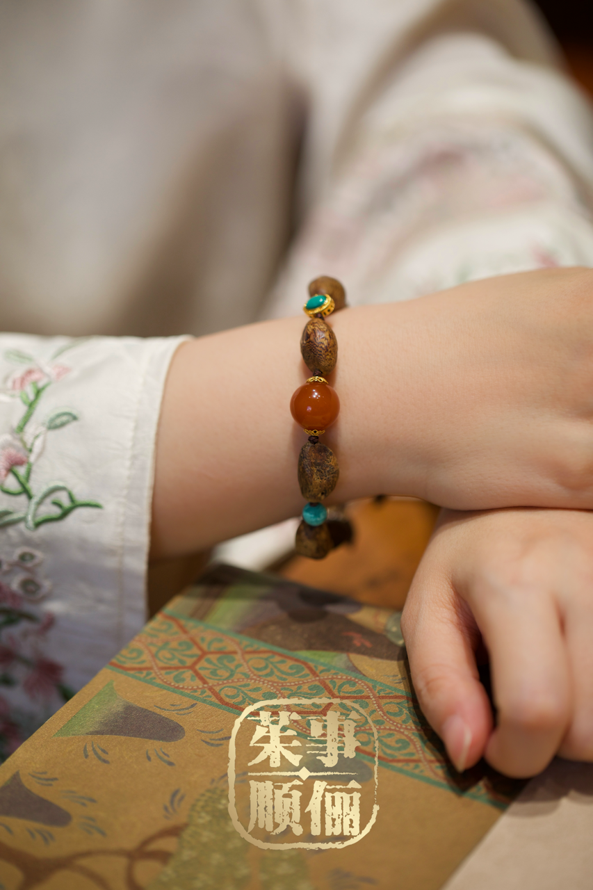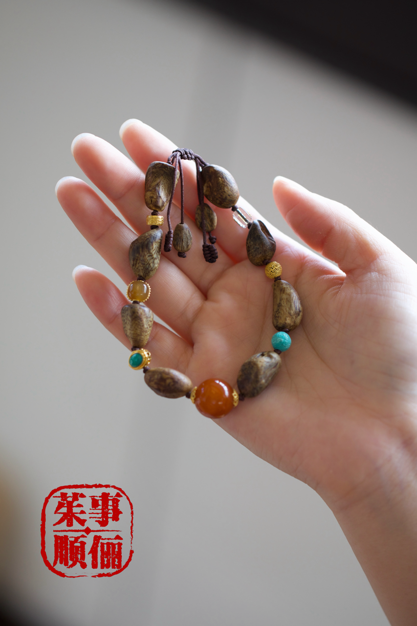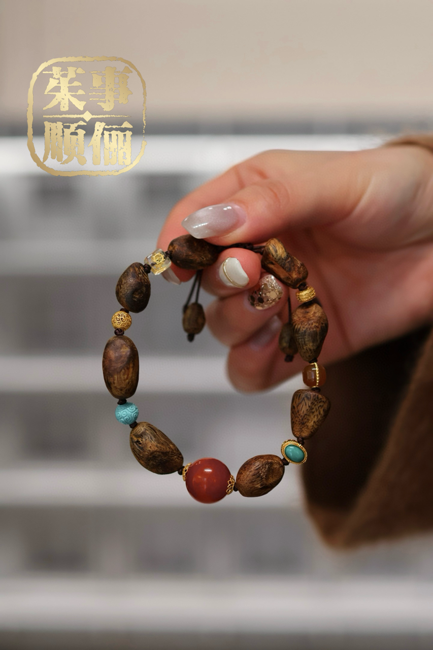【茱事顺俪】18k金沉香绿松蜜蜡手链