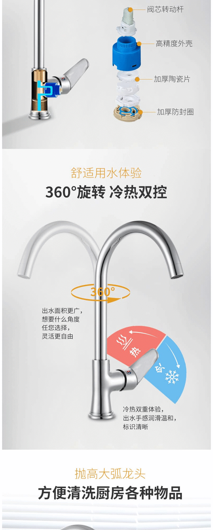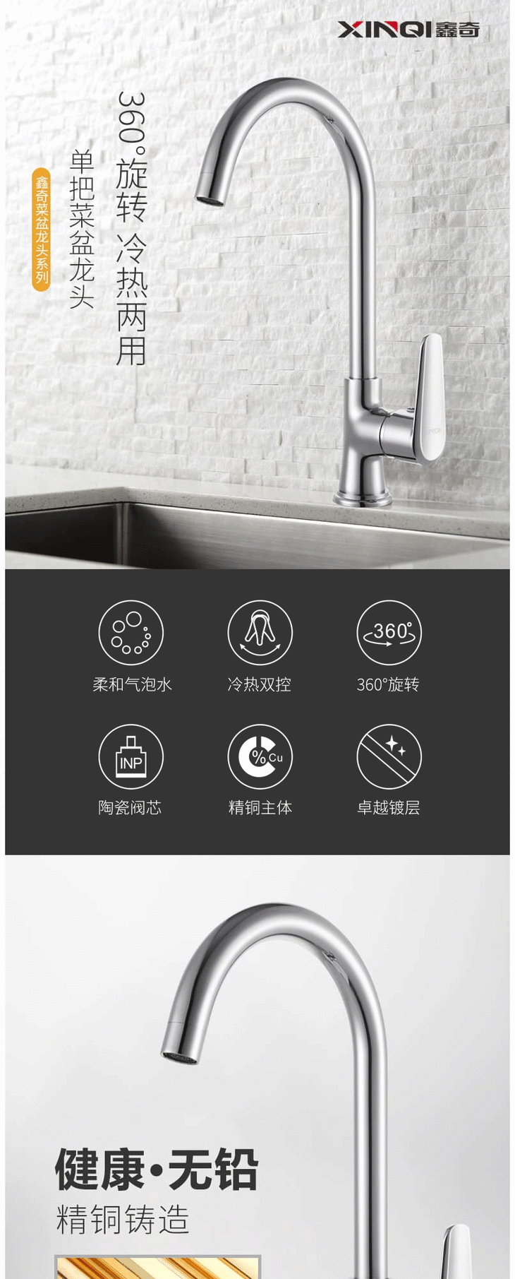 菜盆水龙头 单把菜盆龙头 360°旋转 冷热两用 水龙头 WL-7080