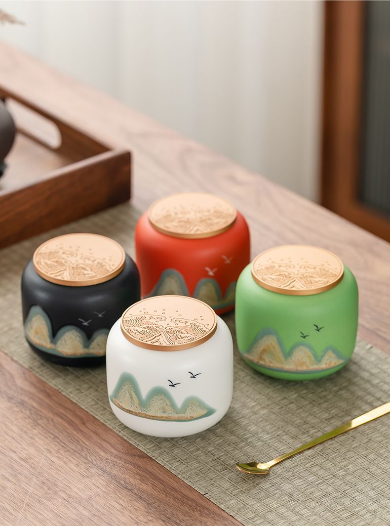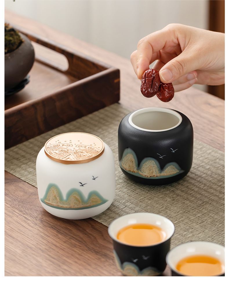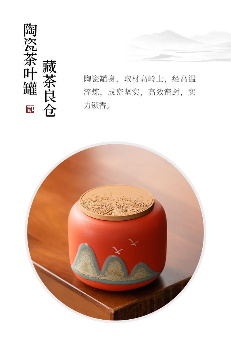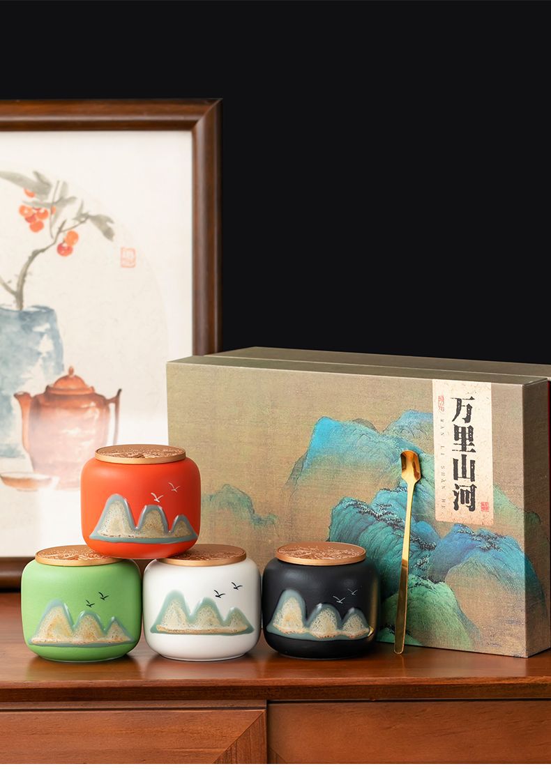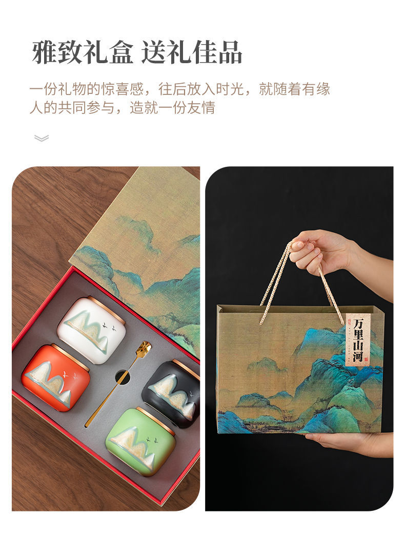 「四件套!礼盒装」国潮茶叶罐茶叶包装盒密封罐餐饮用具小茶罐红茶绿茶礼盒商务礼品套装