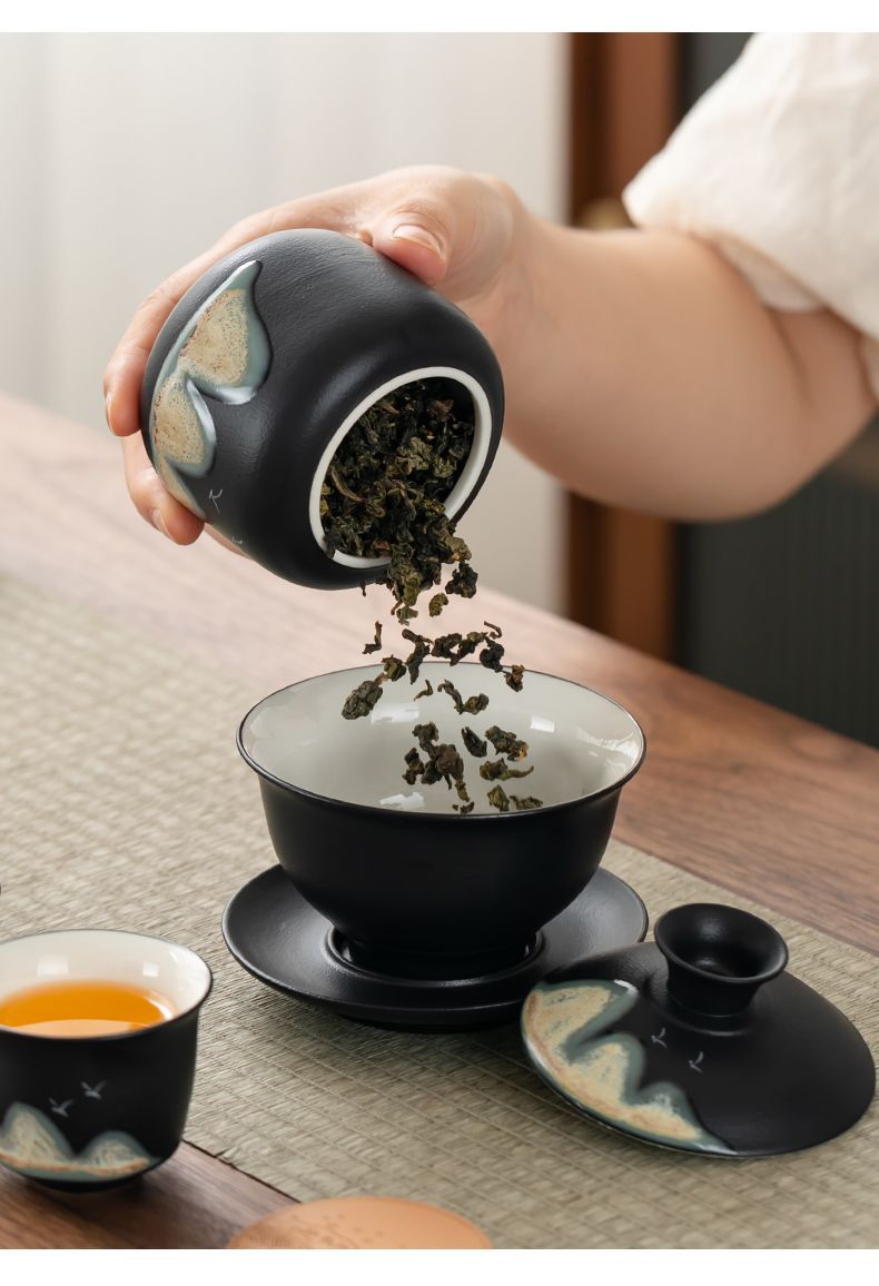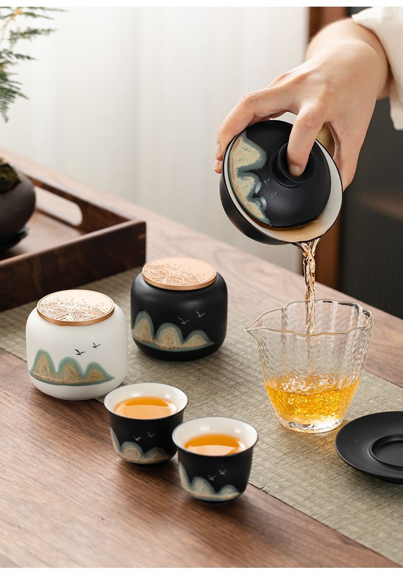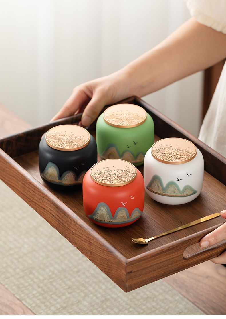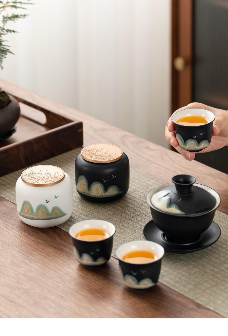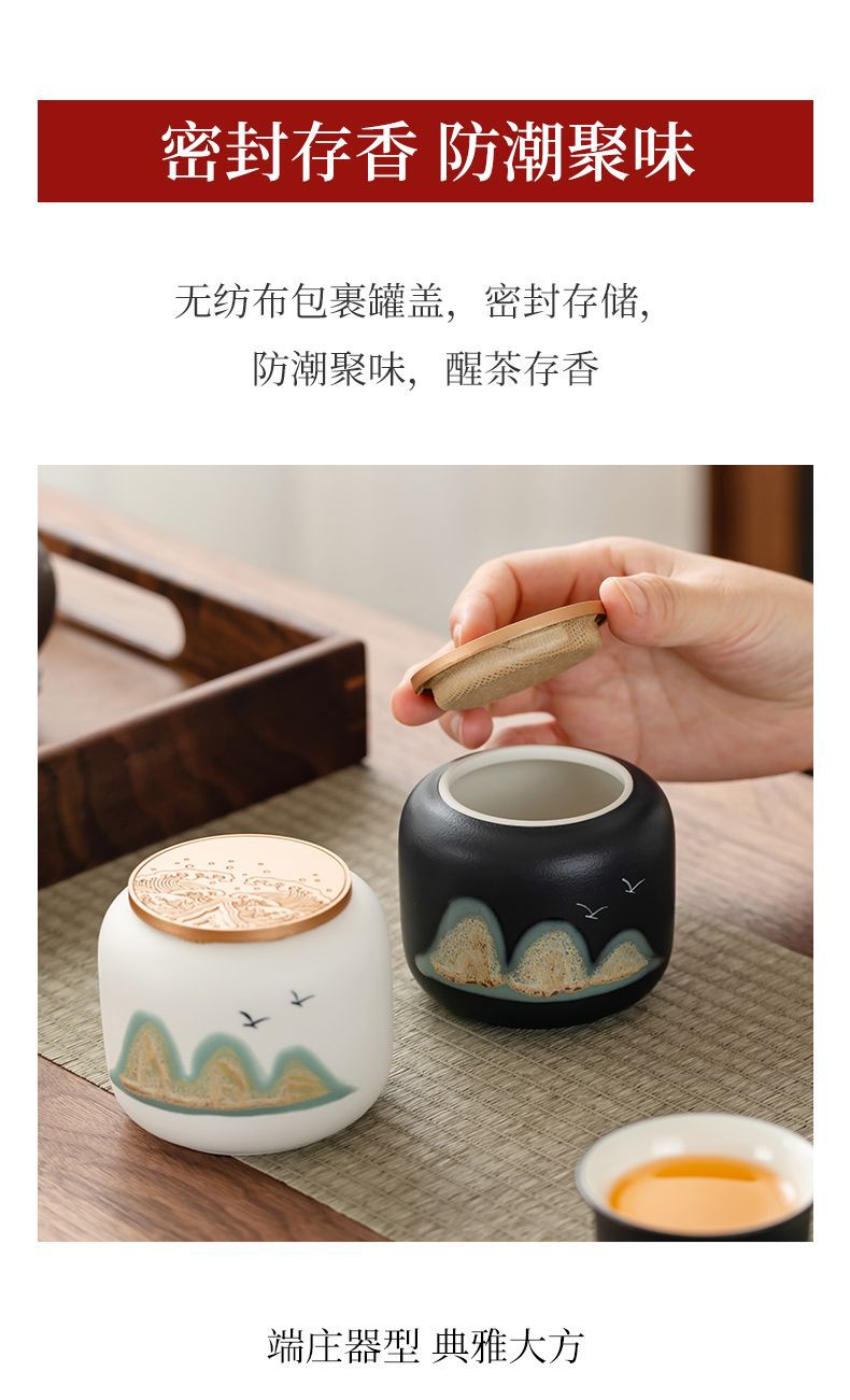 「四件套!礼盒装」国潮茶叶罐茶叶包装盒密封罐餐饮用具小茶罐红茶绿茶礼盒商务礼品套装