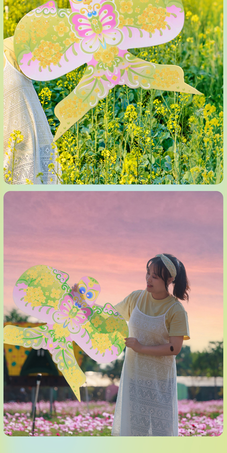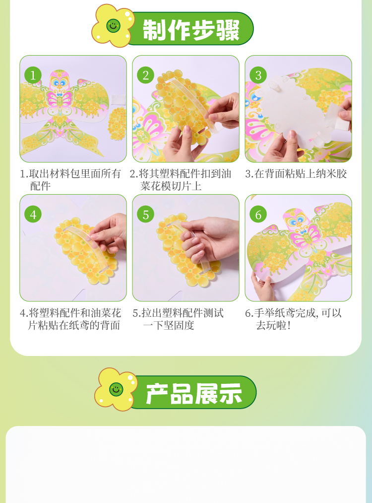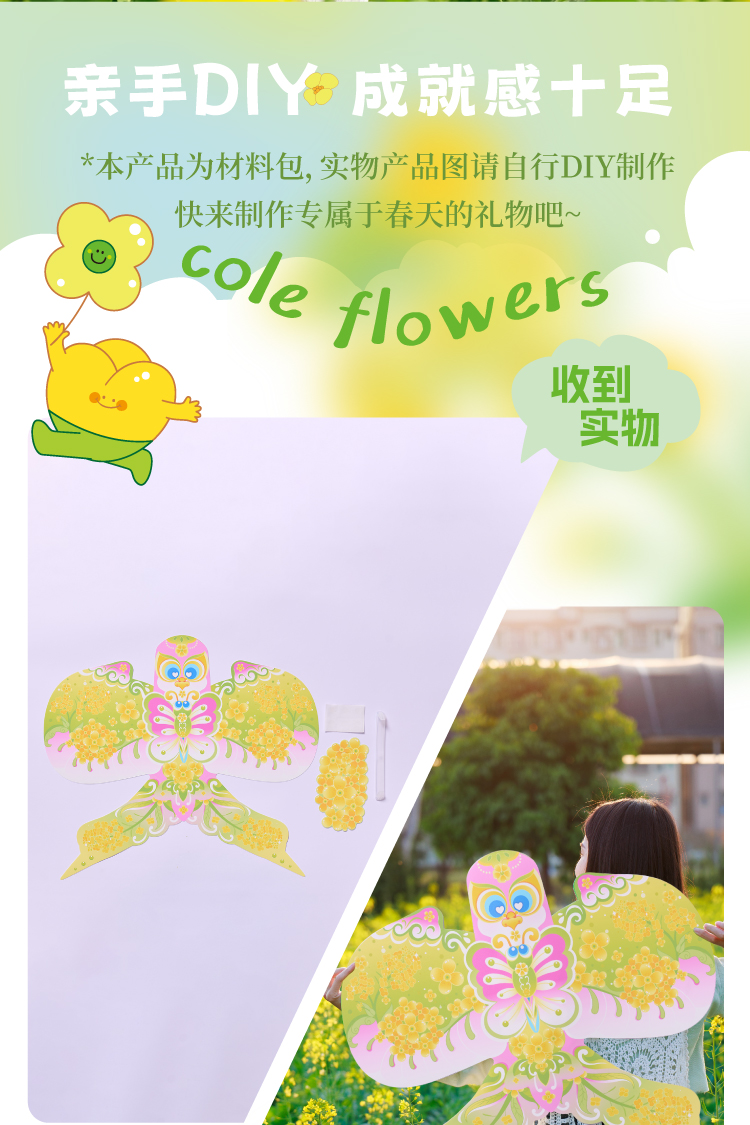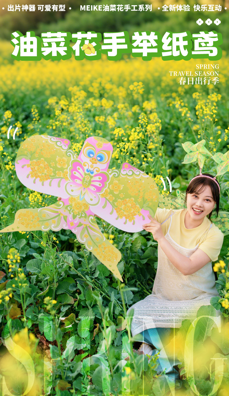 户外春天油菜花手举纸鸢手工diy环创儿童制作材料幼儿园拍摄道具