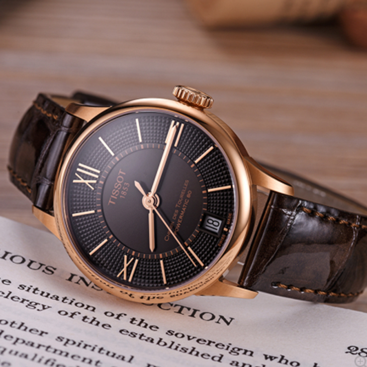 镜面 材质 | 蓝宝石水晶玻璃 | 表盘 | 精钢PVD镀玫瑰金表壳 青铜色表盘 大三针 日期显示 罗马数字与条字刻度时标 透底 |