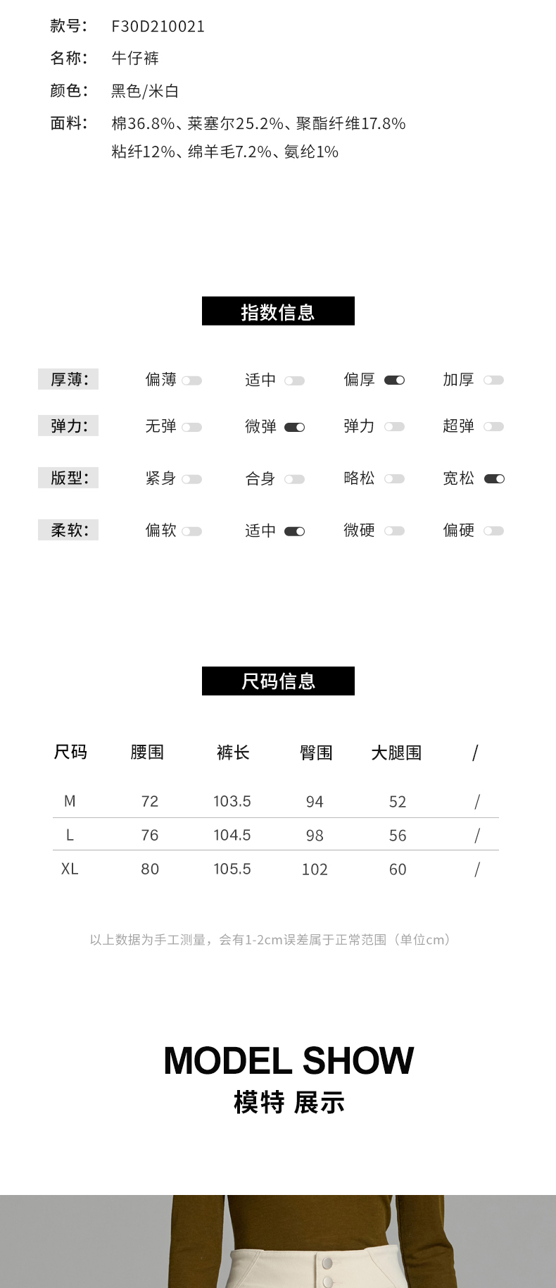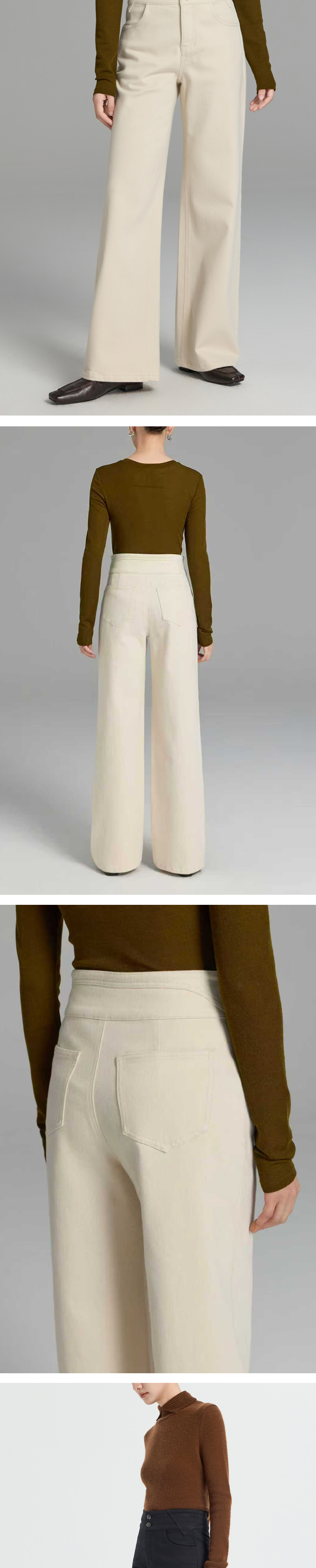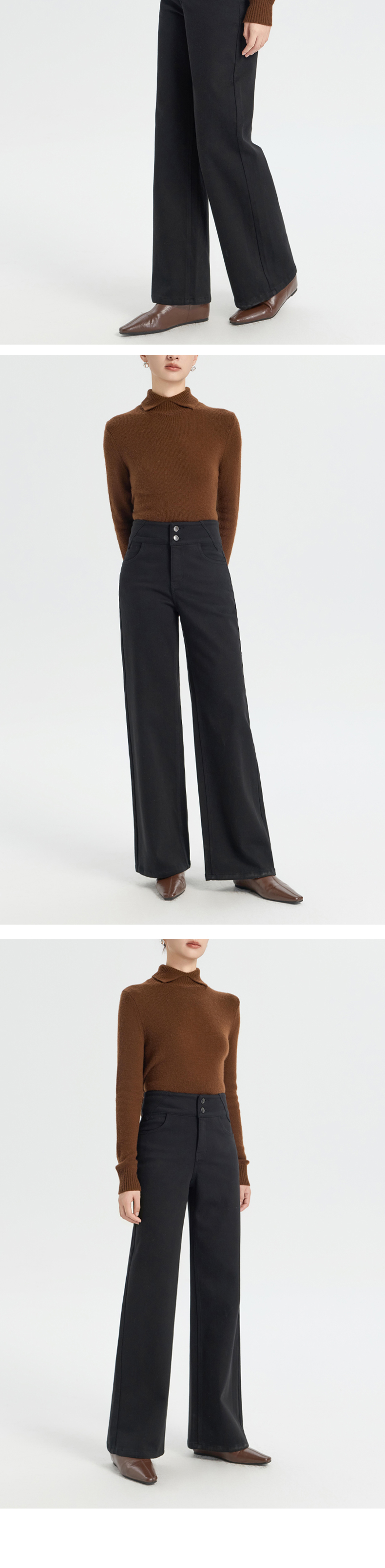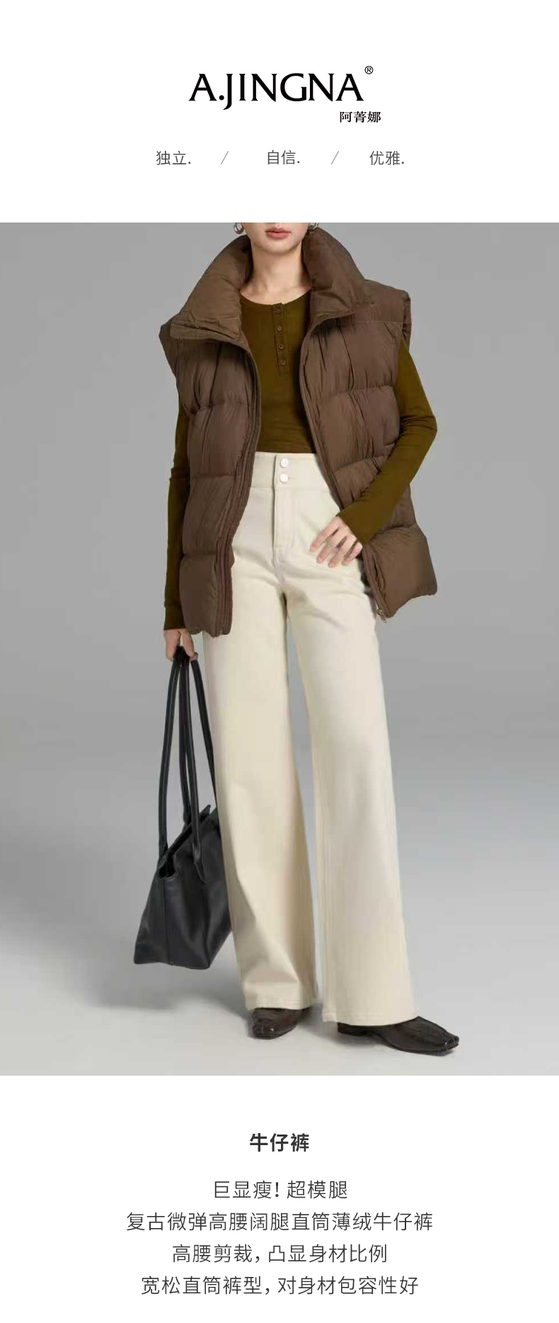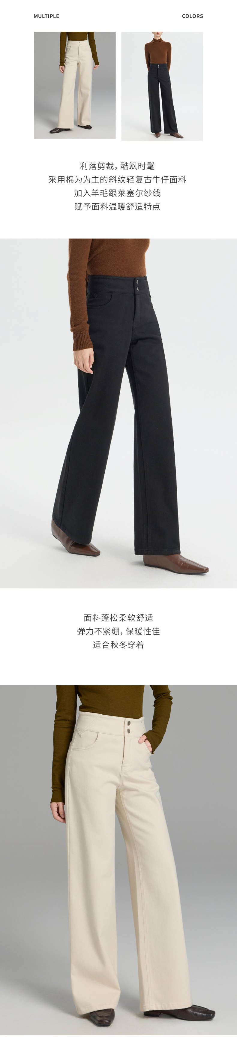 【复古薄绒】阿菁娜秋季新款薄绒牛仔裤高腰阔腿显瘦复古微弹超模腿羊毛混纺保暖F30D210021