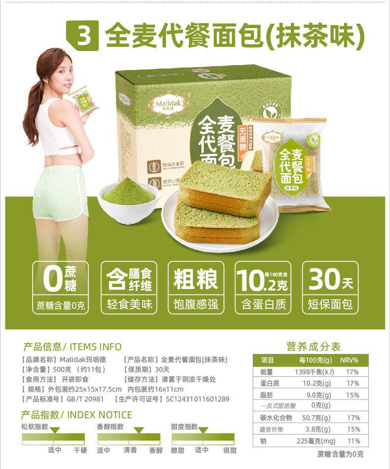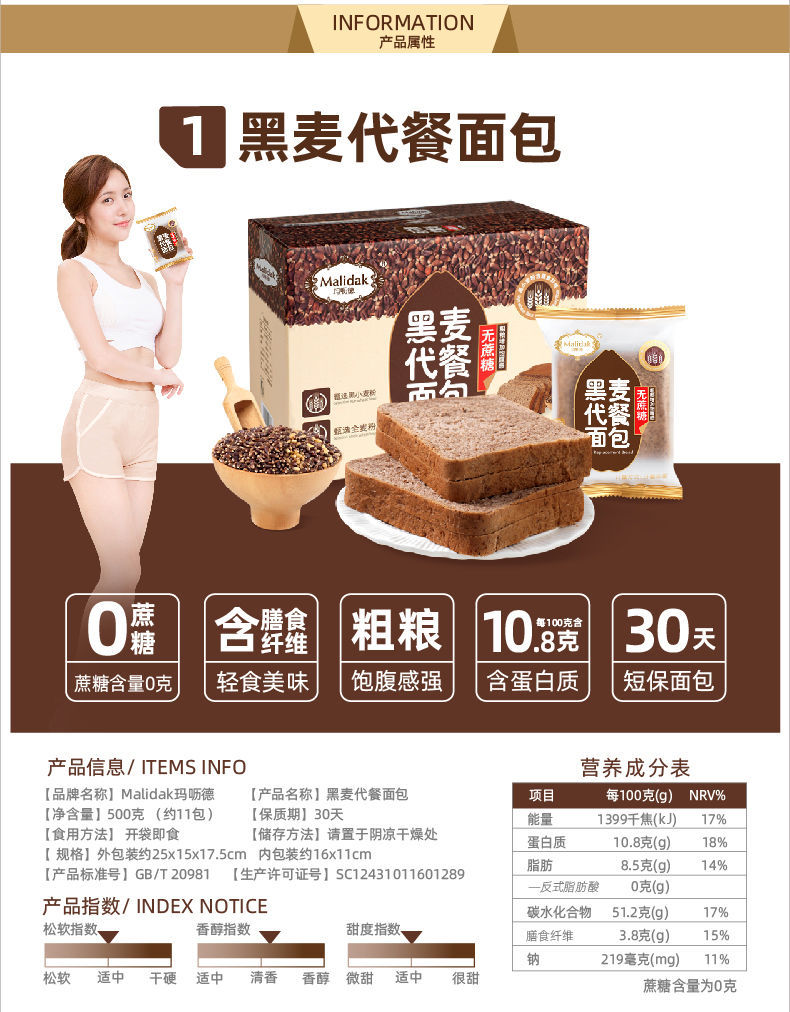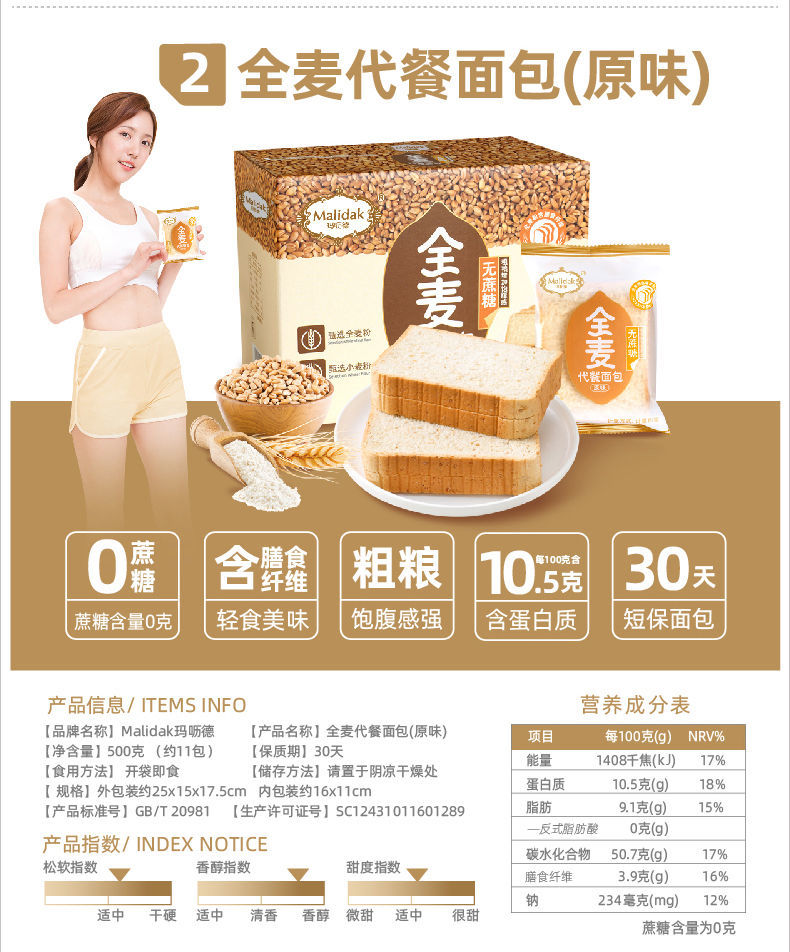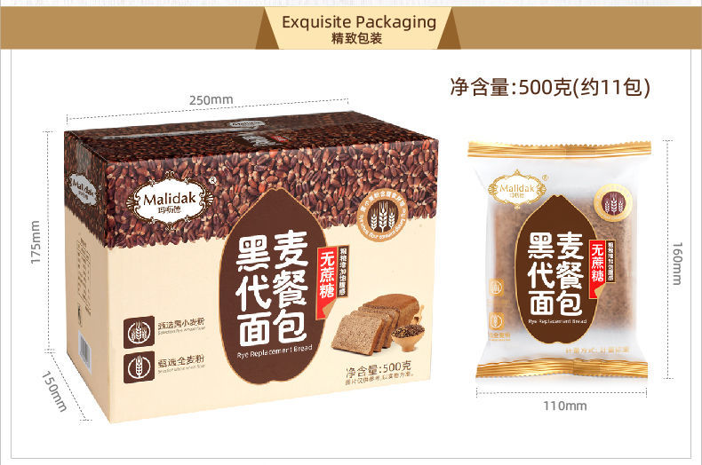 【爆款超低价预售 急单慎拍】玛呖德黑麦全麦面包500g/1000g无蔗糖饱腹代餐面包网红营养早餐