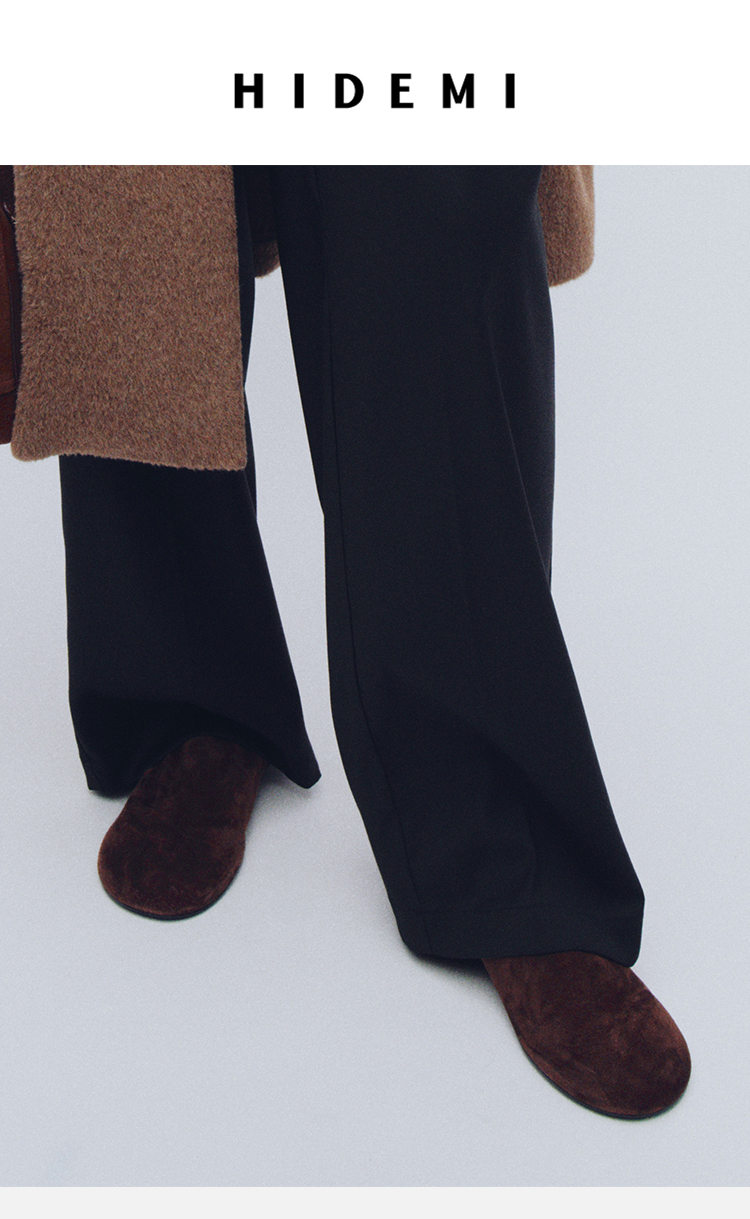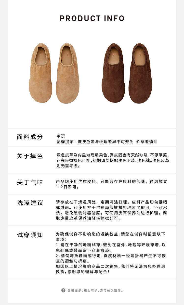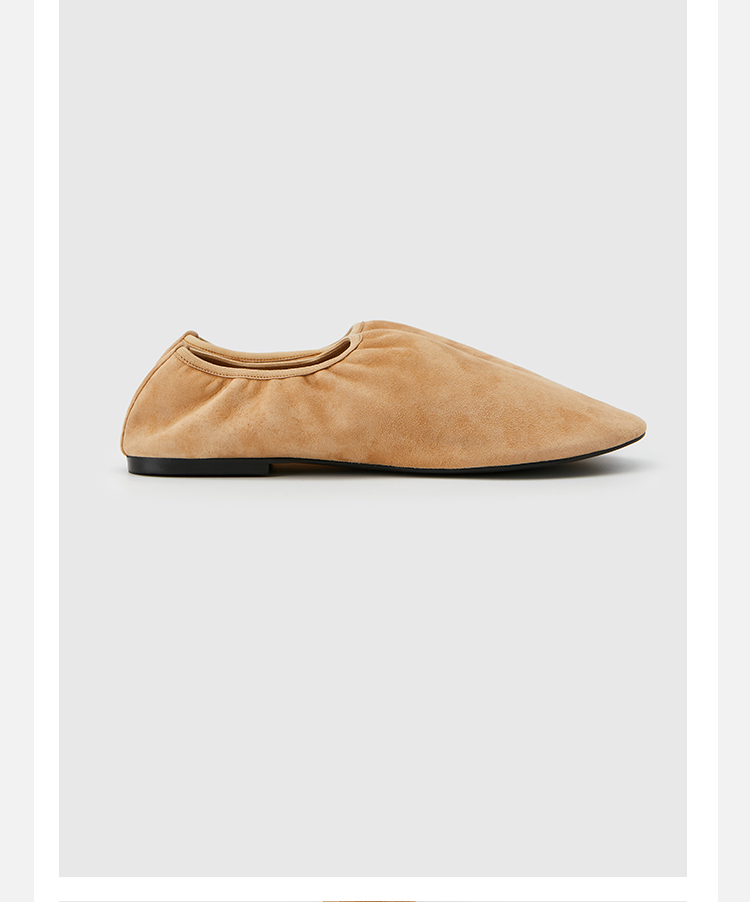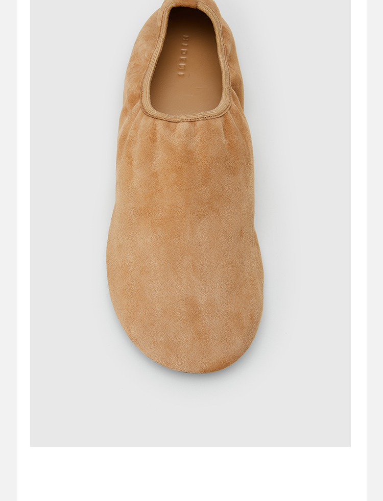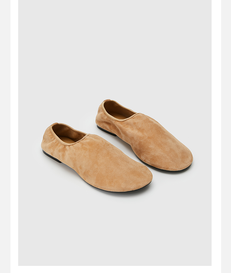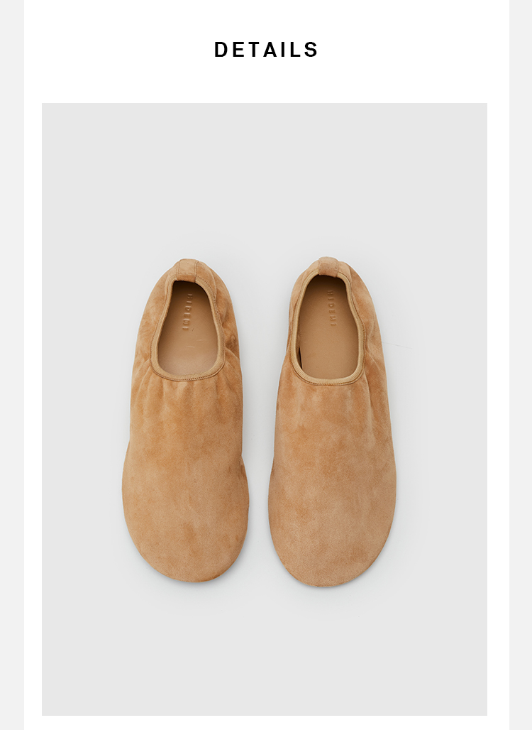 HIDEMI 羊麂皮圆头松紧一脚蹬平底鞋 卡其色/深棕色