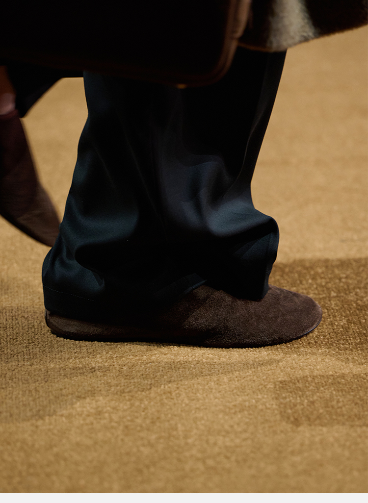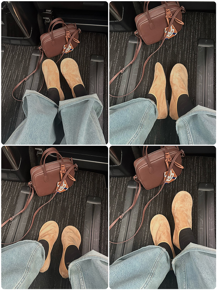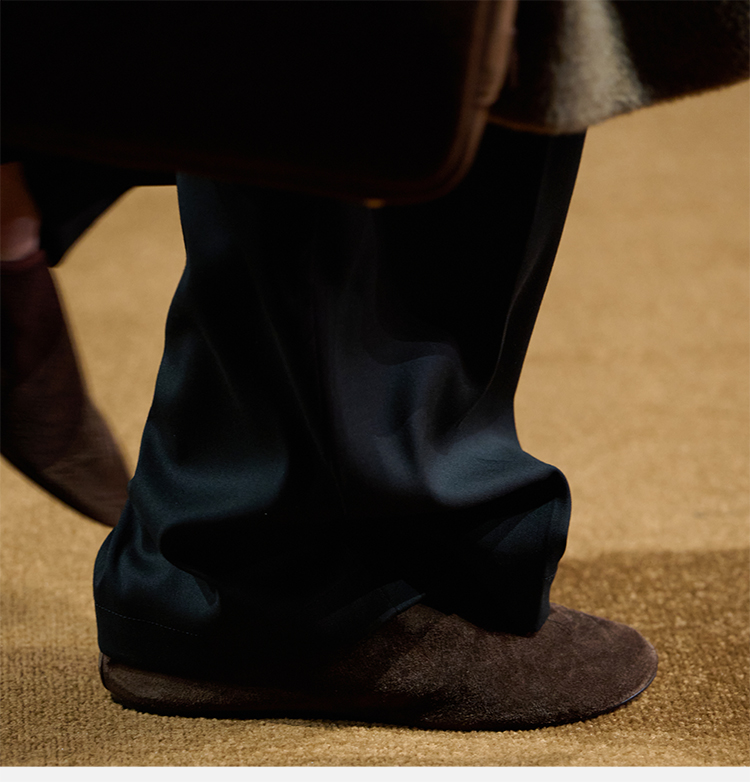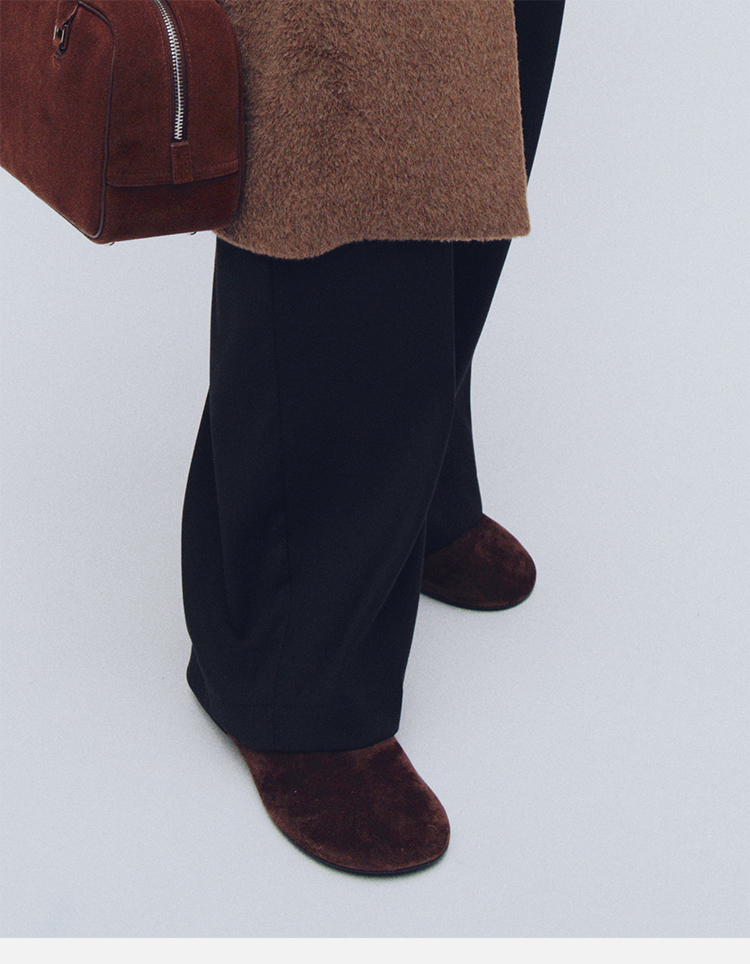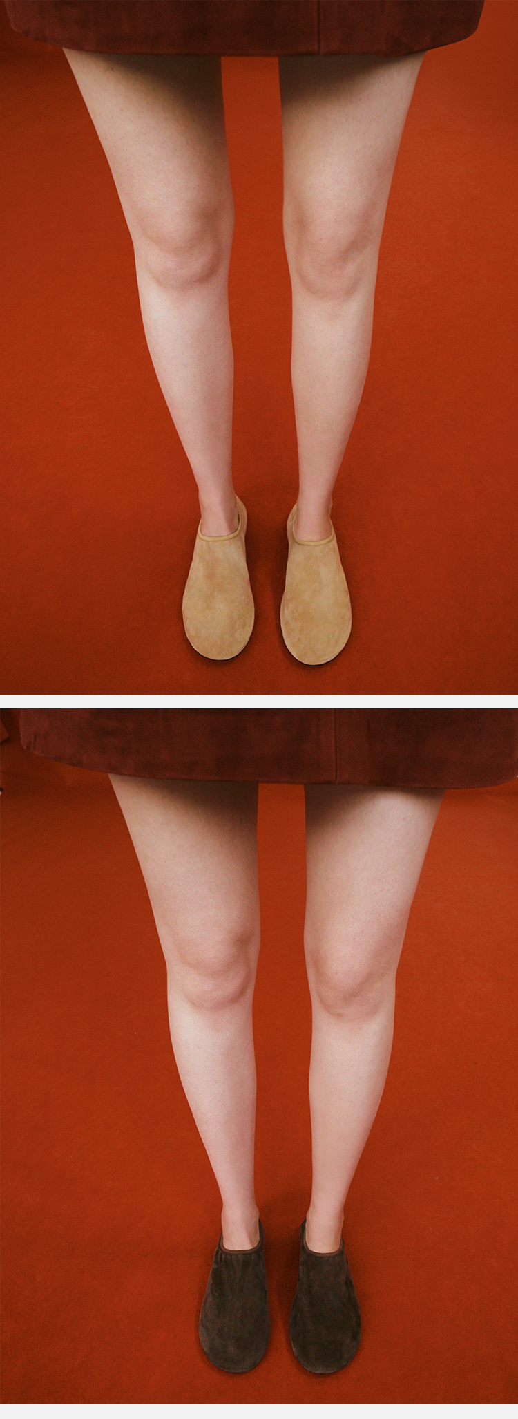 HIDEMI 羊麂皮圆头松紧一脚蹬平底鞋 卡其色/深棕色