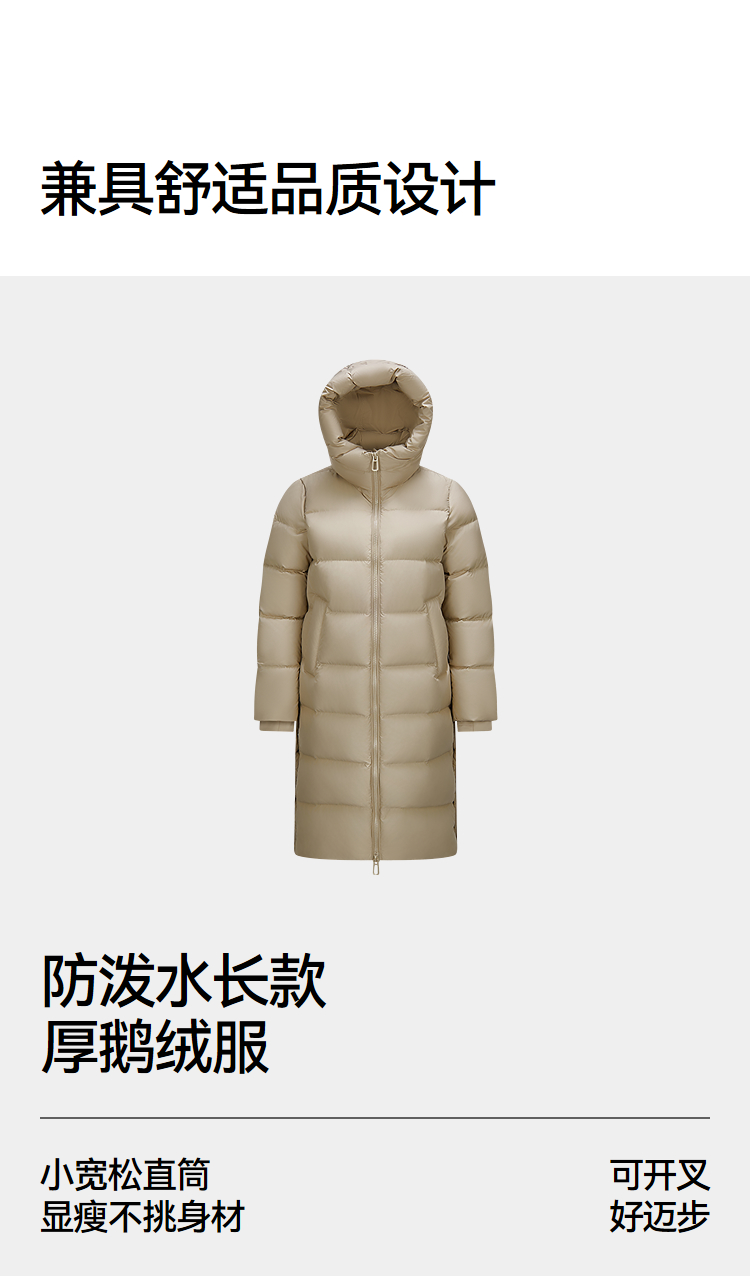 【爆品主推】森马羽绒服女冬季长款开叉连帽90绒子防泼水厚鹅绒服显瘦保暖外套