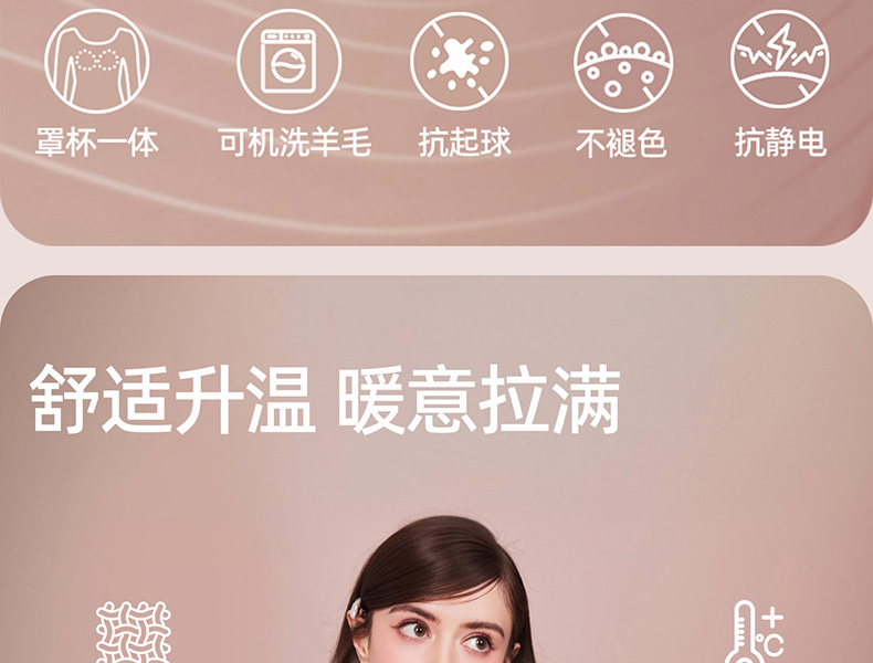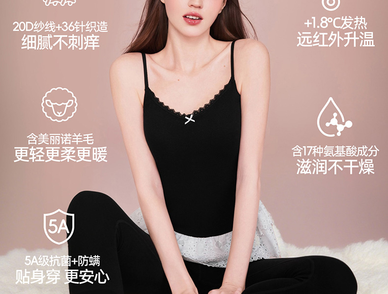 好奇蜜斯羊毛保暖背心女吊带发热打底肌底衣抗静电加绒带胸垫秋冬 哈蒂