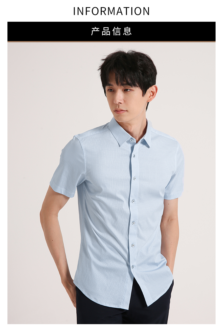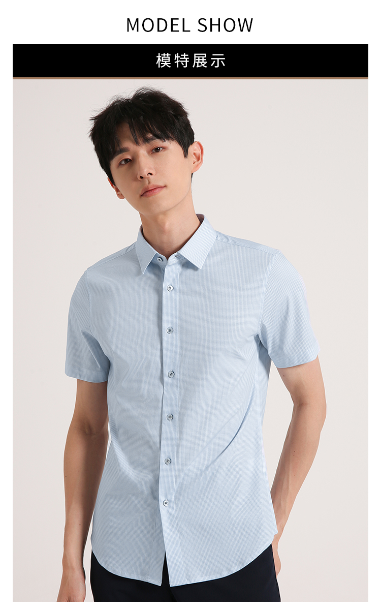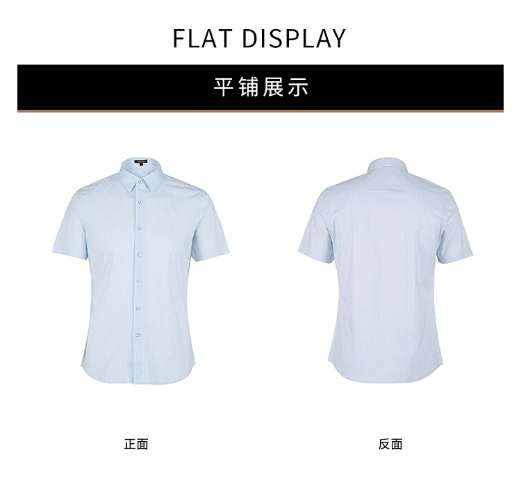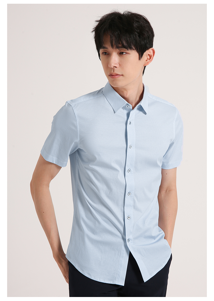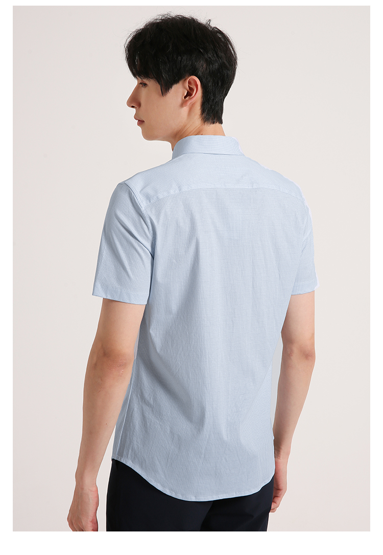 callisto蓝色全棉方点印花短袖衬衫 SSTSS199C