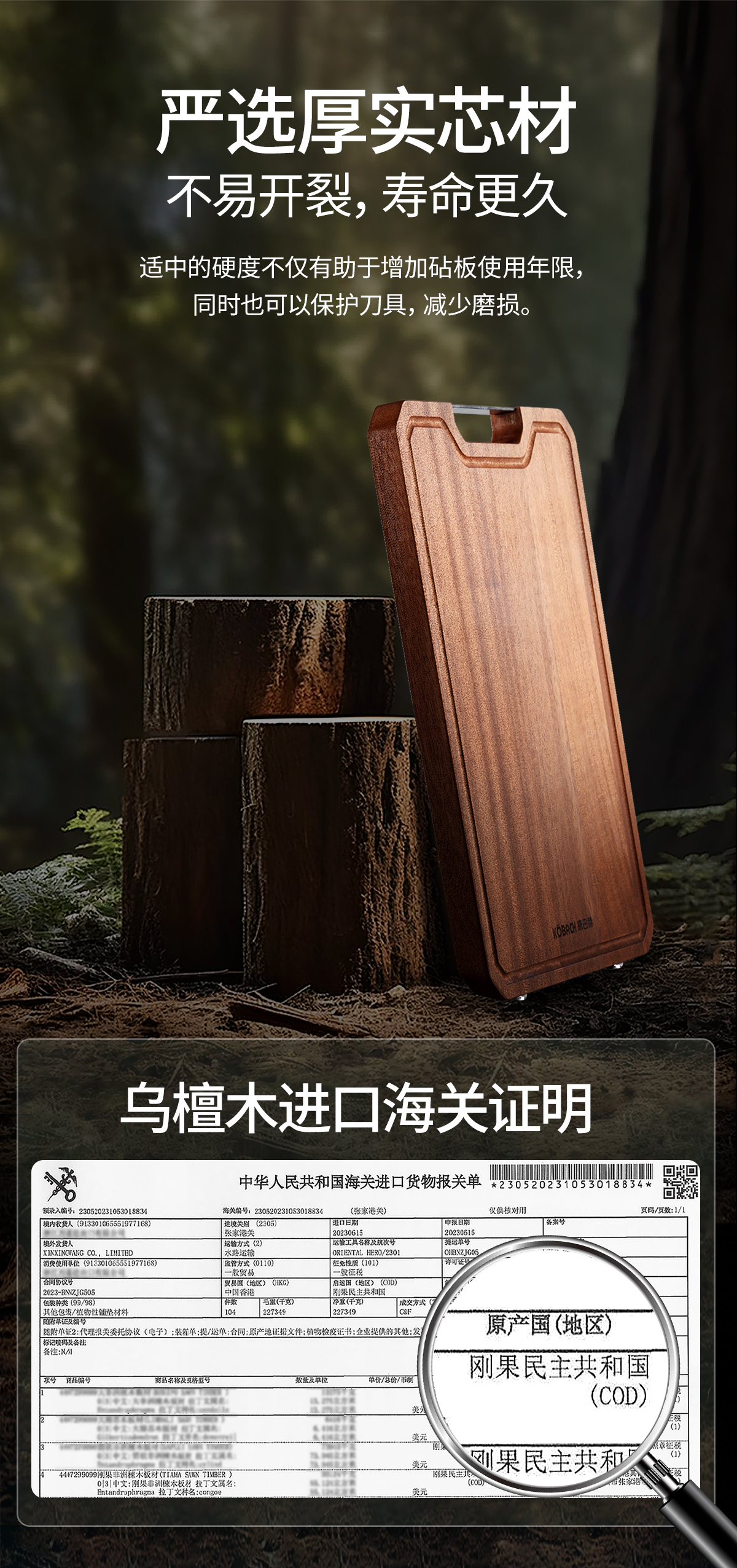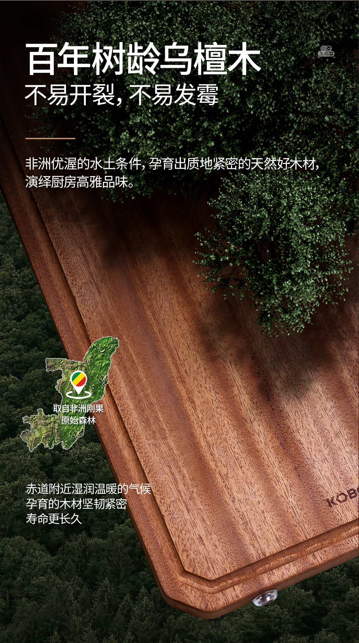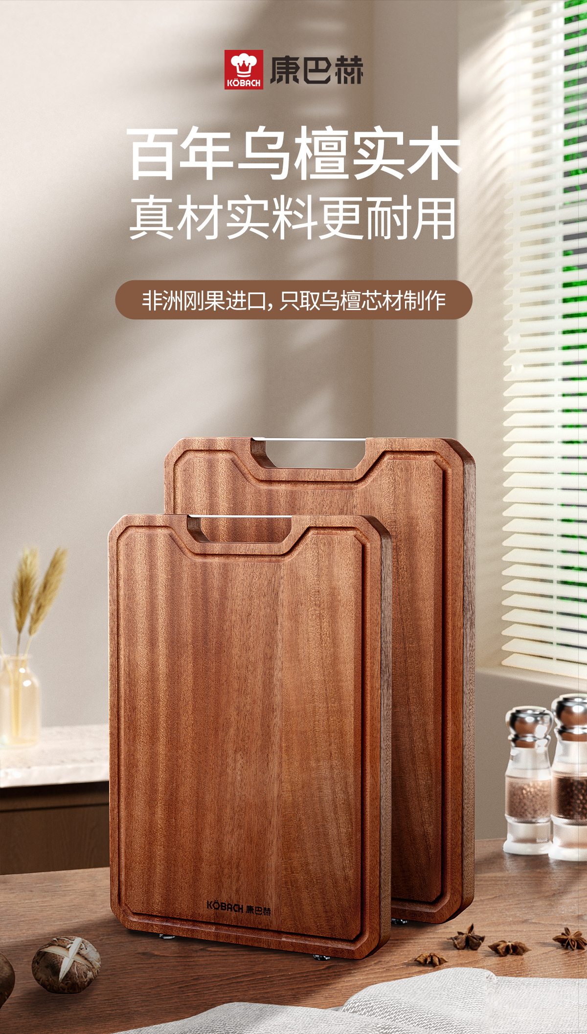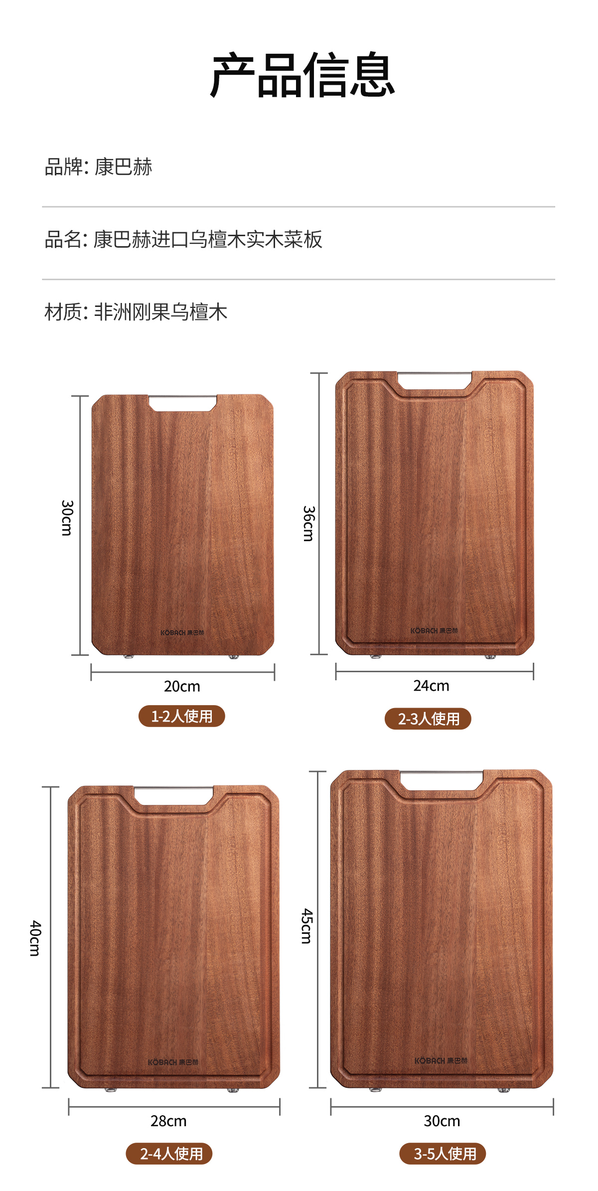 康巴赫-乌檀木整木菜板KH-CW4028(到手1块菜板:40*28cm)升级款【分仓直发,72小时发货,周末节假日不发货】