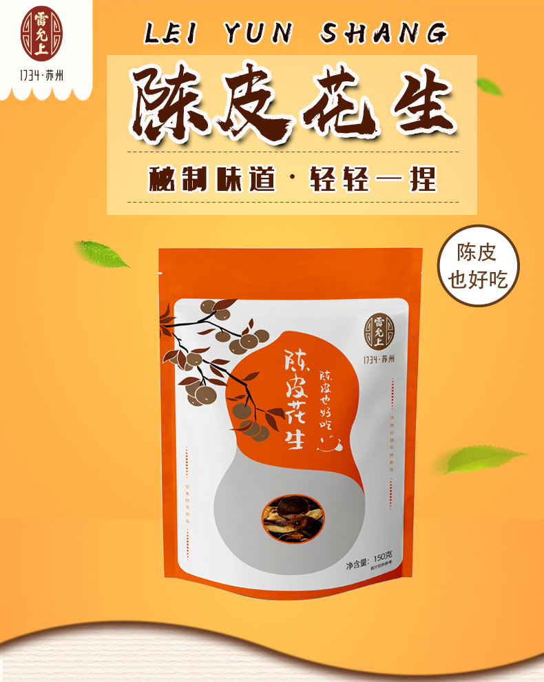 【下酒下午茶零嘴 吃一口就停不下来】雷允上直营 | 雷允上陈皮花生150克一袋 超香超好吃!下午喝茶吹水必备!