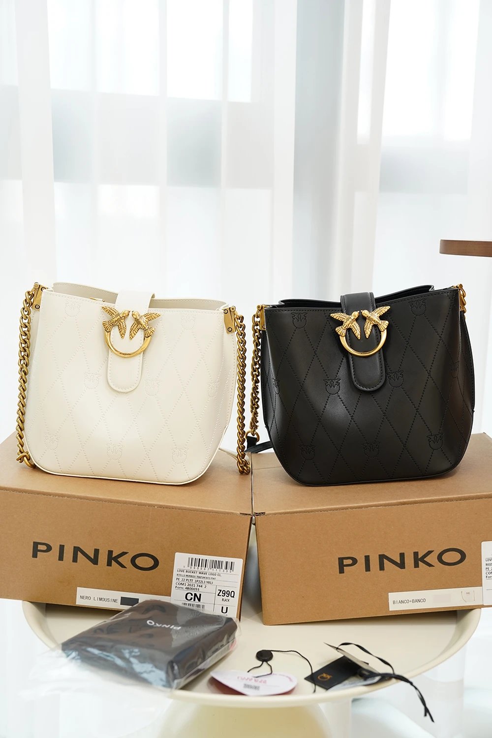 第8款:Pinko女士包袋22春夏新款菱格纹方链时尚皮革飞鸟燕子包水桶包PINKO010