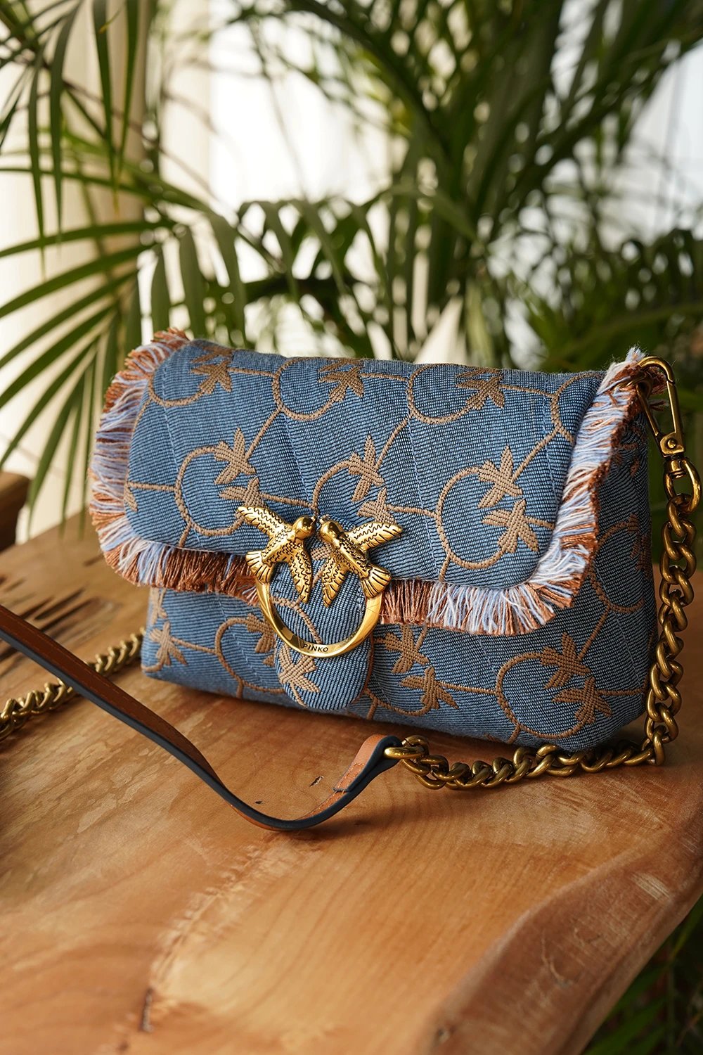 第13款:PINKO女士春夏丹宁牛仔斜跨飞鸟包燕子包PINKO021LS