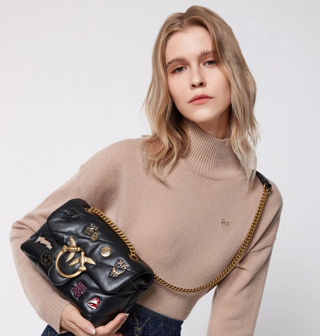 第9款:PINKO2022春夏新品女士包袋羊皮绗缝小号飞鸟包燕子包PINKO012
