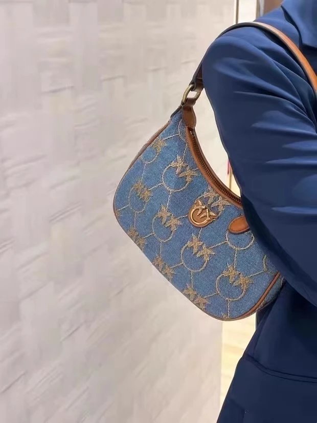 第12款:PINKO女士春夏印花牛仔腋下飞鸟包燕子包PINKO020LS