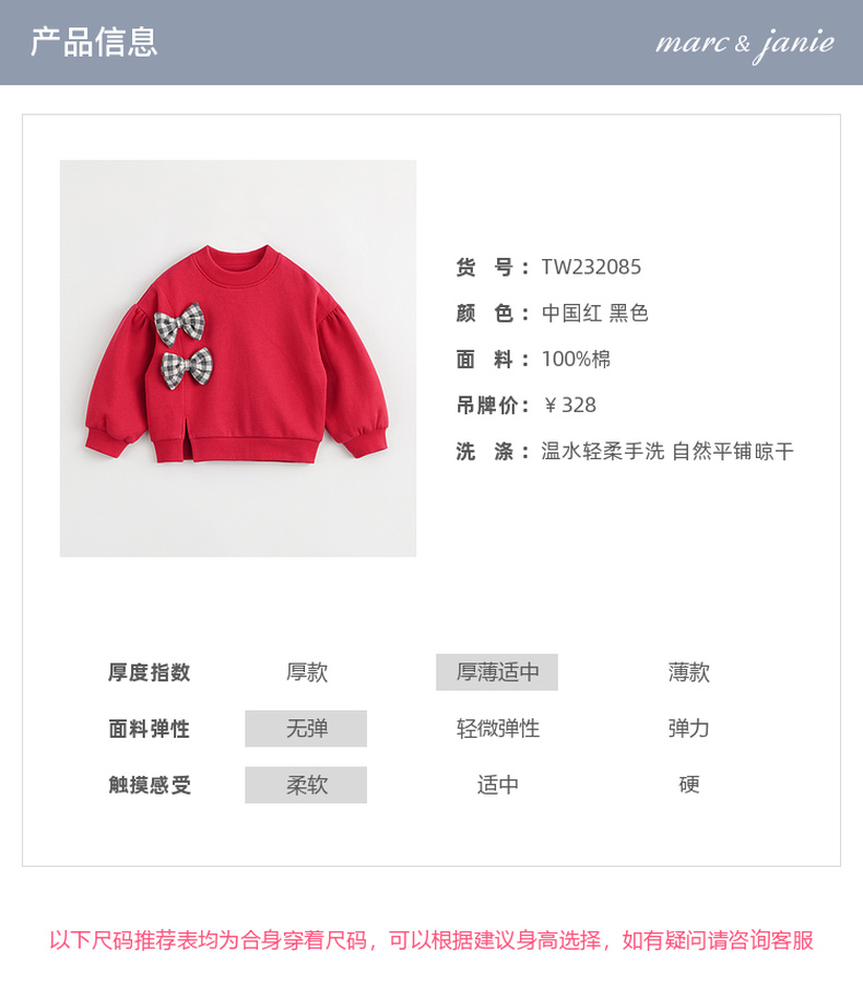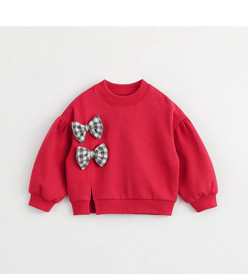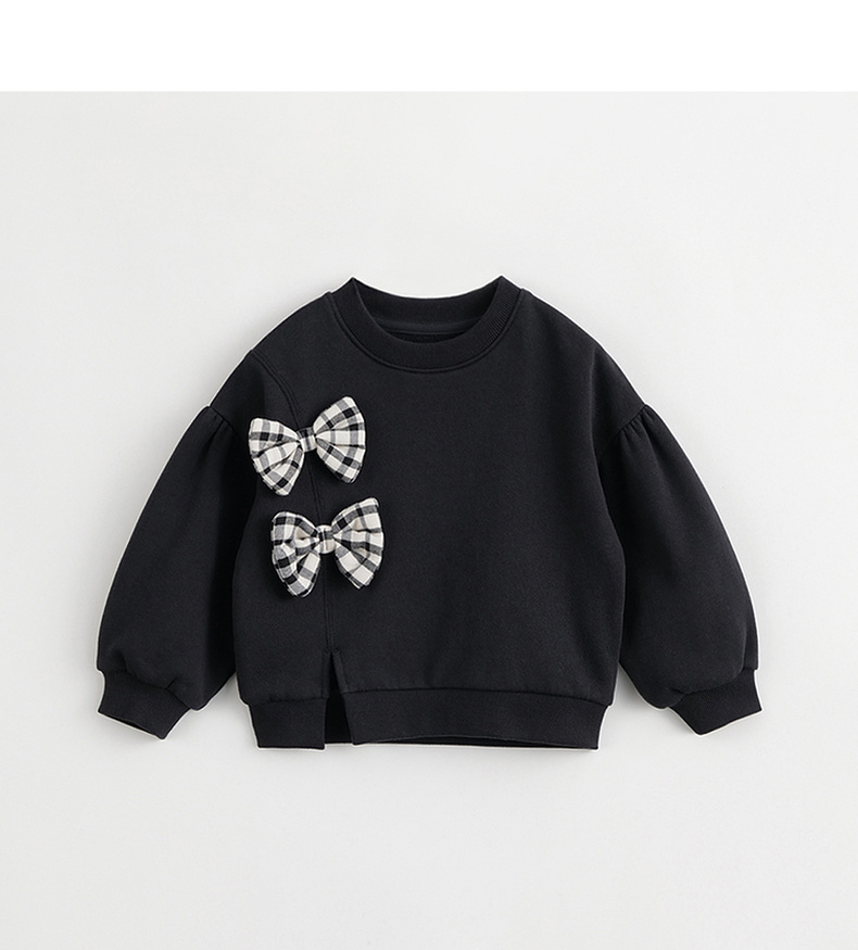 马克珍妮秋冬新款 女童格纹蝴蝶结宽松卫衣 儿童上衣232085