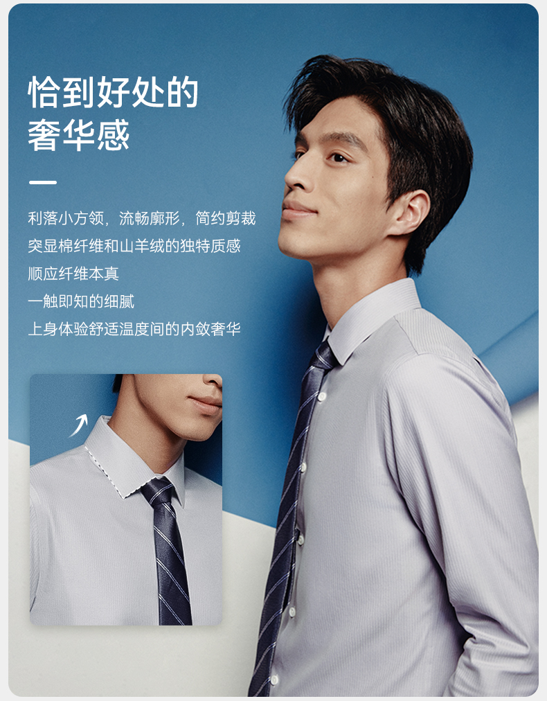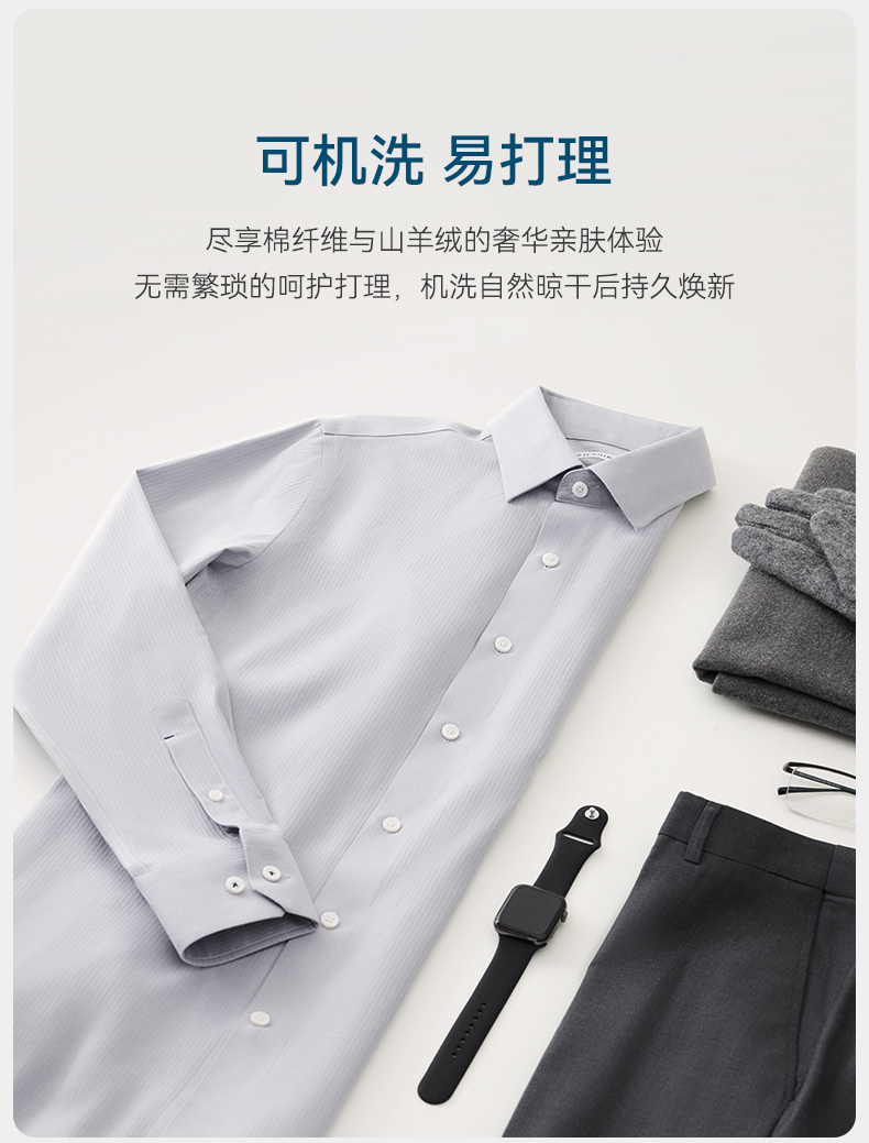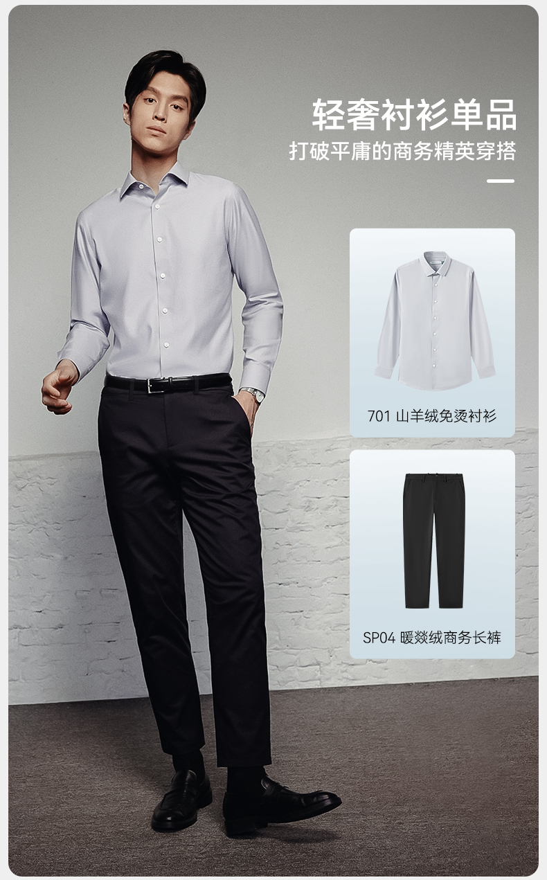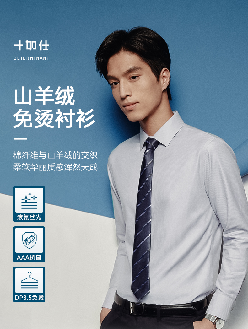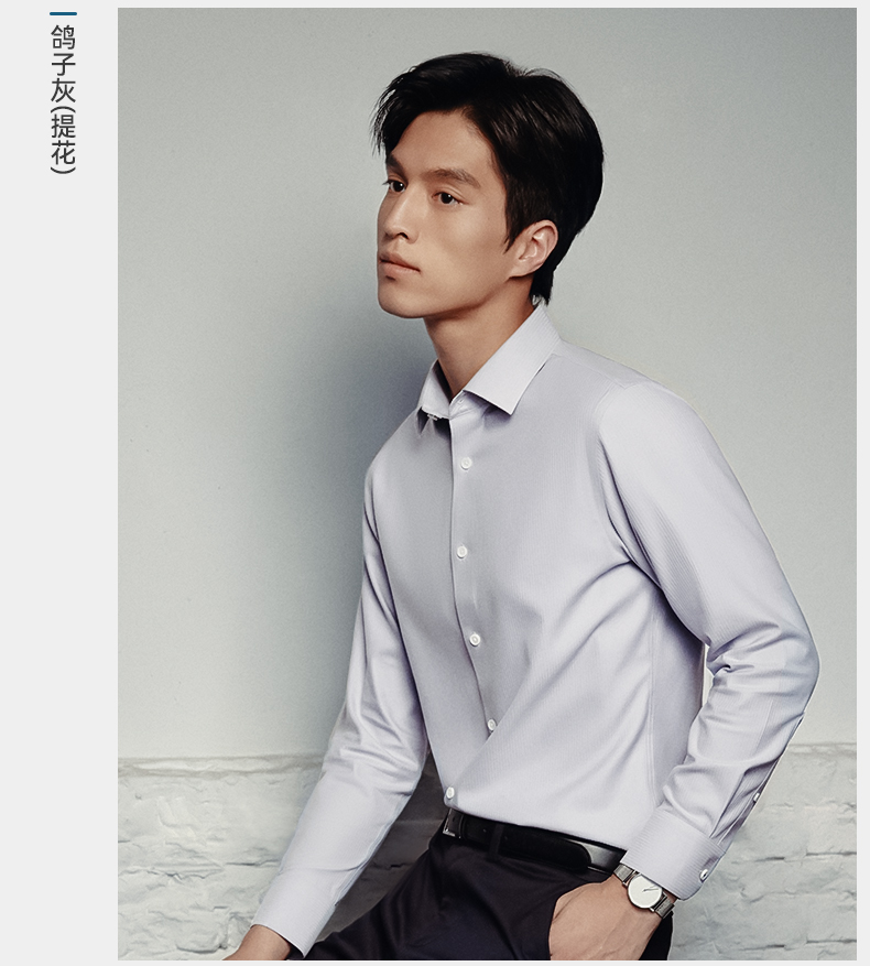 十如仕山羊绒提花高端免烫长袖衬衫-701-01