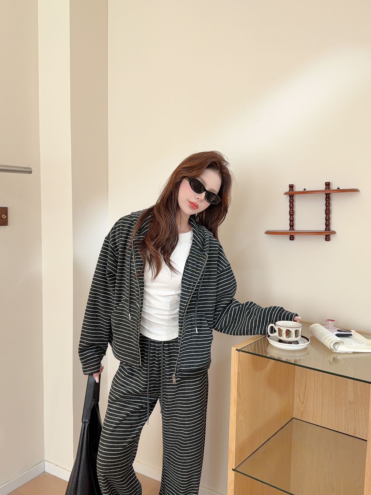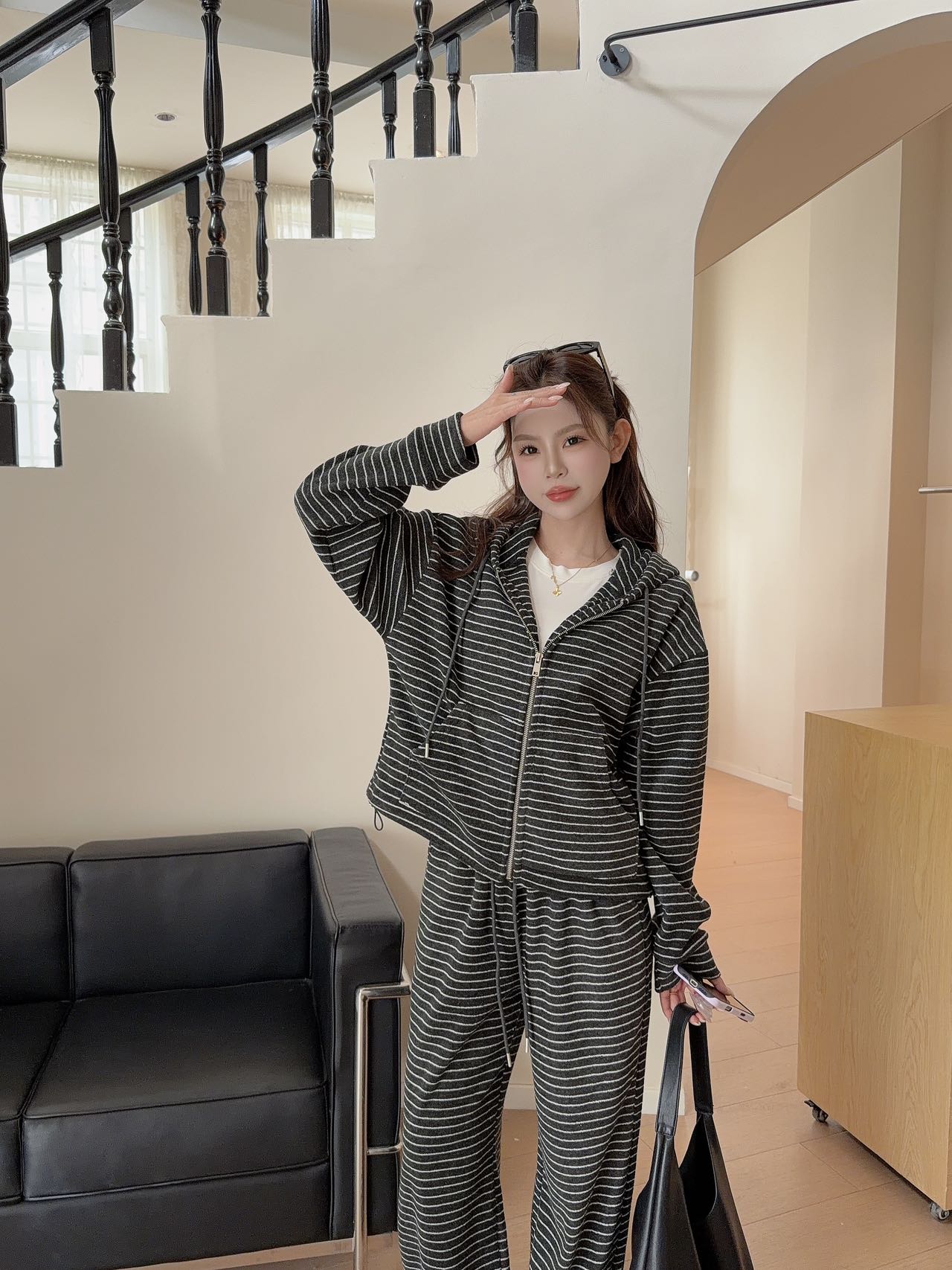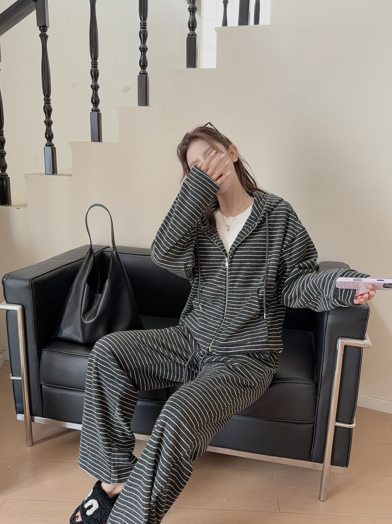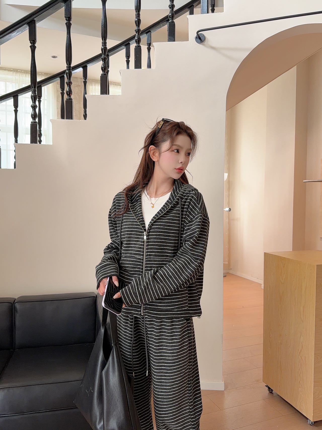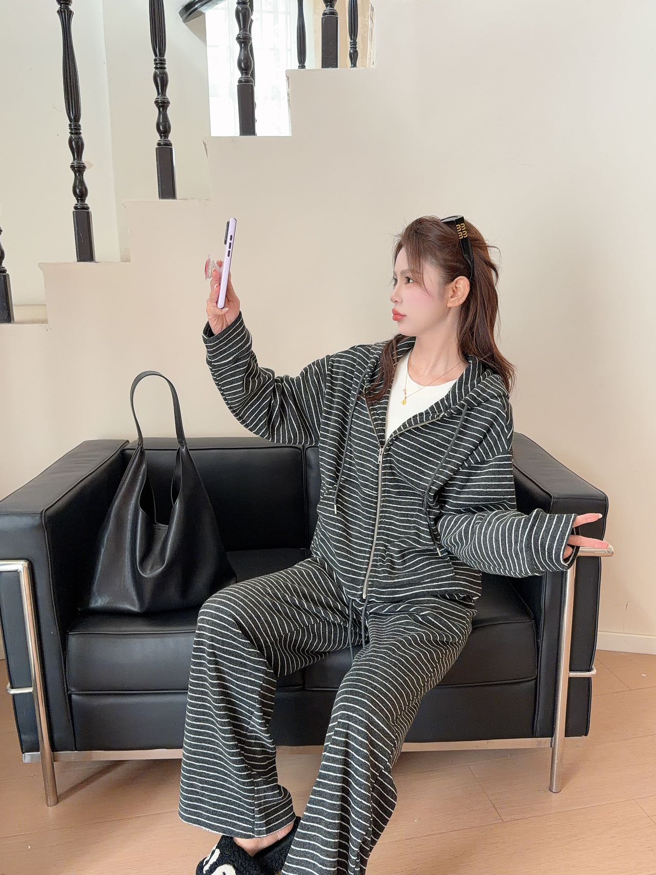 【YW】无忧购秋冬高品质加绒宽松连帽条纹两件套5031(截单后3-5天发货)