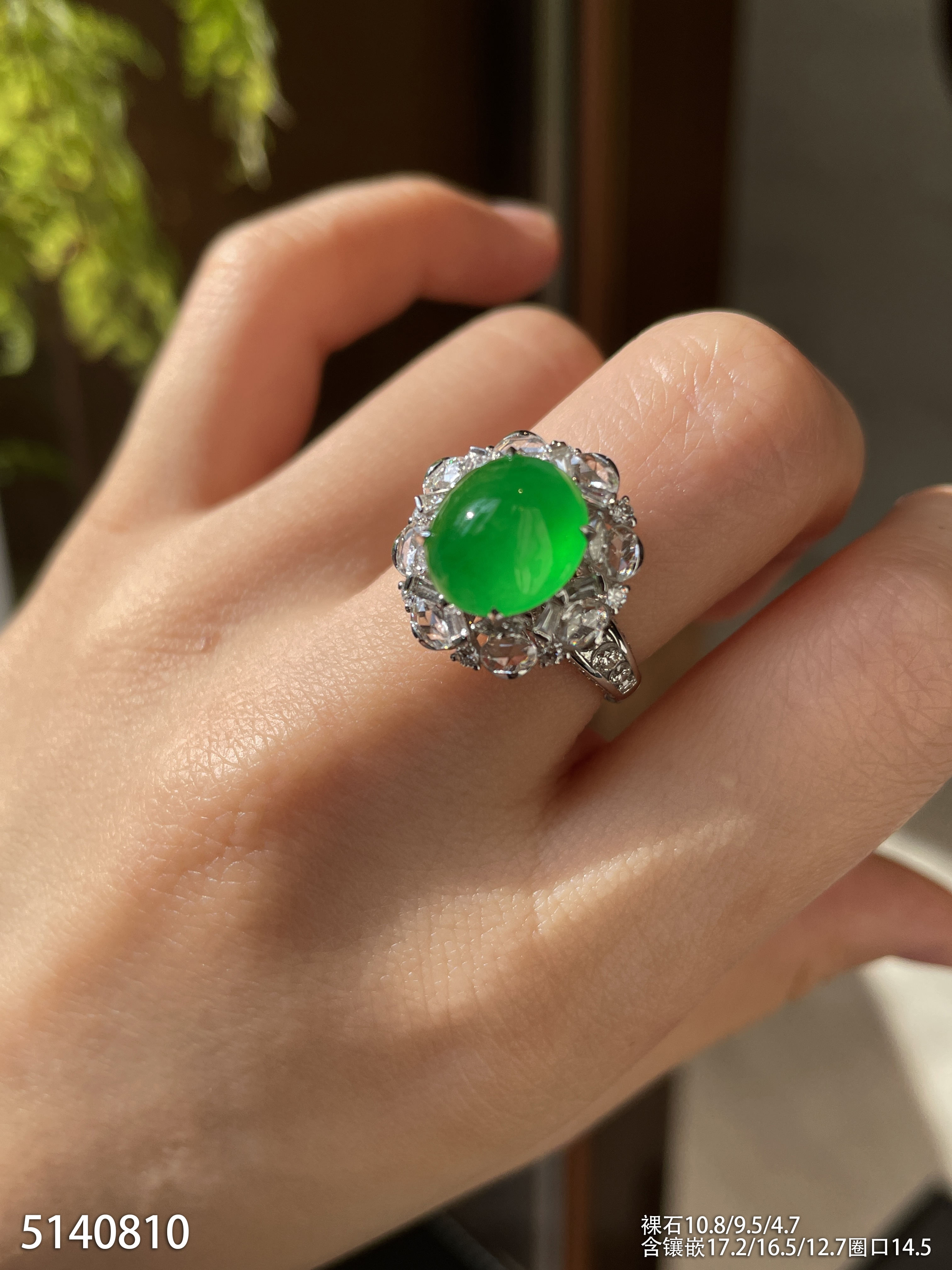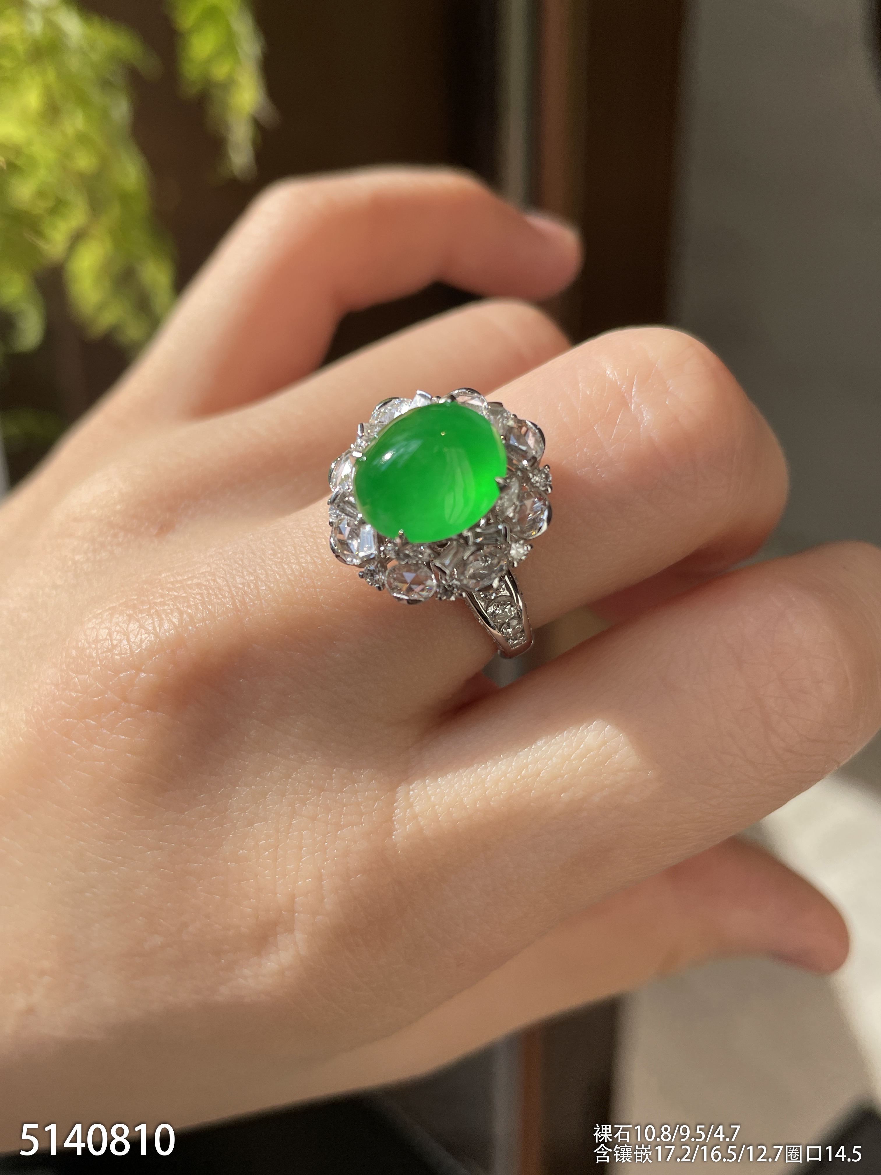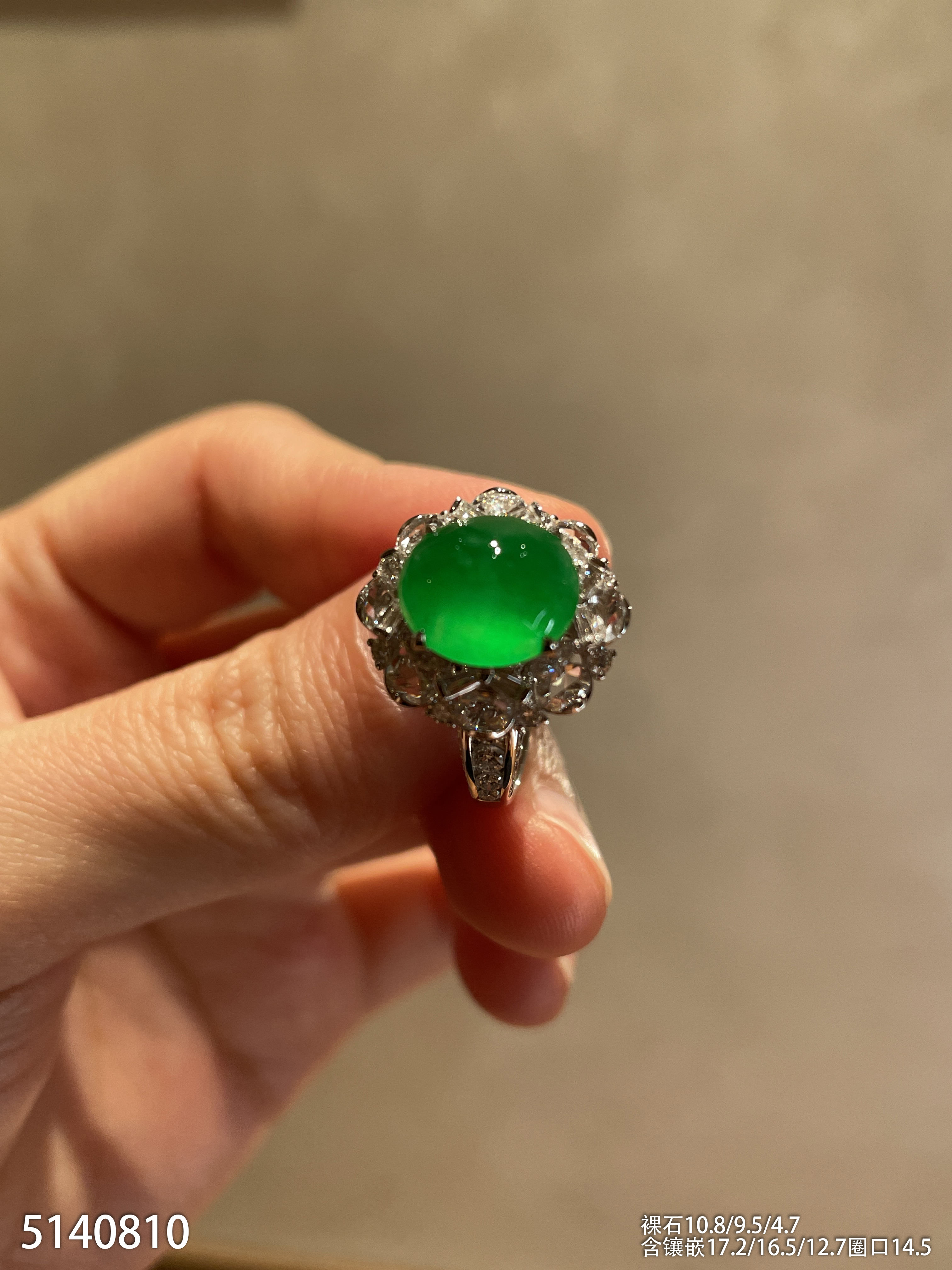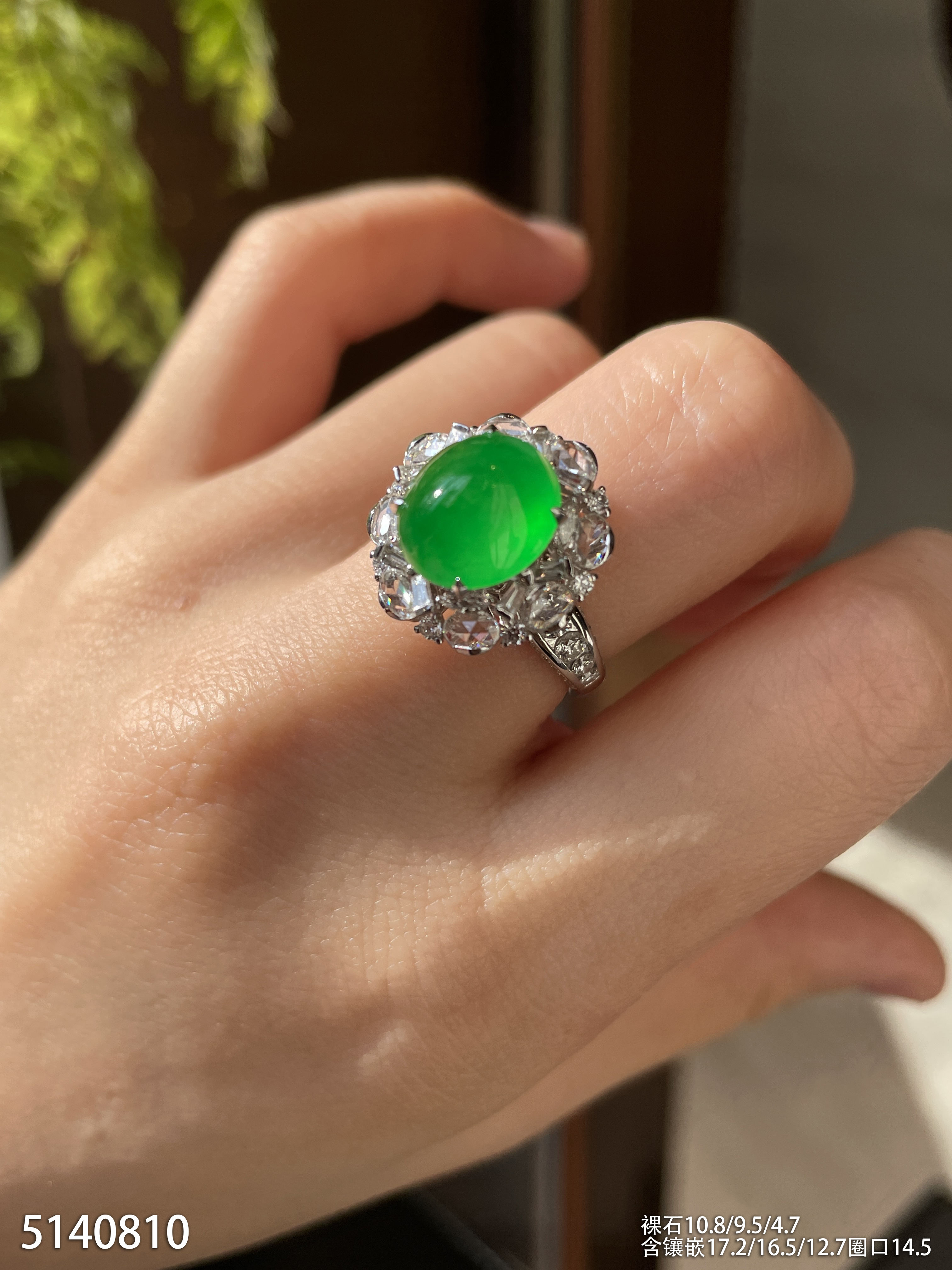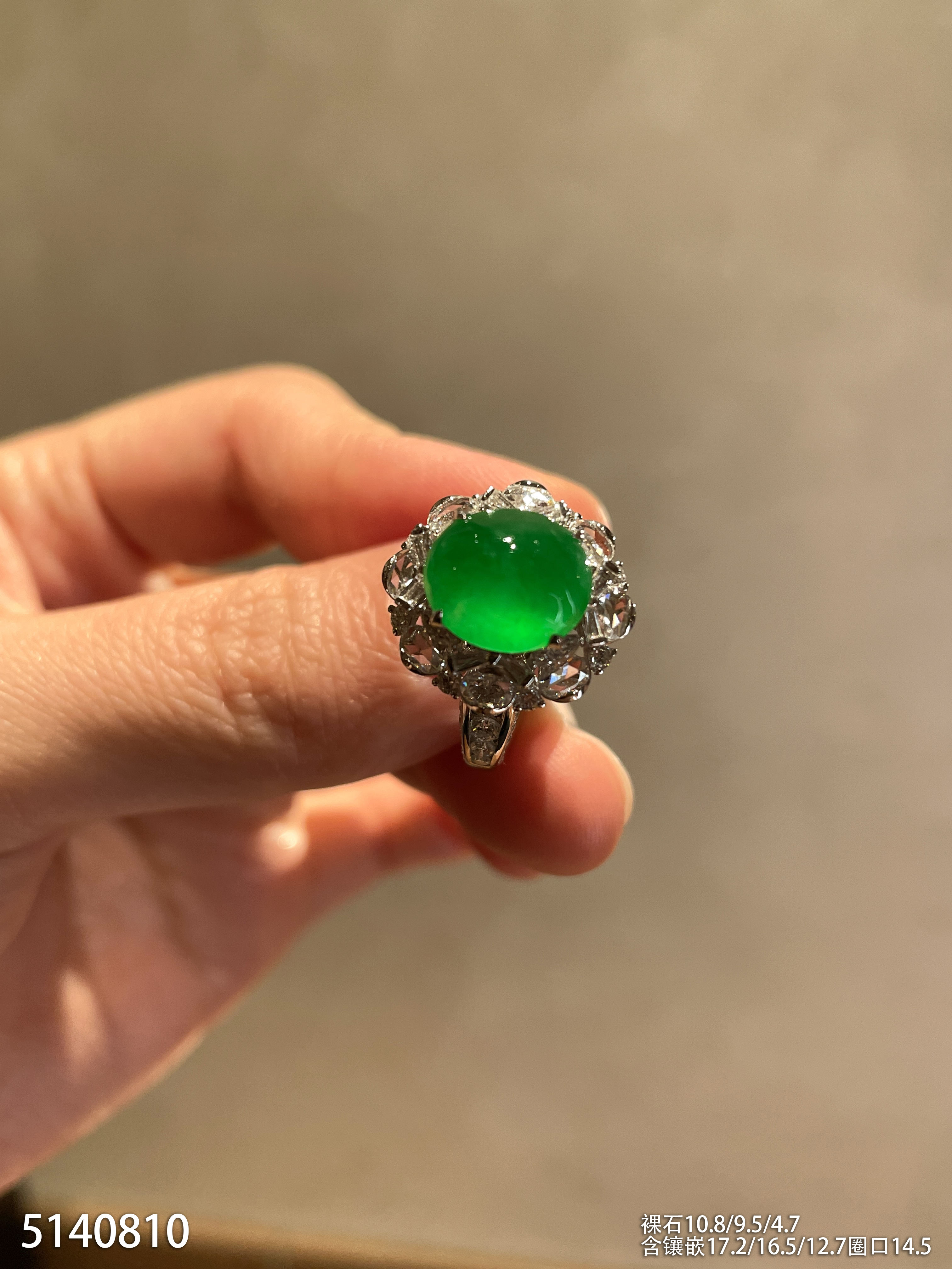 高冰近玻璃种阳艳绿蛋面戒指【5140810】具体价格微信咨询