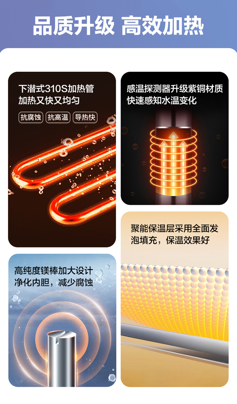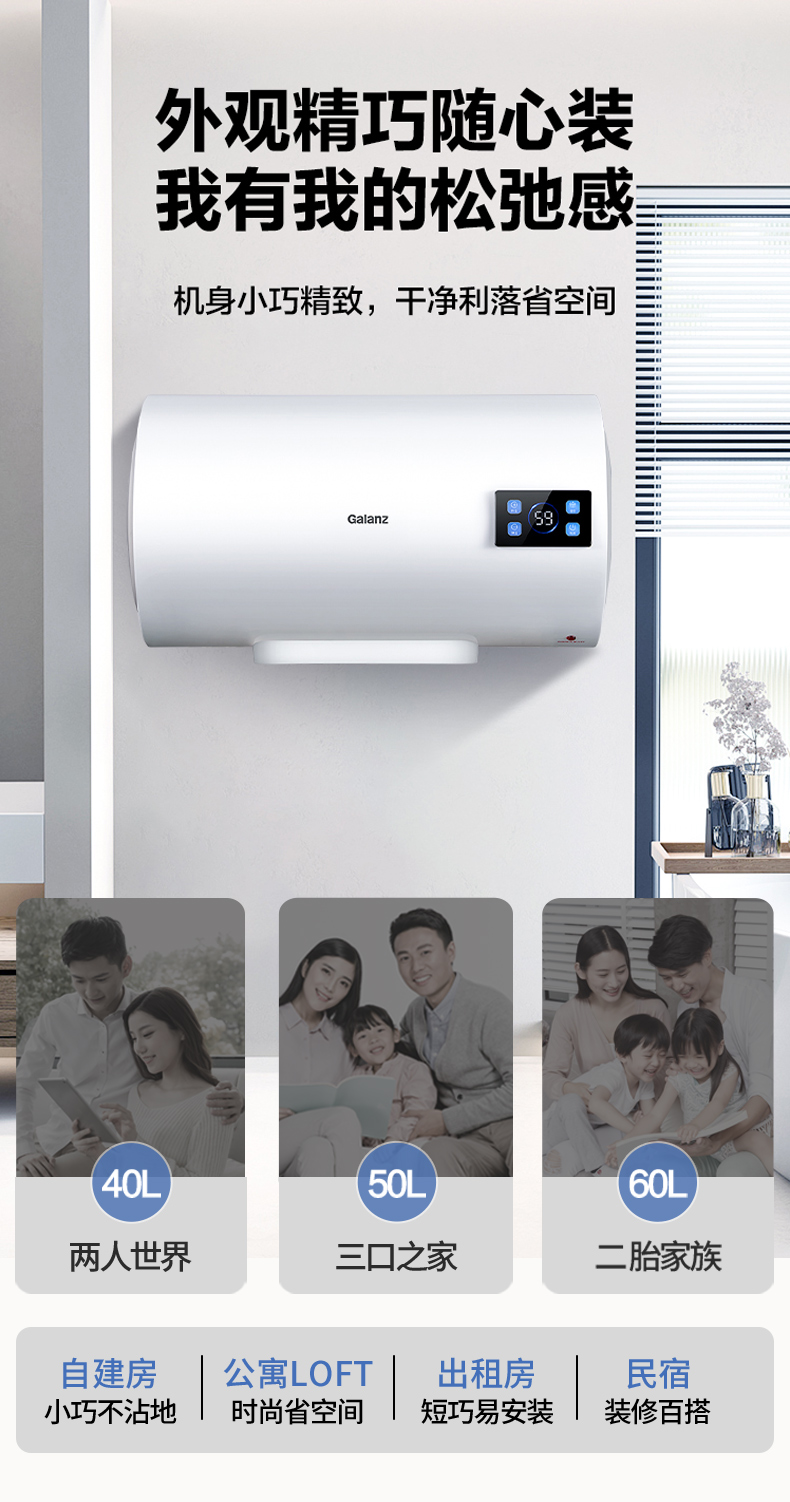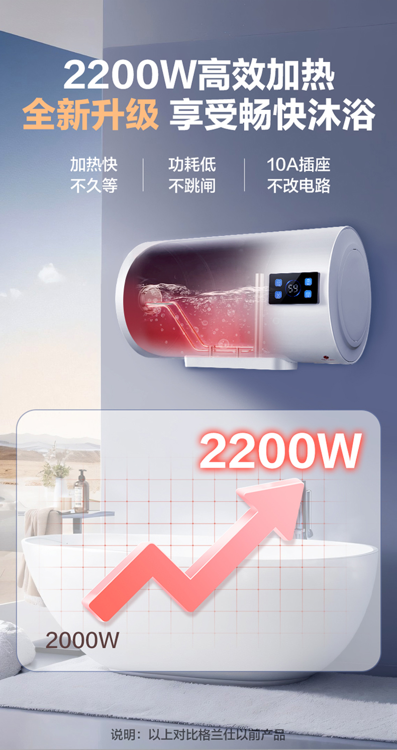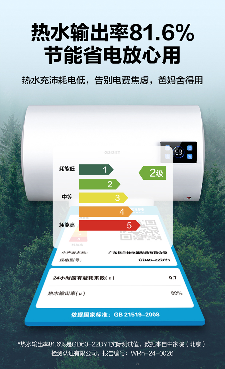 格兰仕电热水器40升 政府补贴2200W速热升级防电墙耐腐蚀搪瓷内胆 抗腐蚀加热管 家用储水式热水器GD40-22DY1