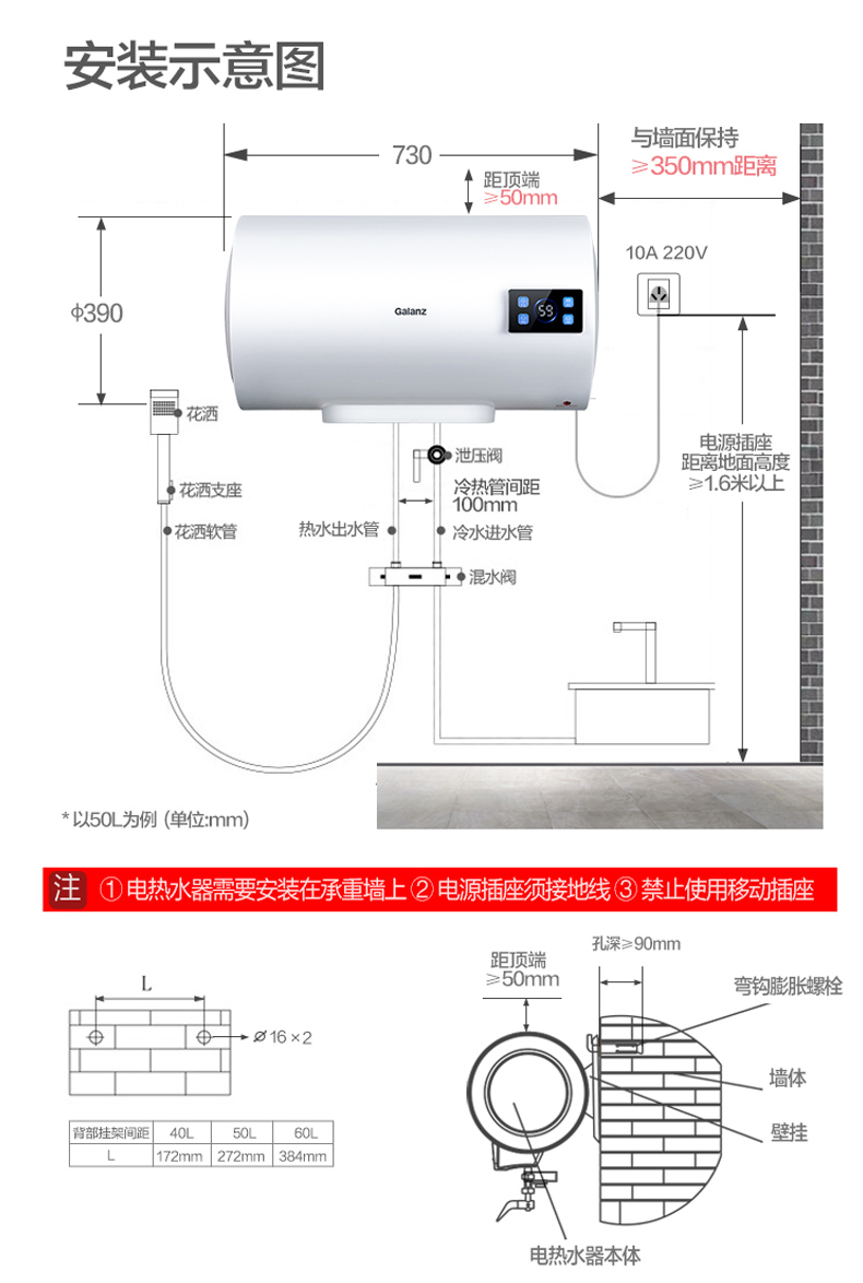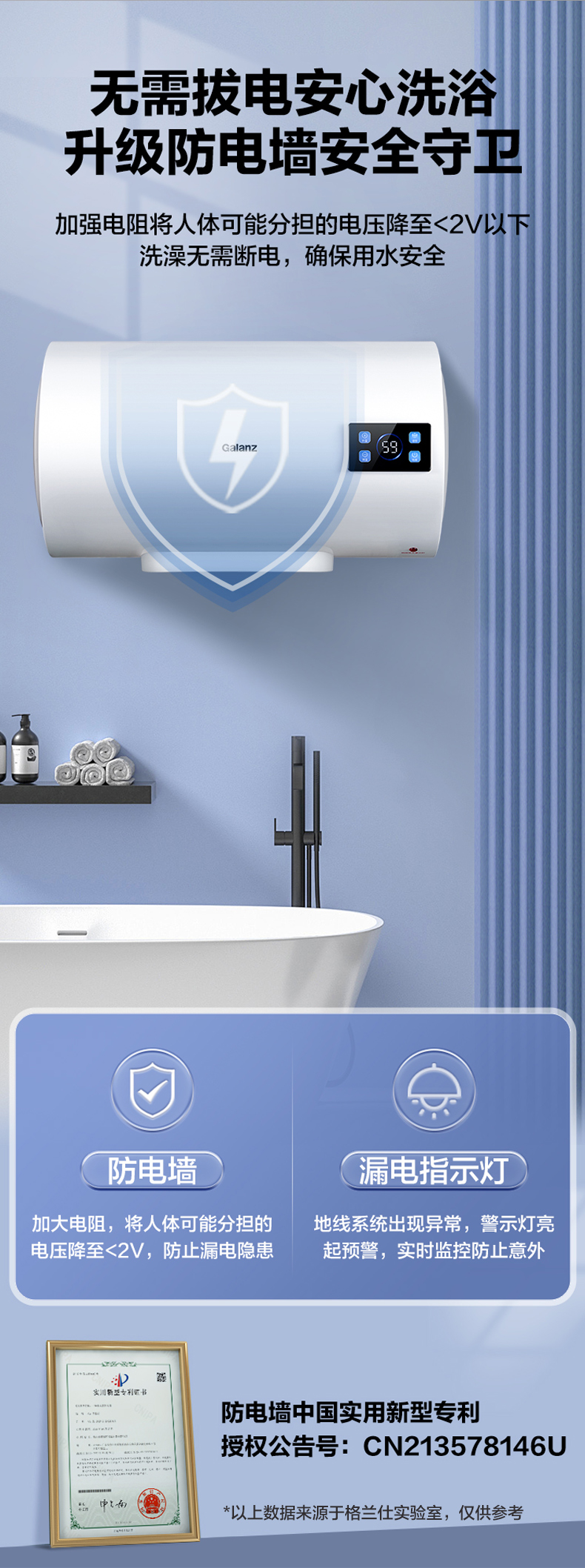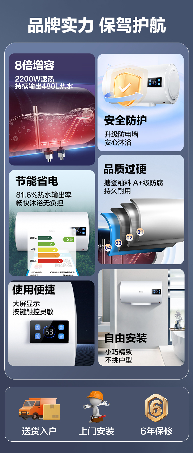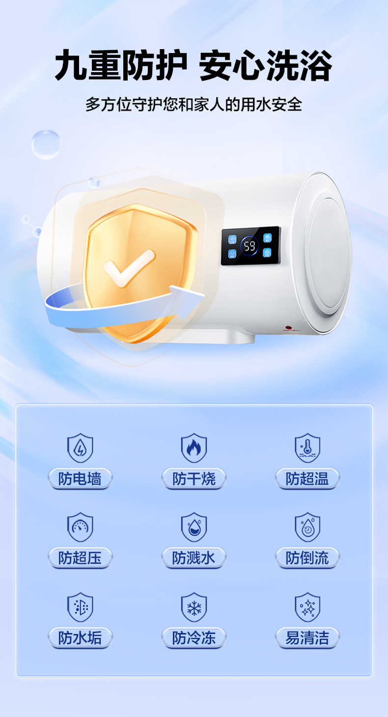格兰仕电热水器40升 政府补贴2200W速热升级防电墙耐腐蚀搪瓷内胆 抗腐蚀加热管 家用储水式热水器GD40-22DY1
