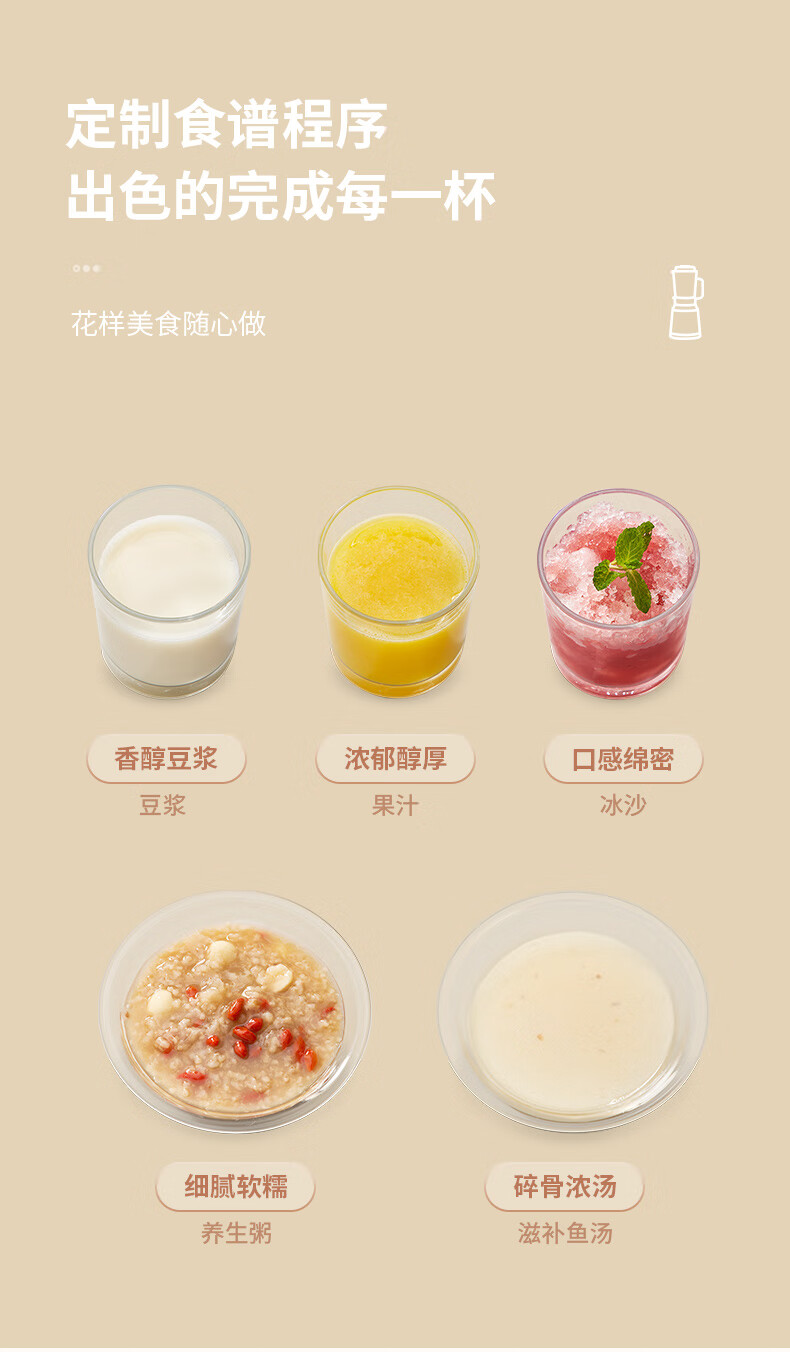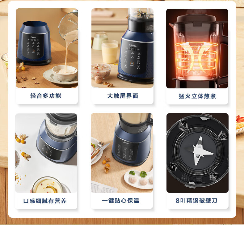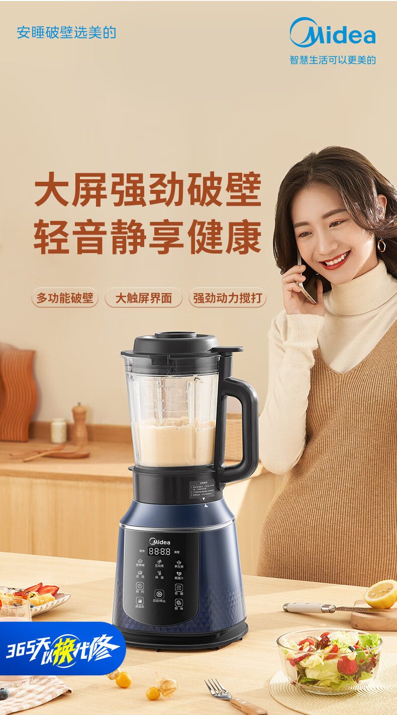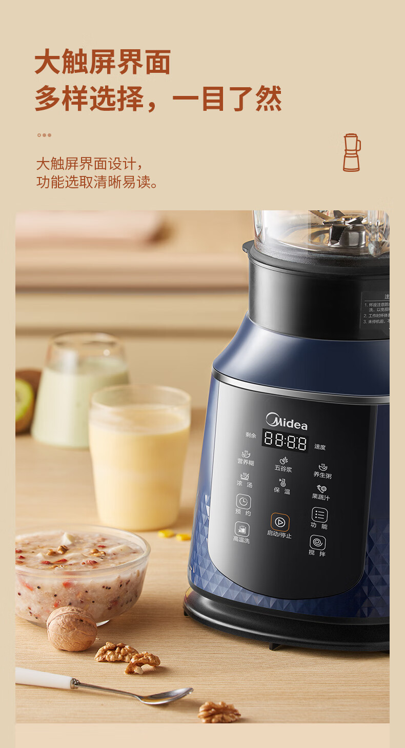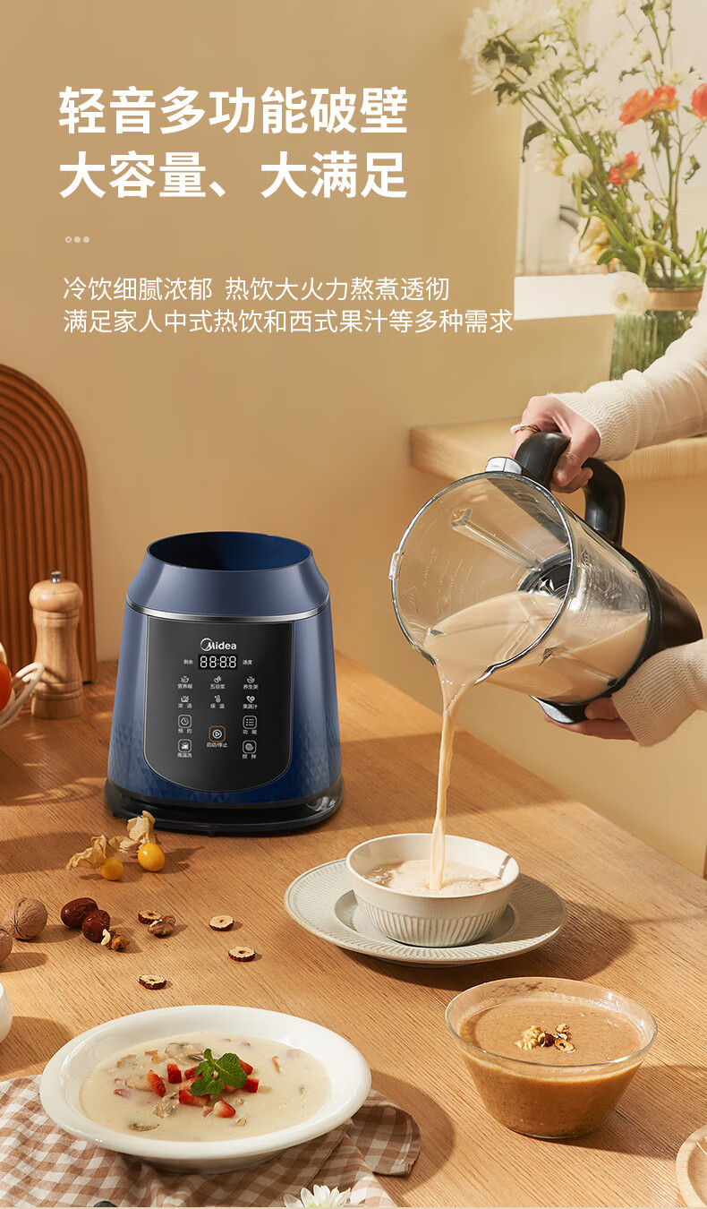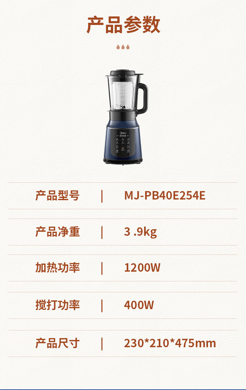 美的(Midea)破壁机 家用多功能豆浆机 料理机榨汁机果汁机辅食机MJ-PB40E254D