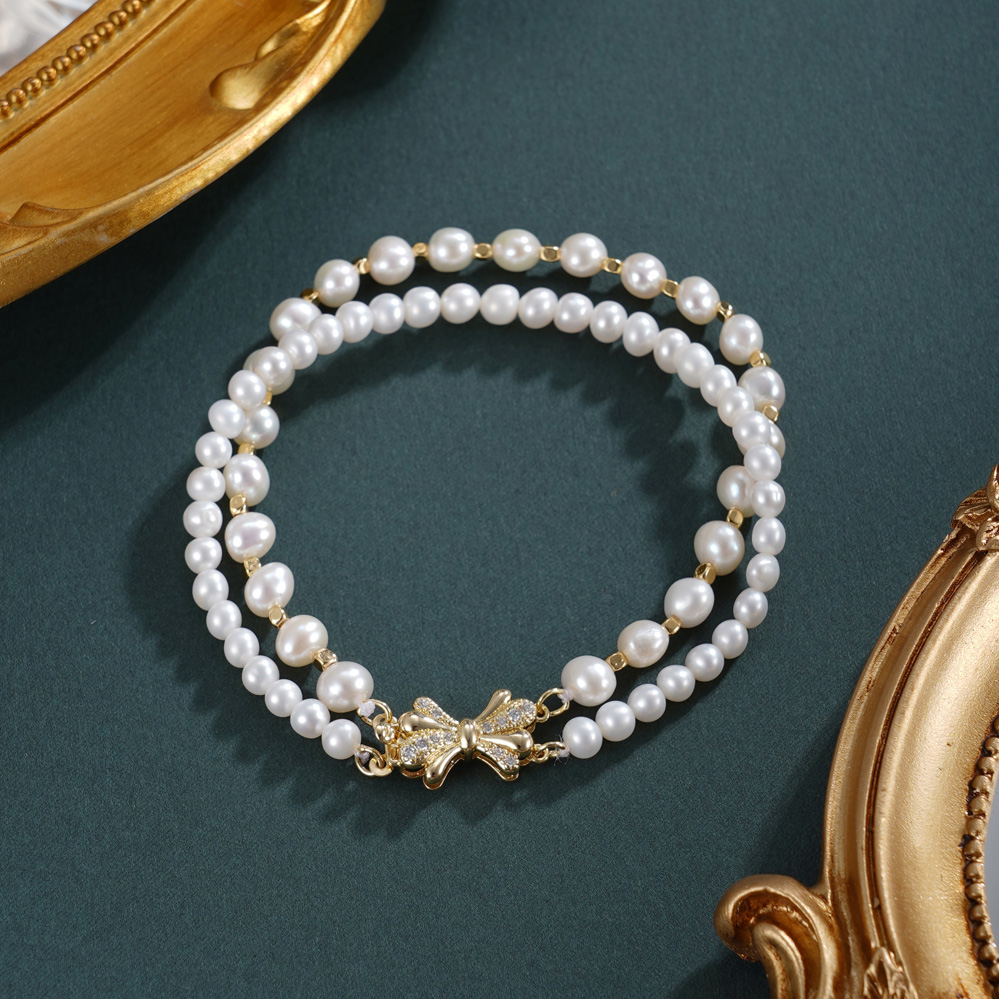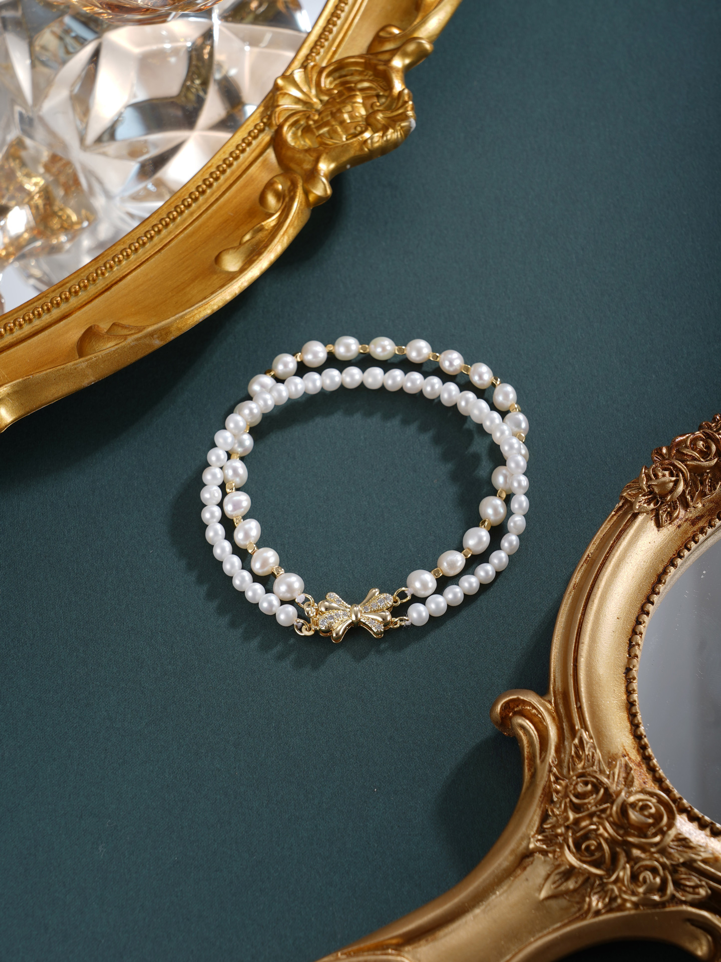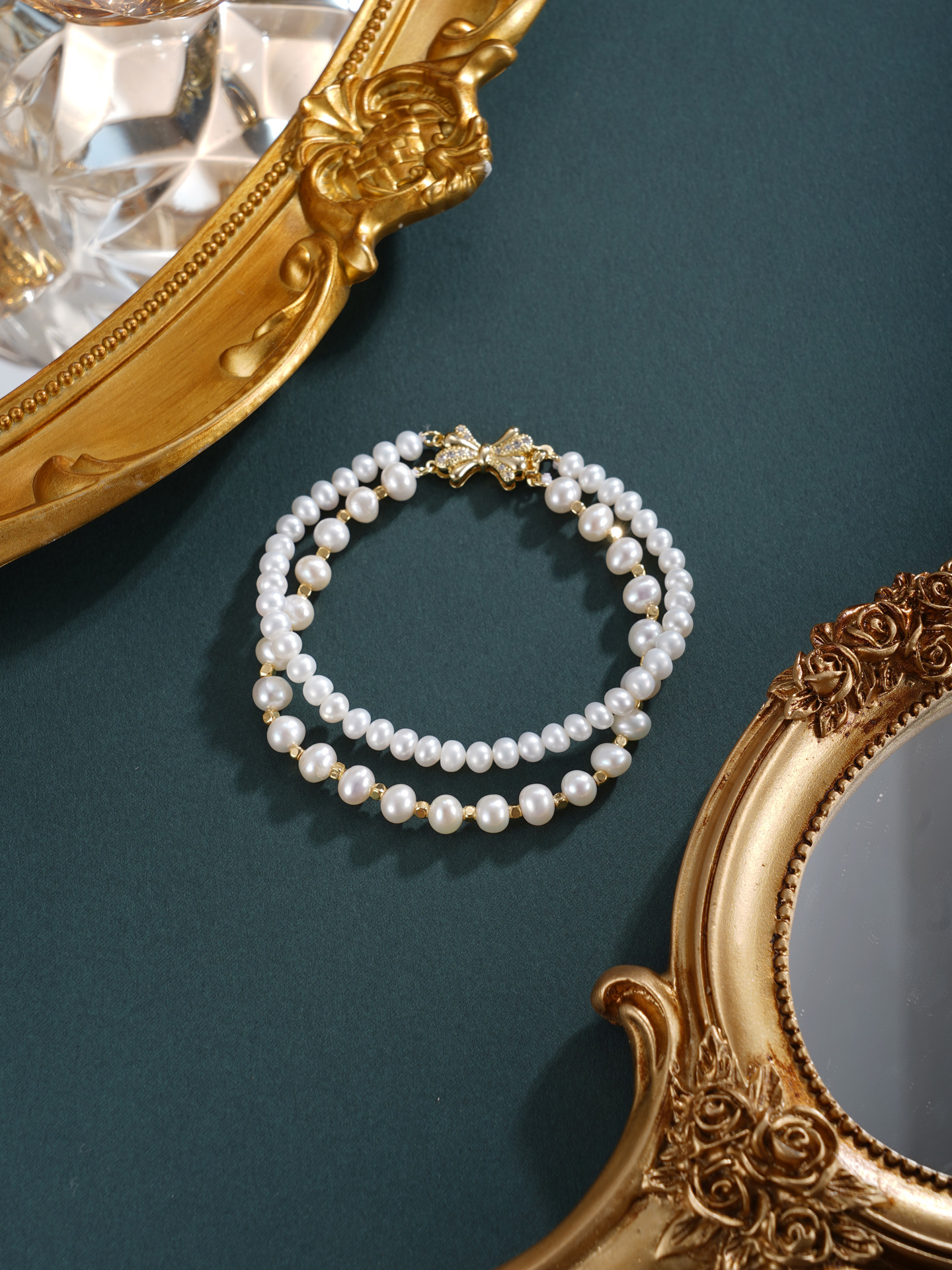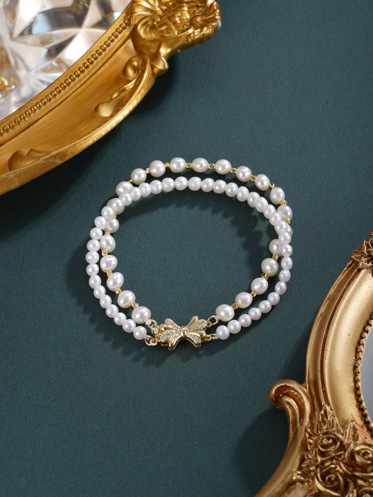 子佩集【珍爱情结】珍珠惜王妃手链【ZZSL003】4.5-6mm珠镀金蝴蝶结2601