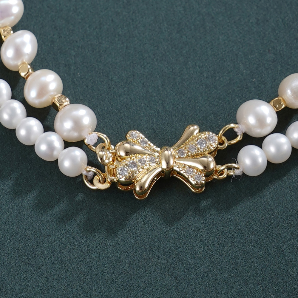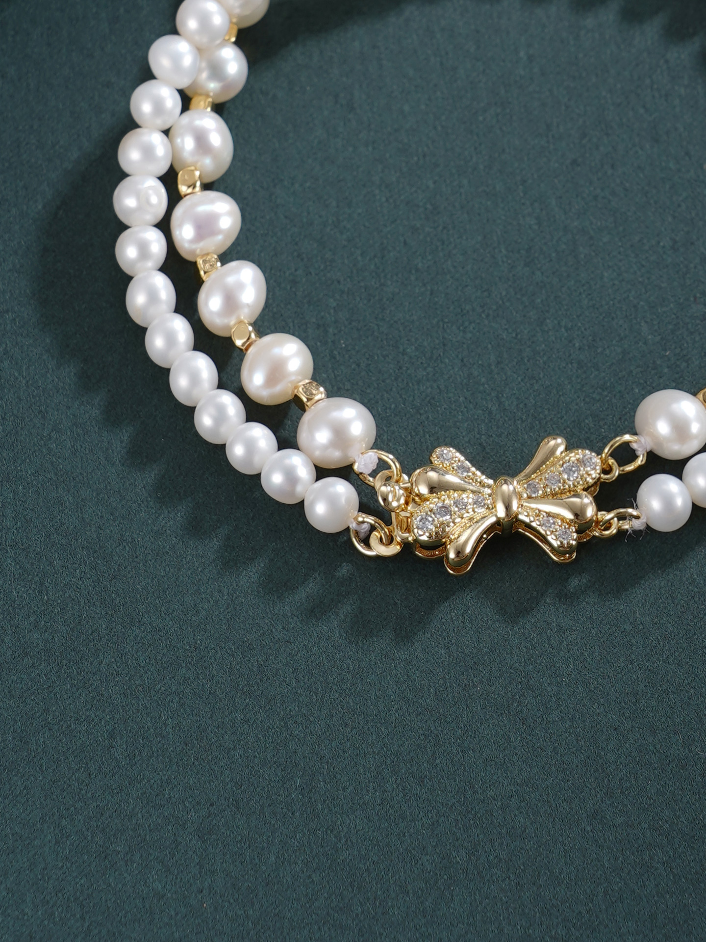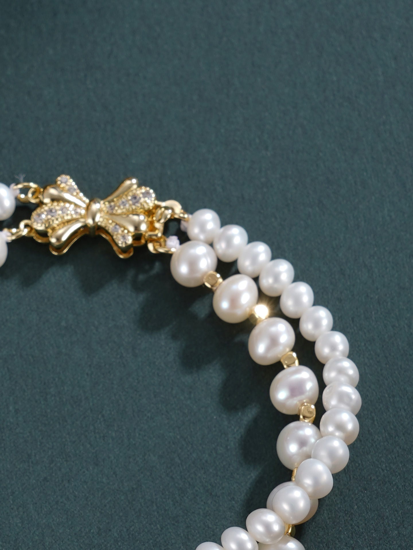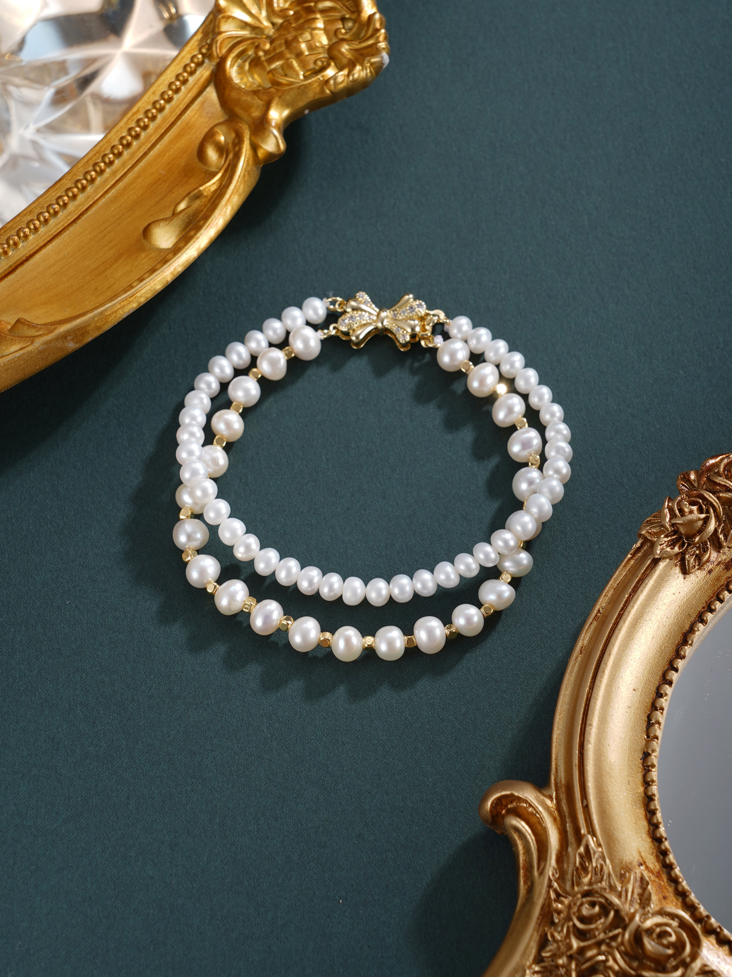 子佩集【珍爱情结】珍珠惜王妃手链【ZZSL003】4.5-6mm珠镀金蝴蝶结2601