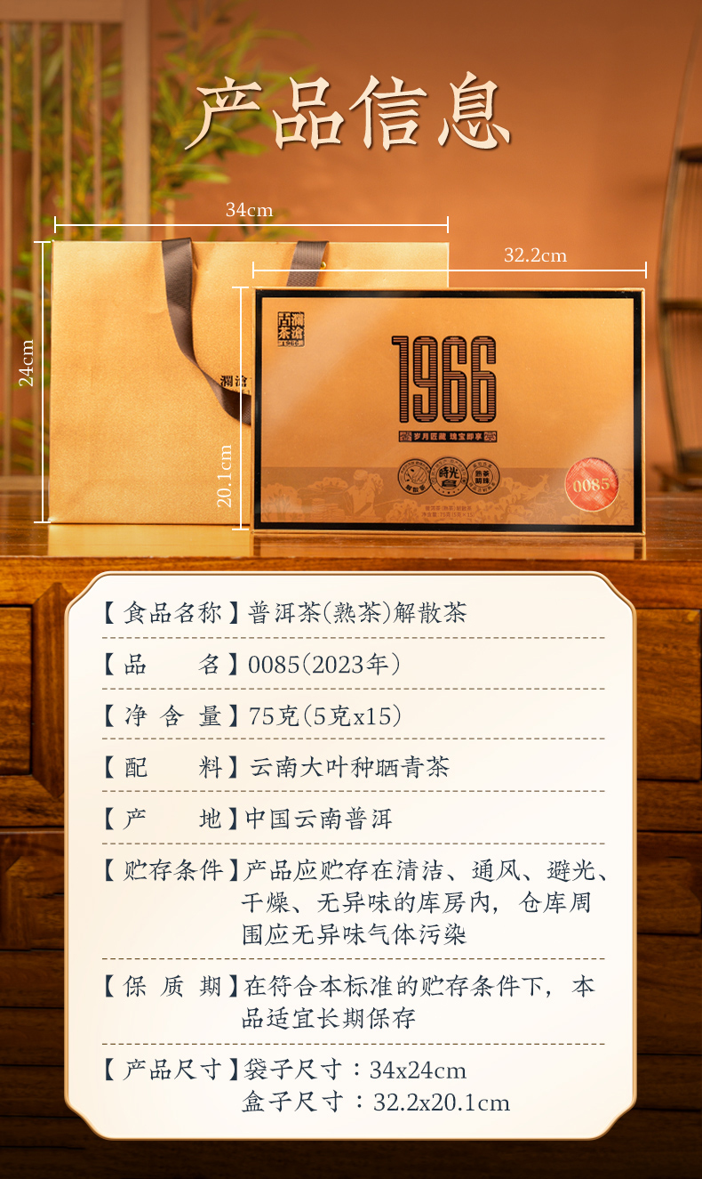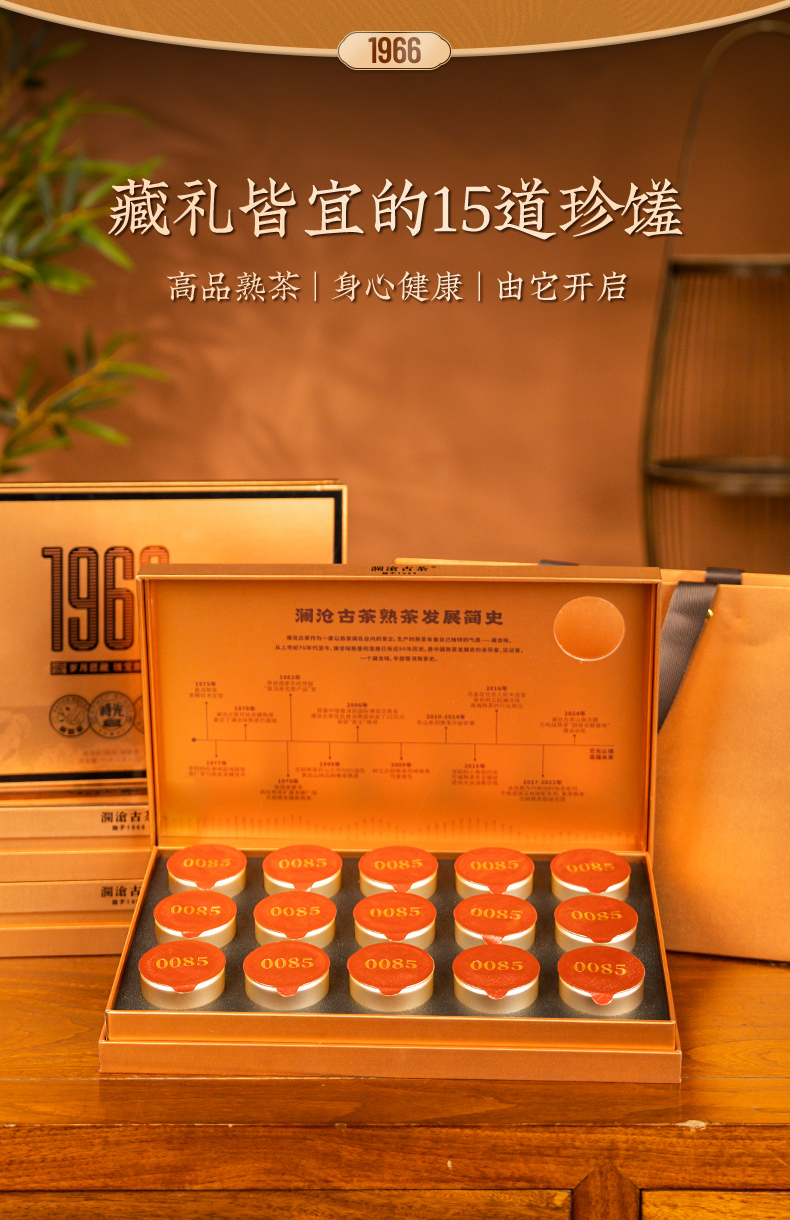 澜沧古茶2024年鉴赏1966(0085)景迈古树普洱茶 熟茶熟普云南茶叶75g(5g*15罐)
