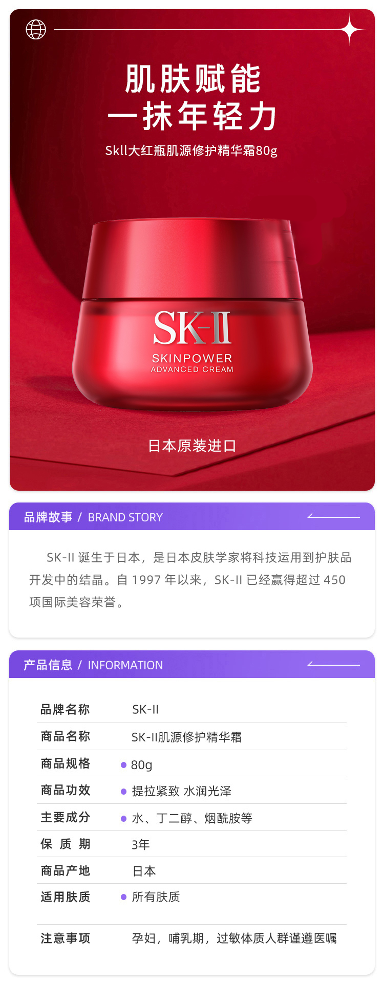 【跨境】SK-II大红瓶面霜清爽版80g 新款 效期:2027/11