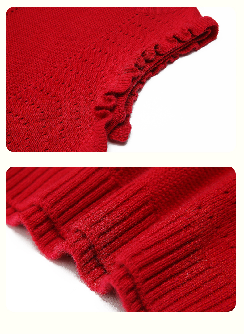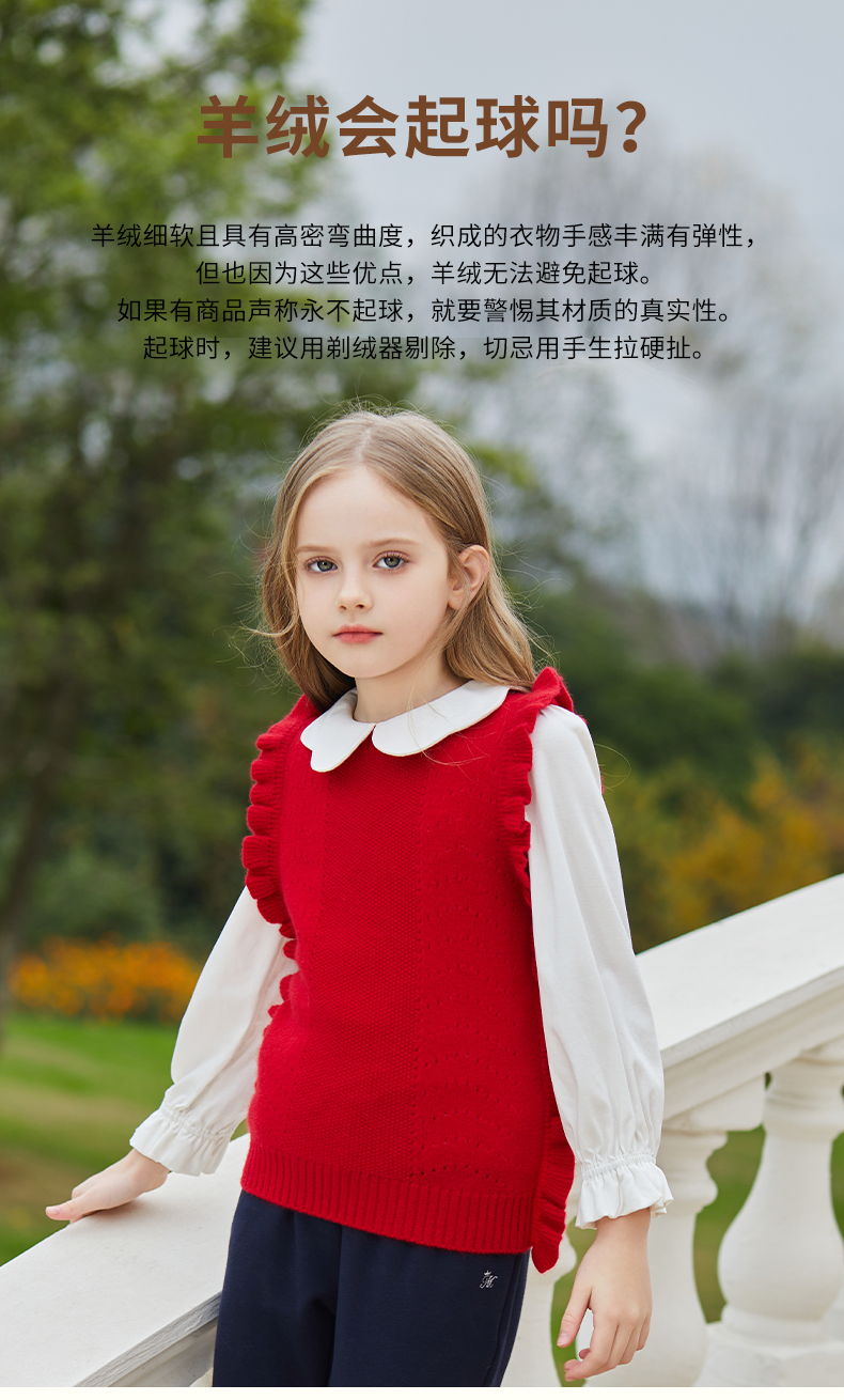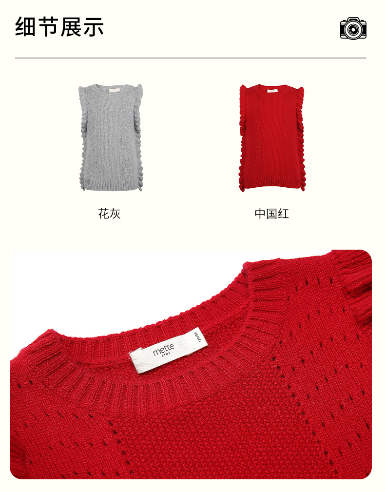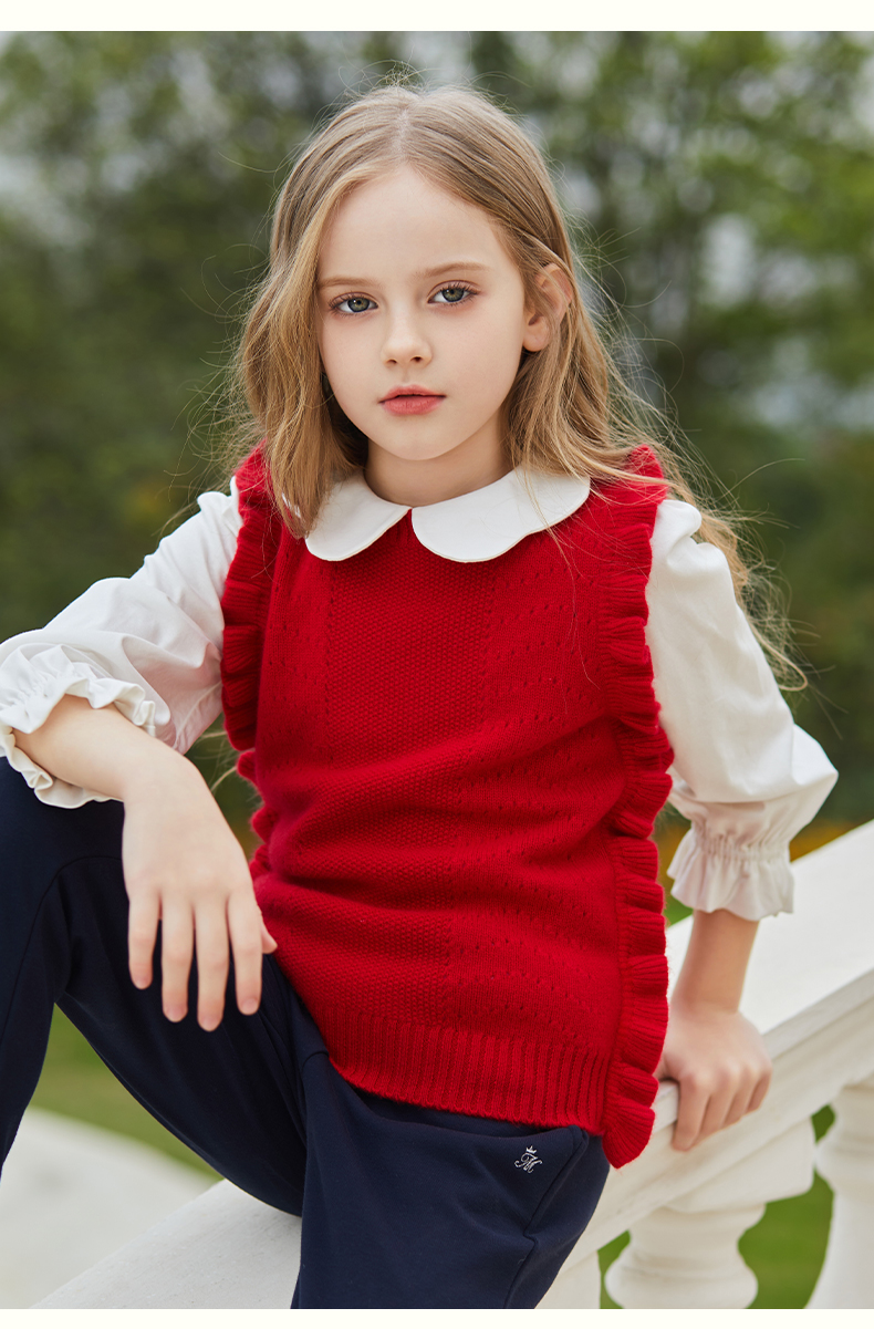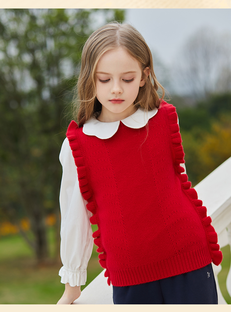 mettekids儿童羊绒衫女童毛衣背心马甲针织衫红色春秋款打底衫