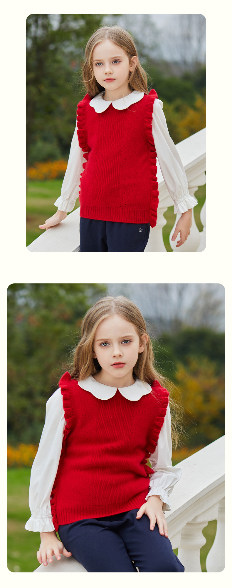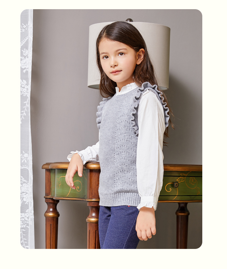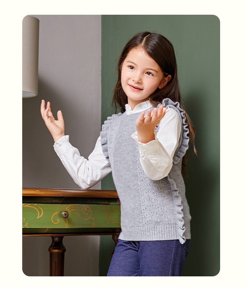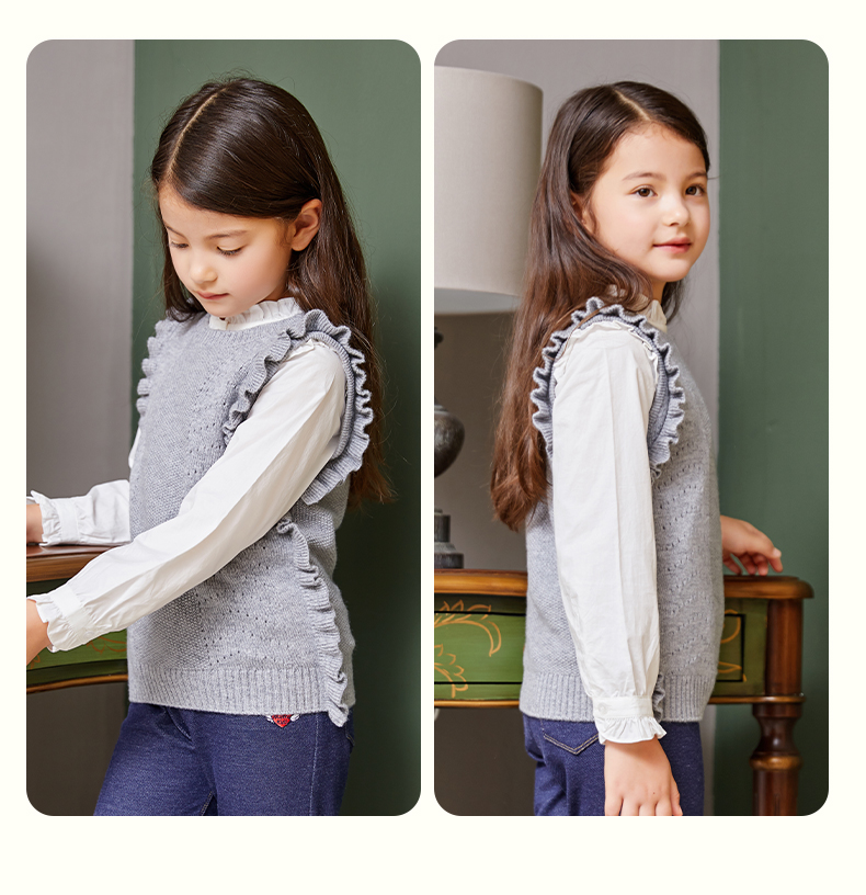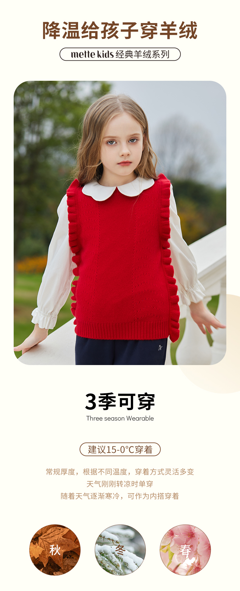 mettekids儿童羊绒衫女童毛衣背心马甲针织衫红色春秋款打底衫