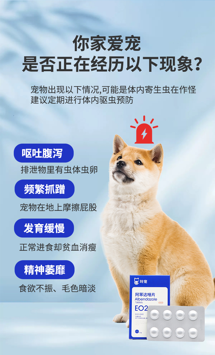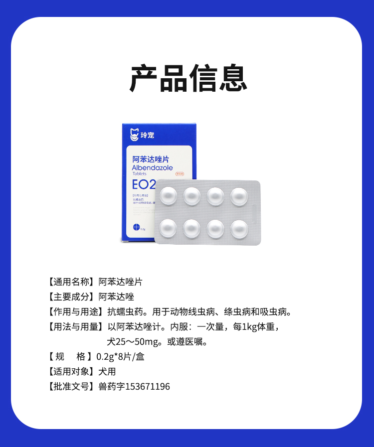 玲宠阿苯达唑片宠物用兽用正品小狗打虫专用驱虫药狗狗体内驱虫