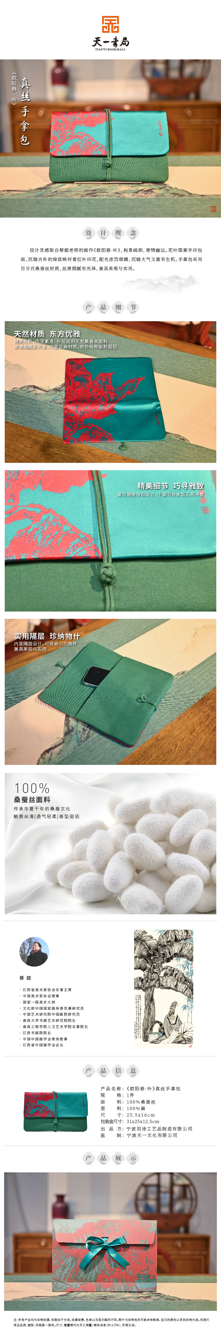 羽诗制造出品 蔡超欧阳修桑蚕丝复古新中式国风手拿包礼盒套装