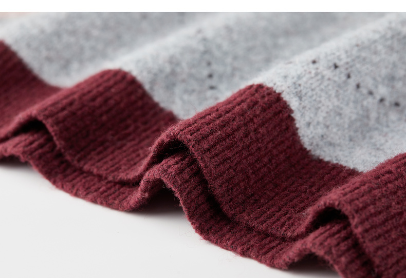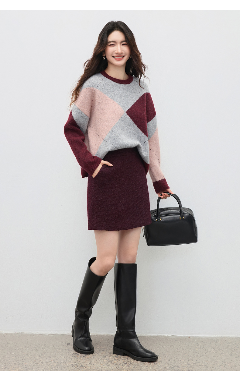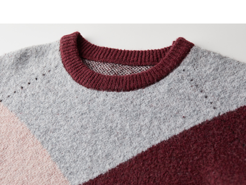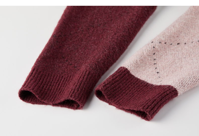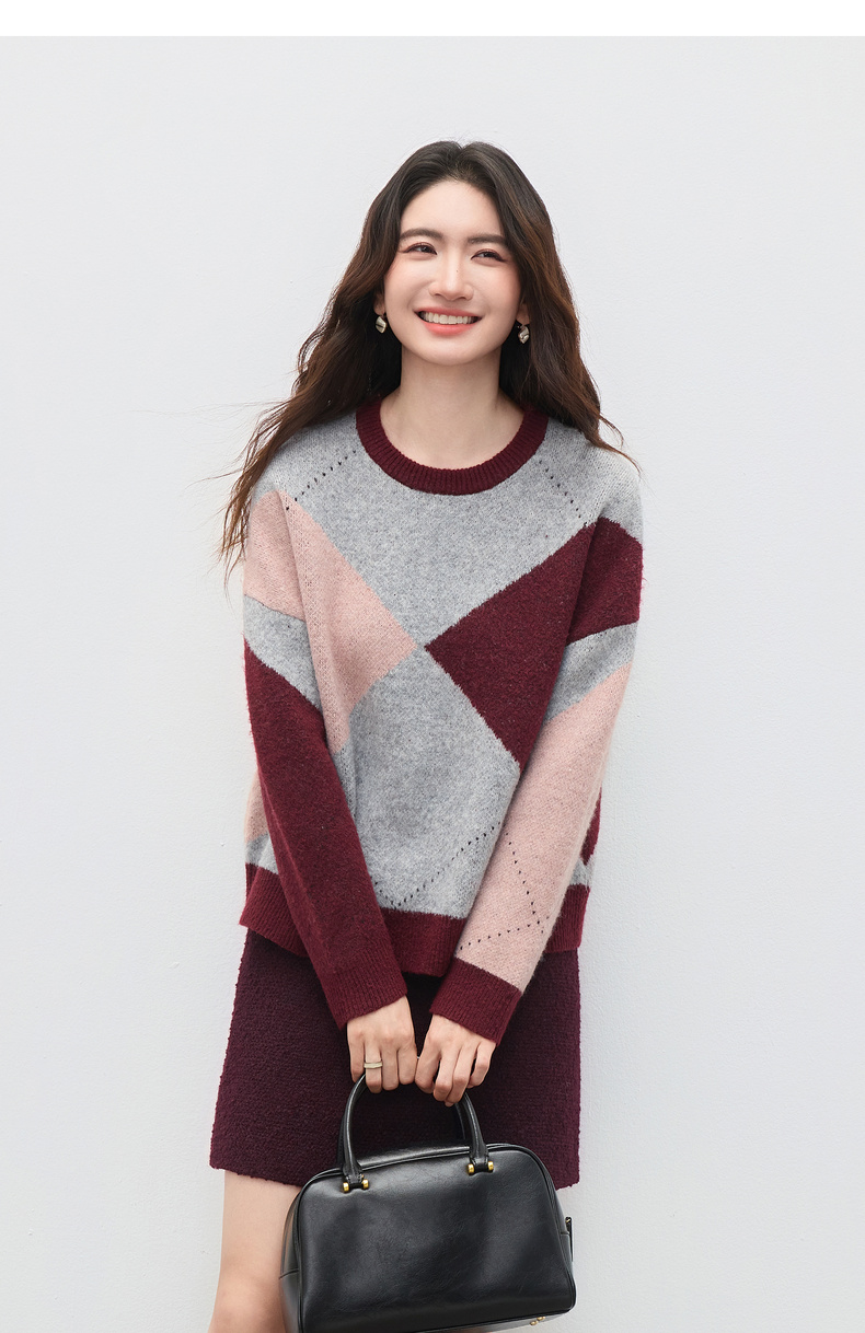 【内购】【几何美学】时尚撞色芝麻地镂空设计圆领宽松含绵羊毛百花绒毛衣-W54ED3765