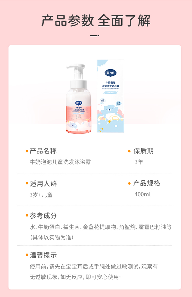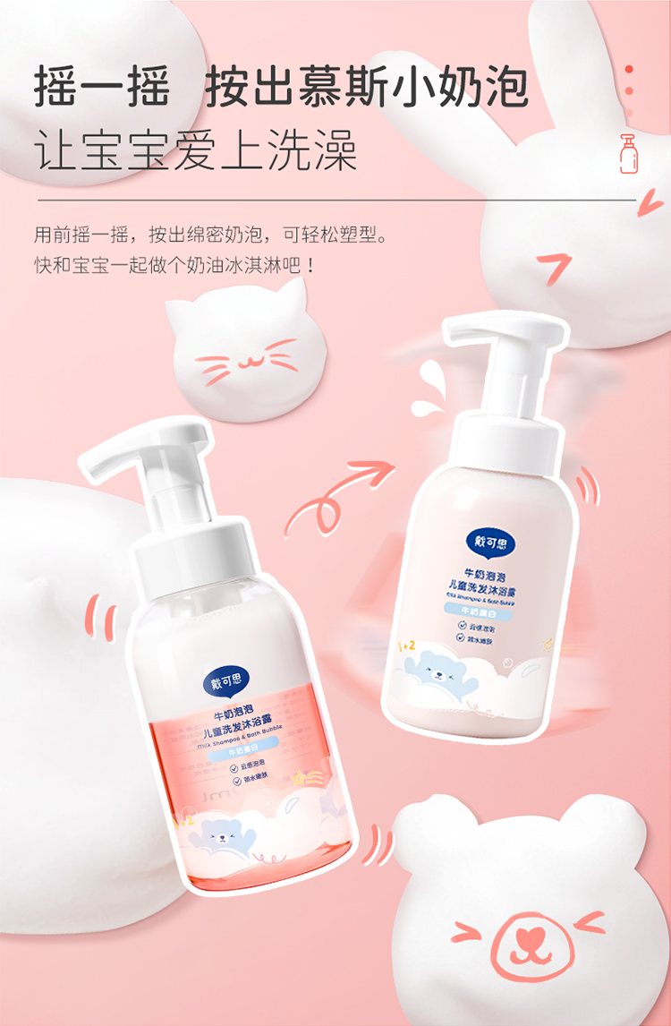戴可思儿童沐浴露洗发水二合一牛奶泡泡婴儿宝宝洗护用品♥
