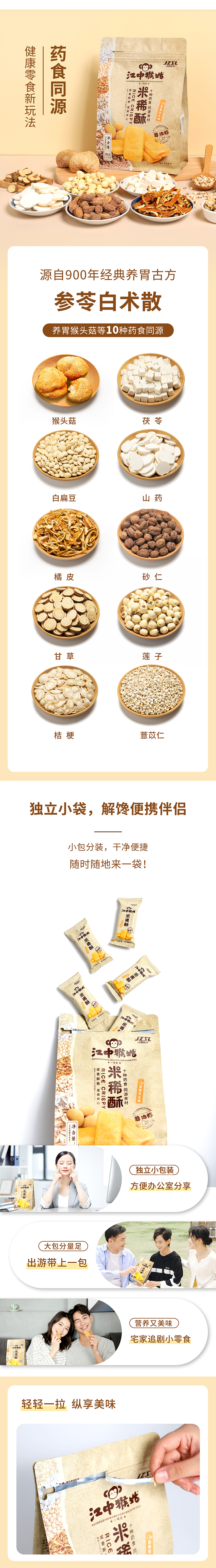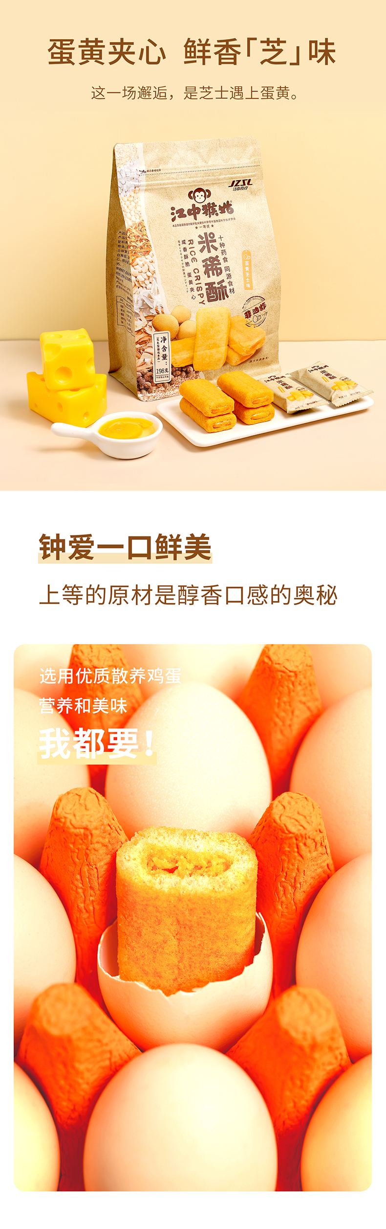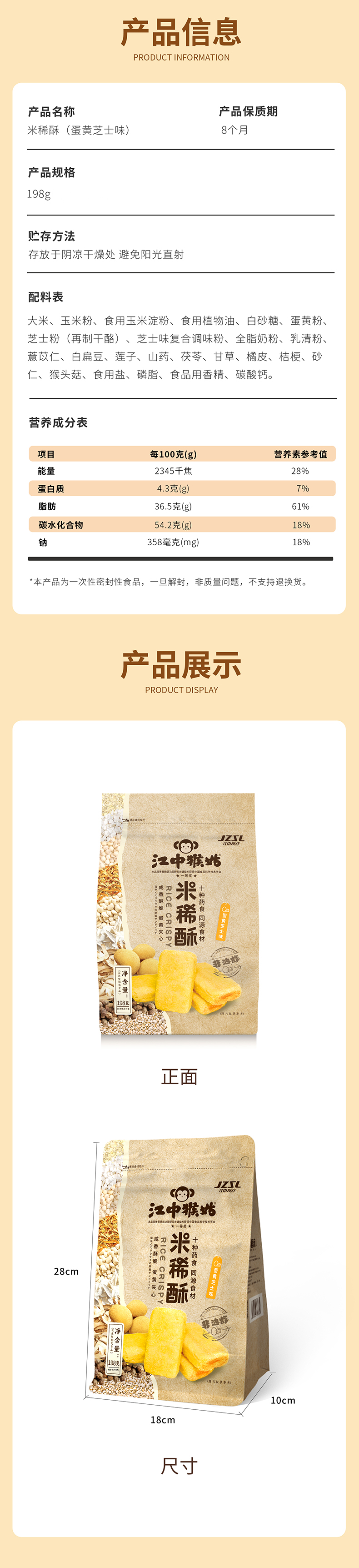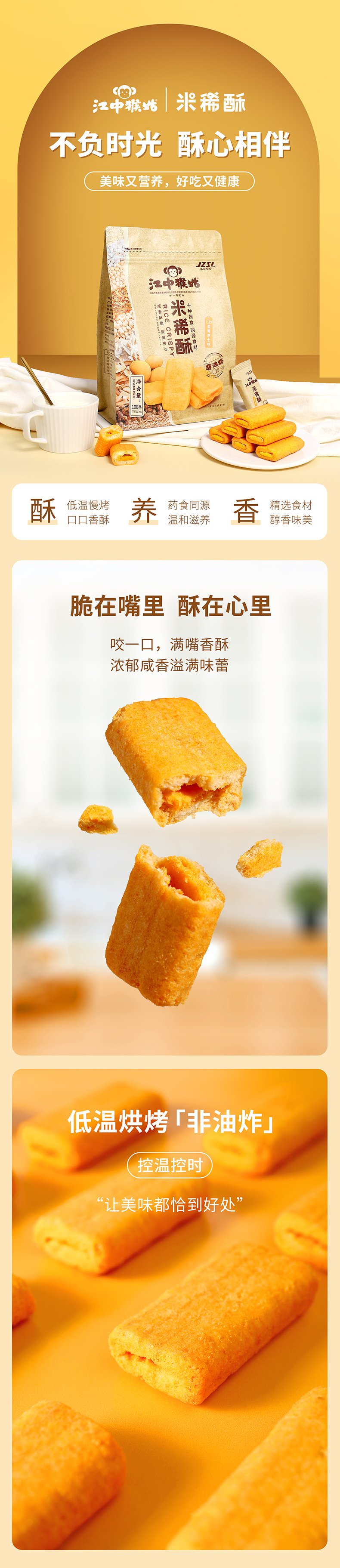 【秒杀】2袋*江中猴姑·米稀酥 198g/袋(蛋黄芝士味)非油炸 咸香酥脆 蛋黄夹心(均价14.9元/袋)
