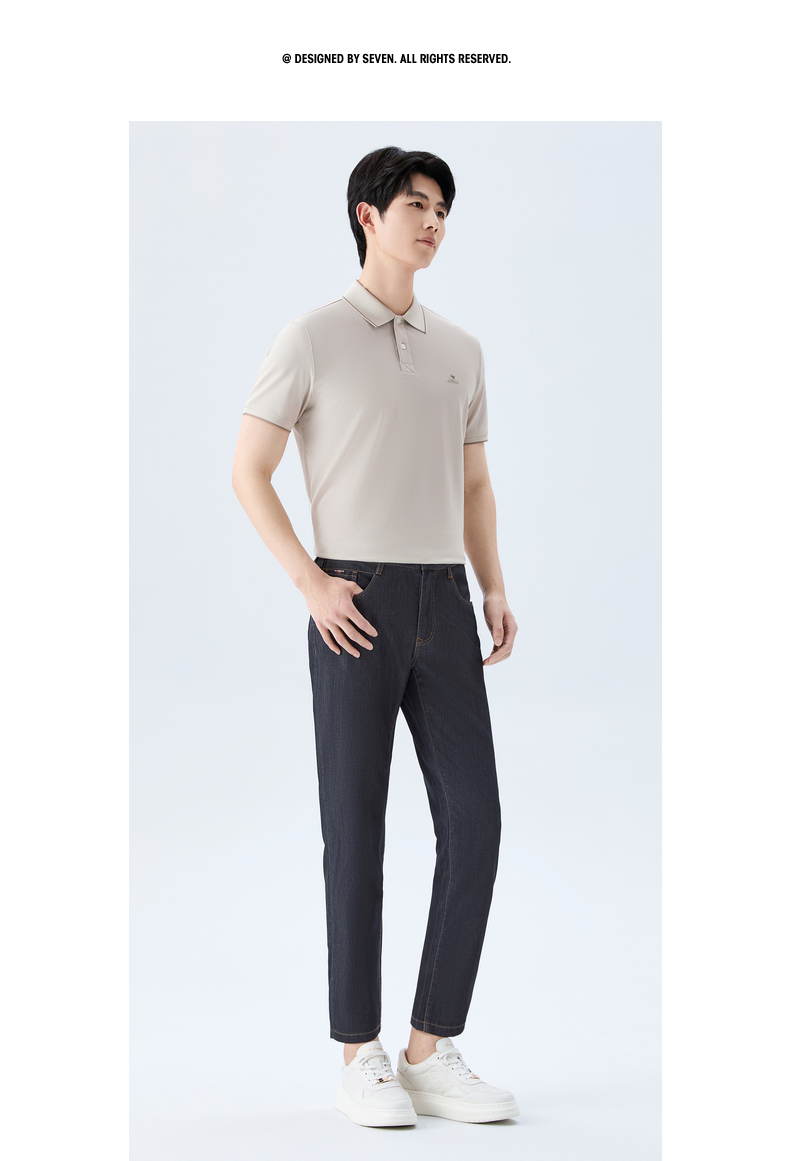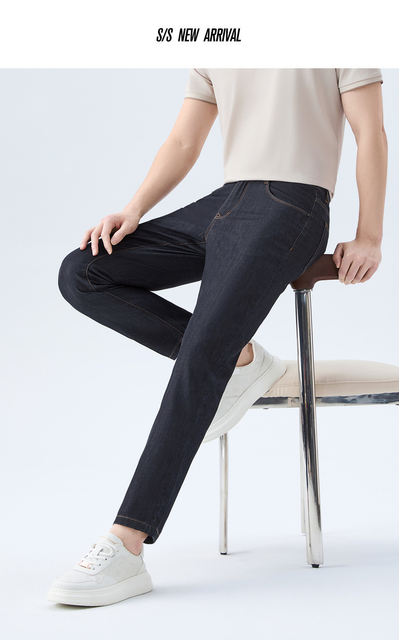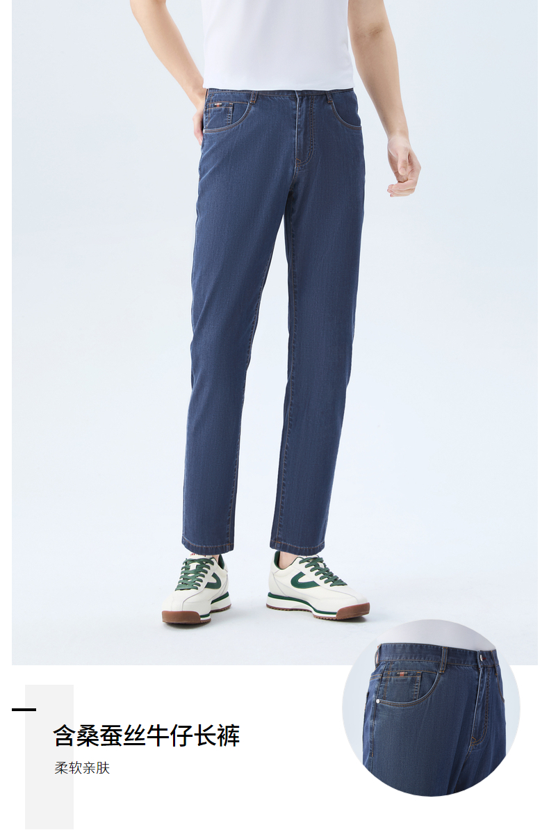 【含桑蚕丝】柒牌裤子男2026春季经典商务九分裤撞色男裤牛仔长裤 130H70970