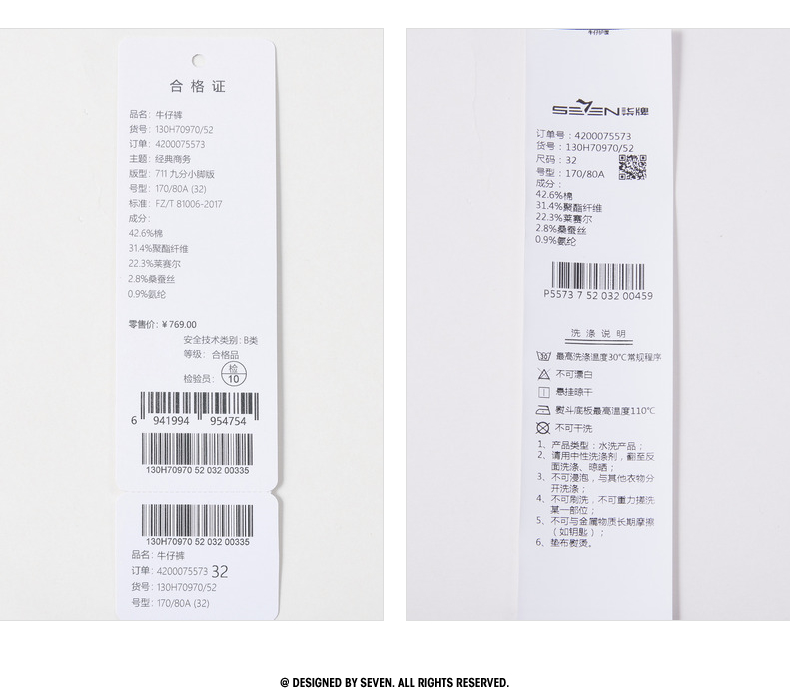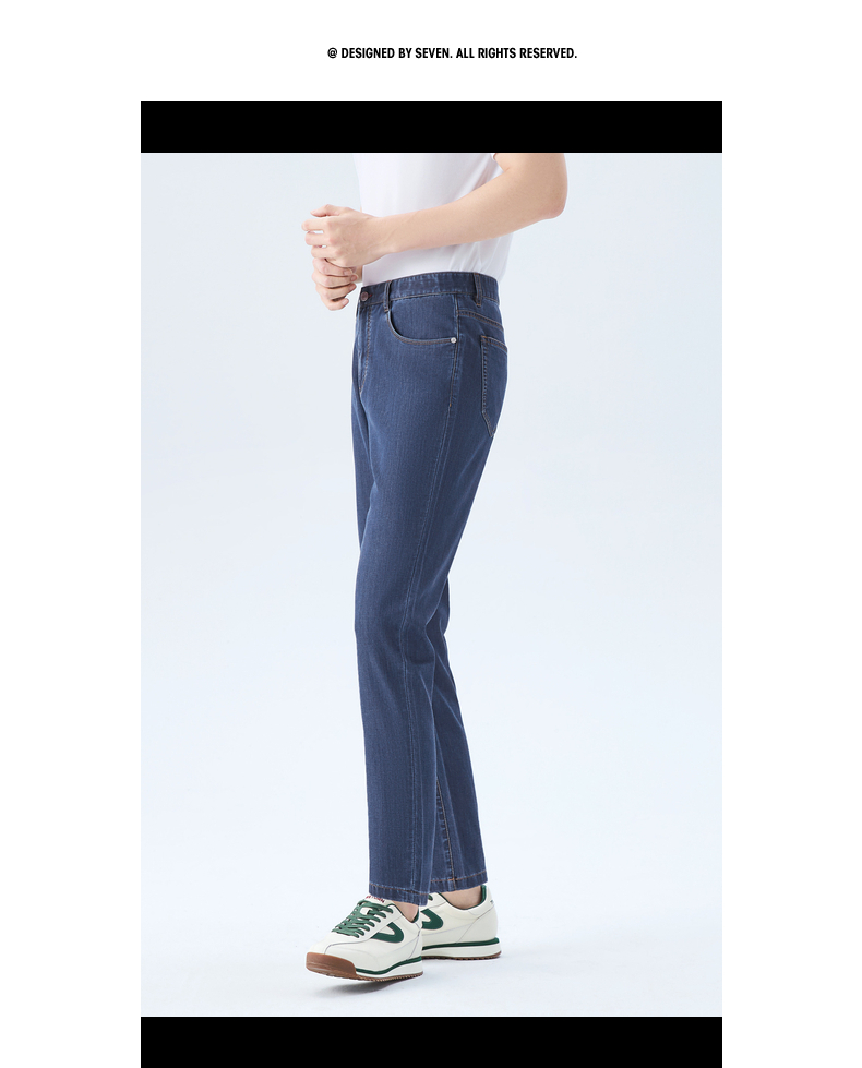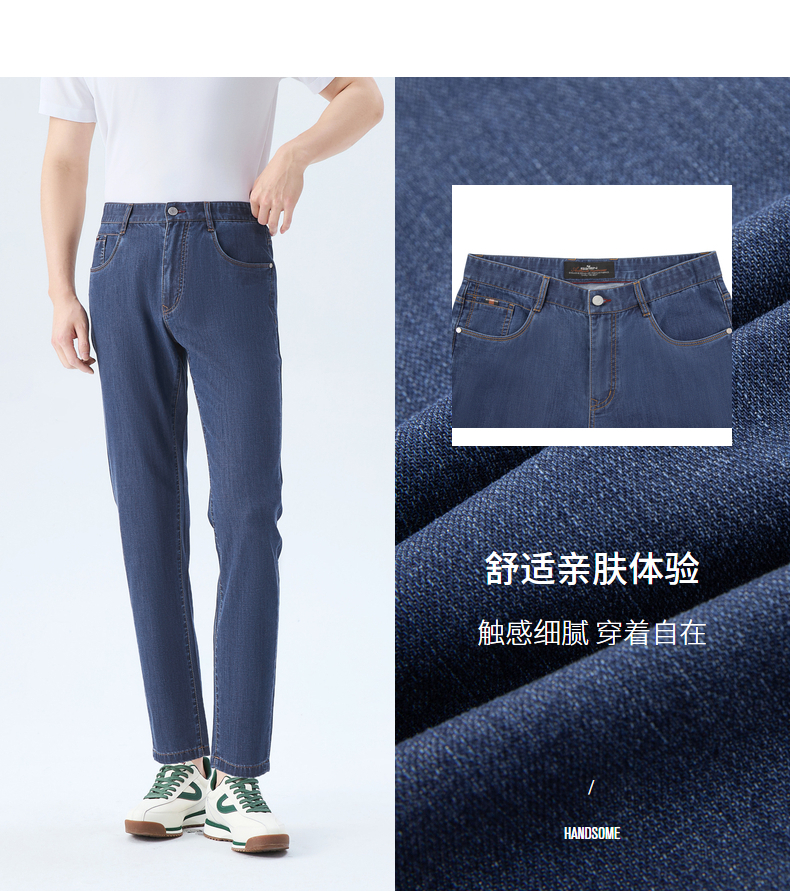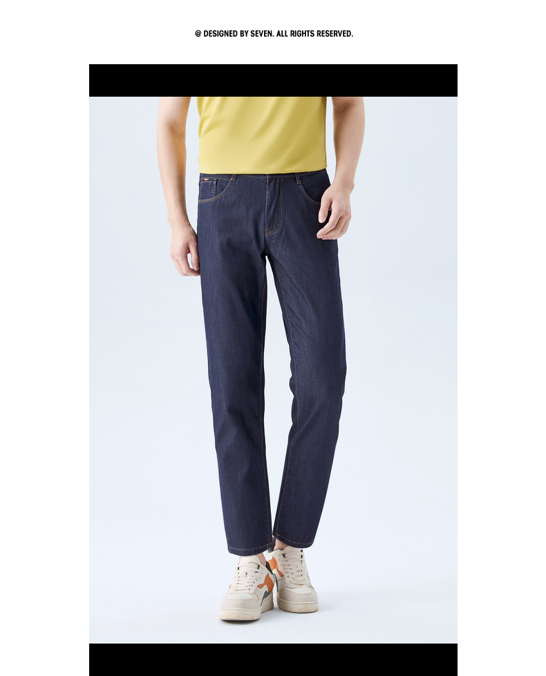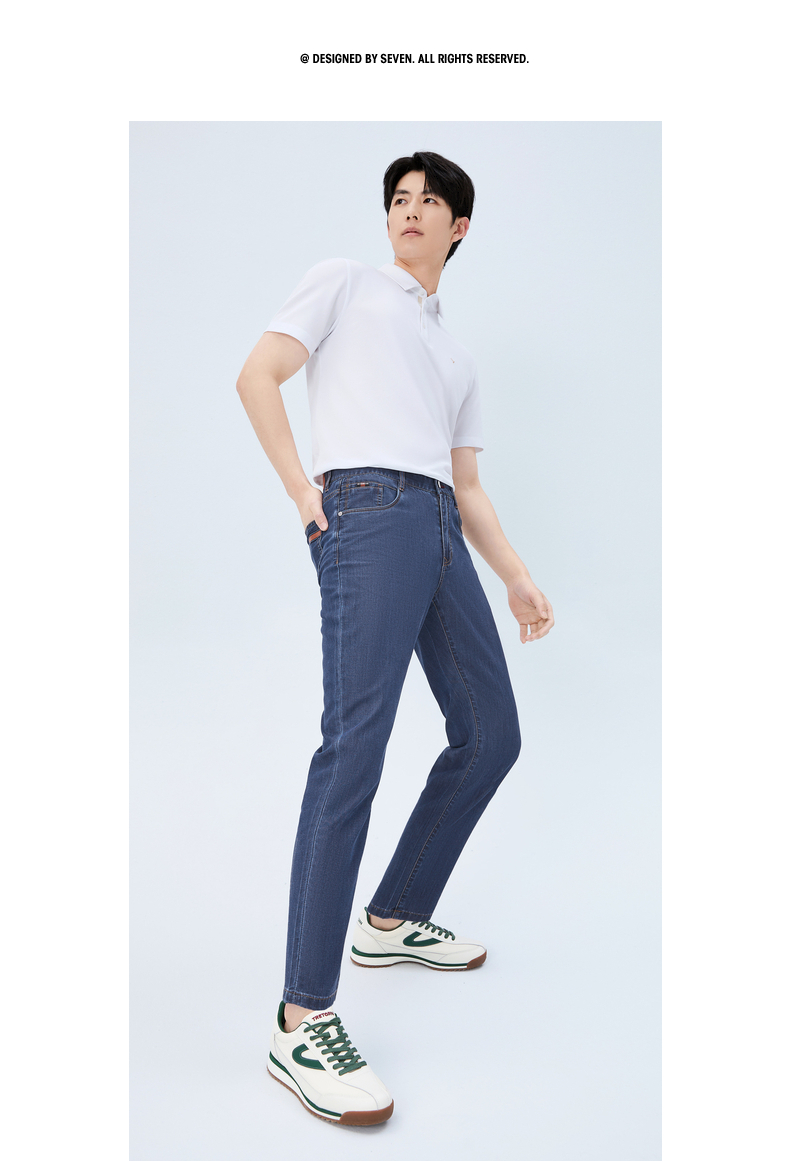 【含桑蚕丝】柒牌裤子男2026春季经典商务九分裤撞色男裤牛仔长裤 130H70970