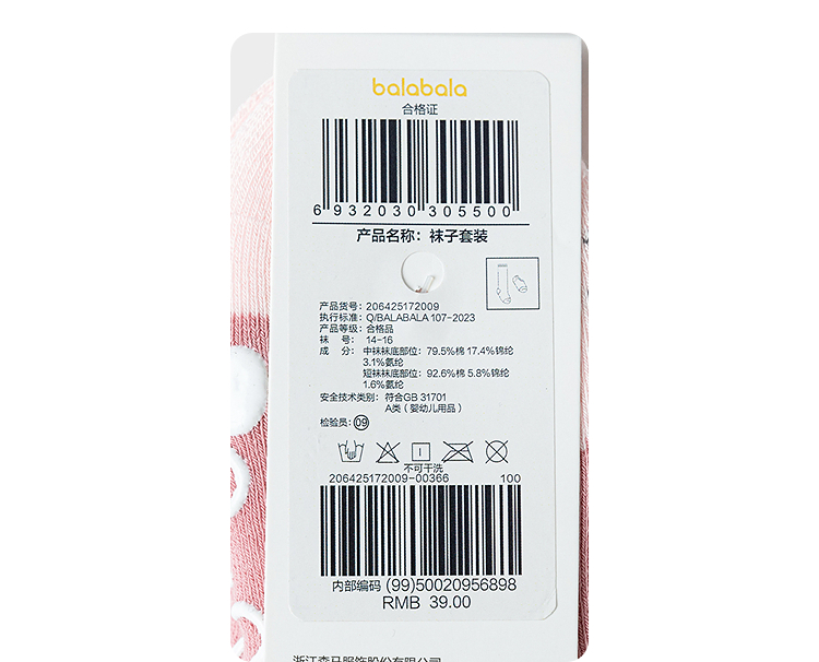 巴拉巴拉宝宝袜子冬季保暖袜婴幼儿中筒袜两件套舒适
