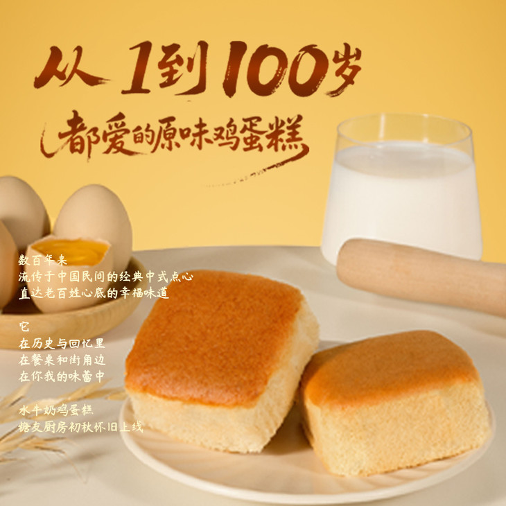 6️⃣【糖友厨房原味鸡蛋糕】 🩵不加一滴水,香味浓郁口感绵软🩵 原味鸡蛋糕,用牛奶鸡蛋和面,不加一滴水,原料更纯粹,香味更浓郁醇厚~ ✔ 鸡蛋添加量≥42% | 鲜鸡蛋,颗颗精选,圆润饱满 ✔ 双重乳源加持 | 添加纯牛奶+水牛乳,奶香醇厚,口感更丰富 ✔ 芝士风味点缀 | 芝士粉带来微微咸香,让回味更有层次感