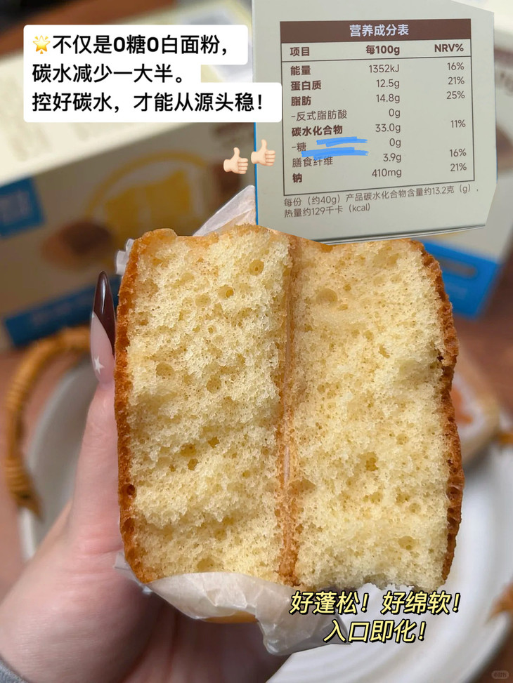 每款都标好升糖指数(GI) 像鸡蛋糕碳水含量才 33.0g/100g🥚 追剧摸鱼来一口,解馋还没负担~ 不管是自己控糖吃,还是送长辈 / 糖友都超合适 炫完一整包都不用慌的快乐,谁吃谁知道!
