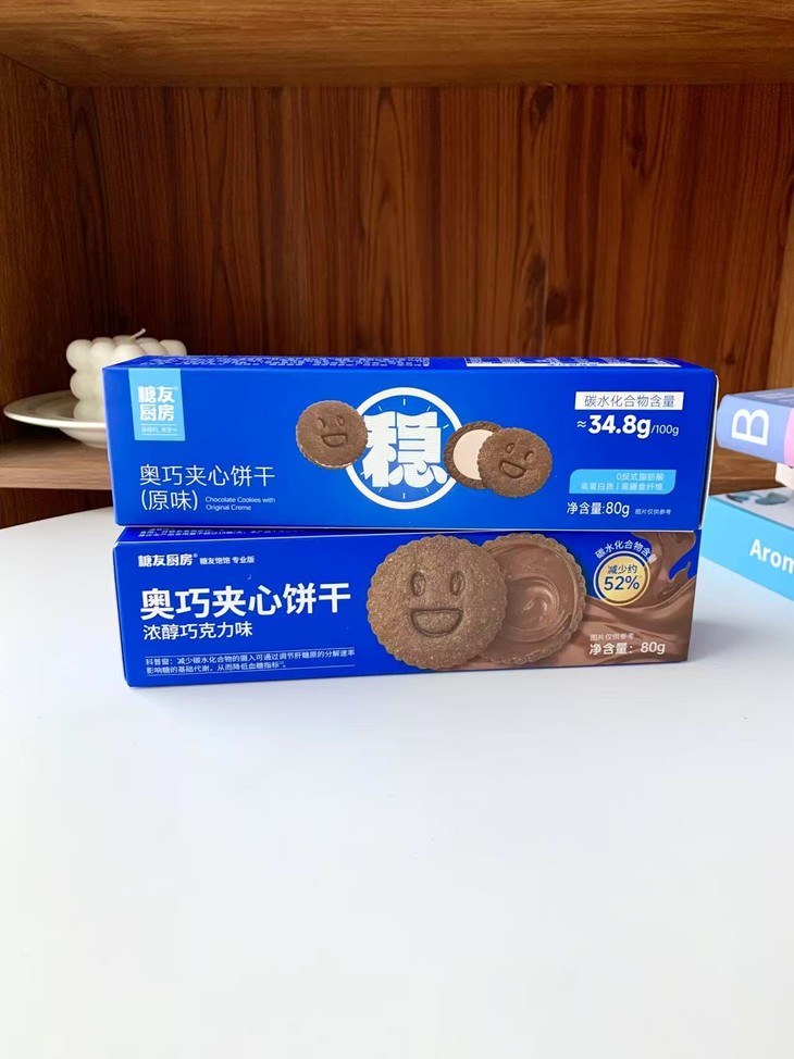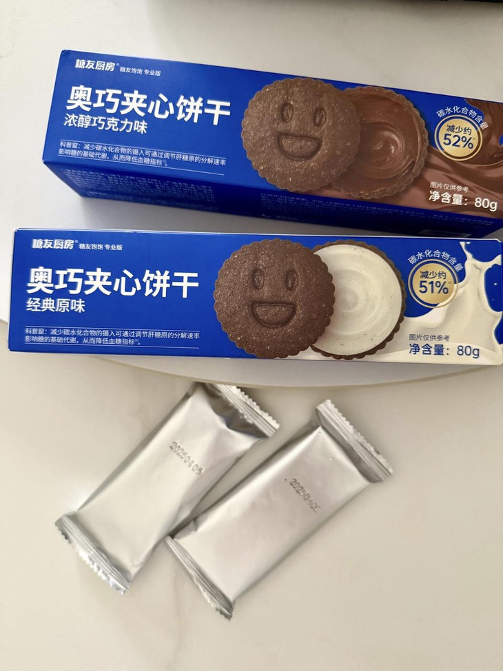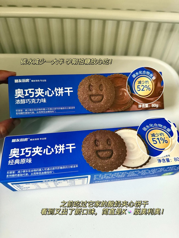 5️⃣【糖友厨房奥巧夹心饼干】 ✔真·夹心好吃!选料讲究不凑合 ✔配方更健康,碳水减少53%,控糖不炸糖 ✔不用香精色素防腐剂,0反式脂肪酸 ✔额外加了9种维生素和矿物质,解馋又补营养 ✔一包一片,便携轻松,适合控糖/减脂/孕期嘴馋人群常备