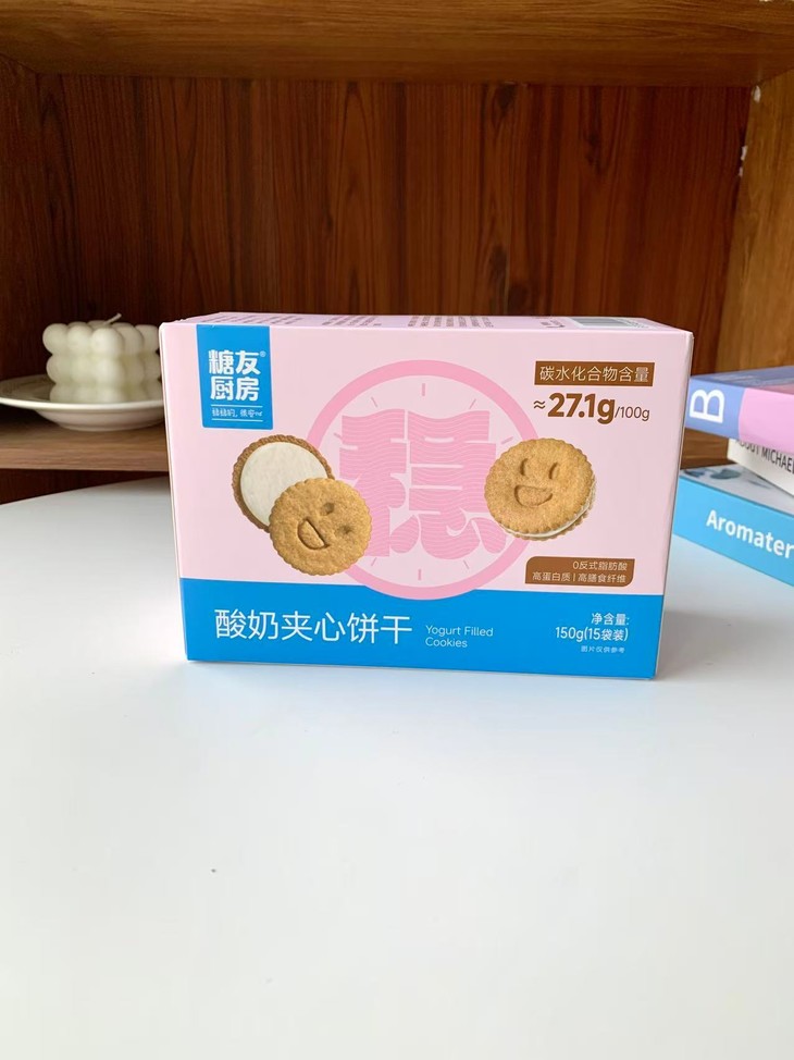 1️⃣【糖友厨房酸奶夹心饼干】 🔺新鲜牛乳做夹心,酸酸甜甜好滋味 夹心酸甜适中,天然发酵赋予它恰到好处的清爽滋味 🔺9种维生素矿物质,解馋不忘补营养 特别添加9种维生素和矿物质,给身体提供额外营养支持。有了它,零食时间也在偷偷补充营养! 🔺低碳水、高膳食纤维 血糖波动更小,不容易发胖 🔺0香精0反式脂肪酸,配料表很干净 这一口下去不仅解馋,还吃得放心 只要尝试过这个饼干 其他的饼干就不会想吃了