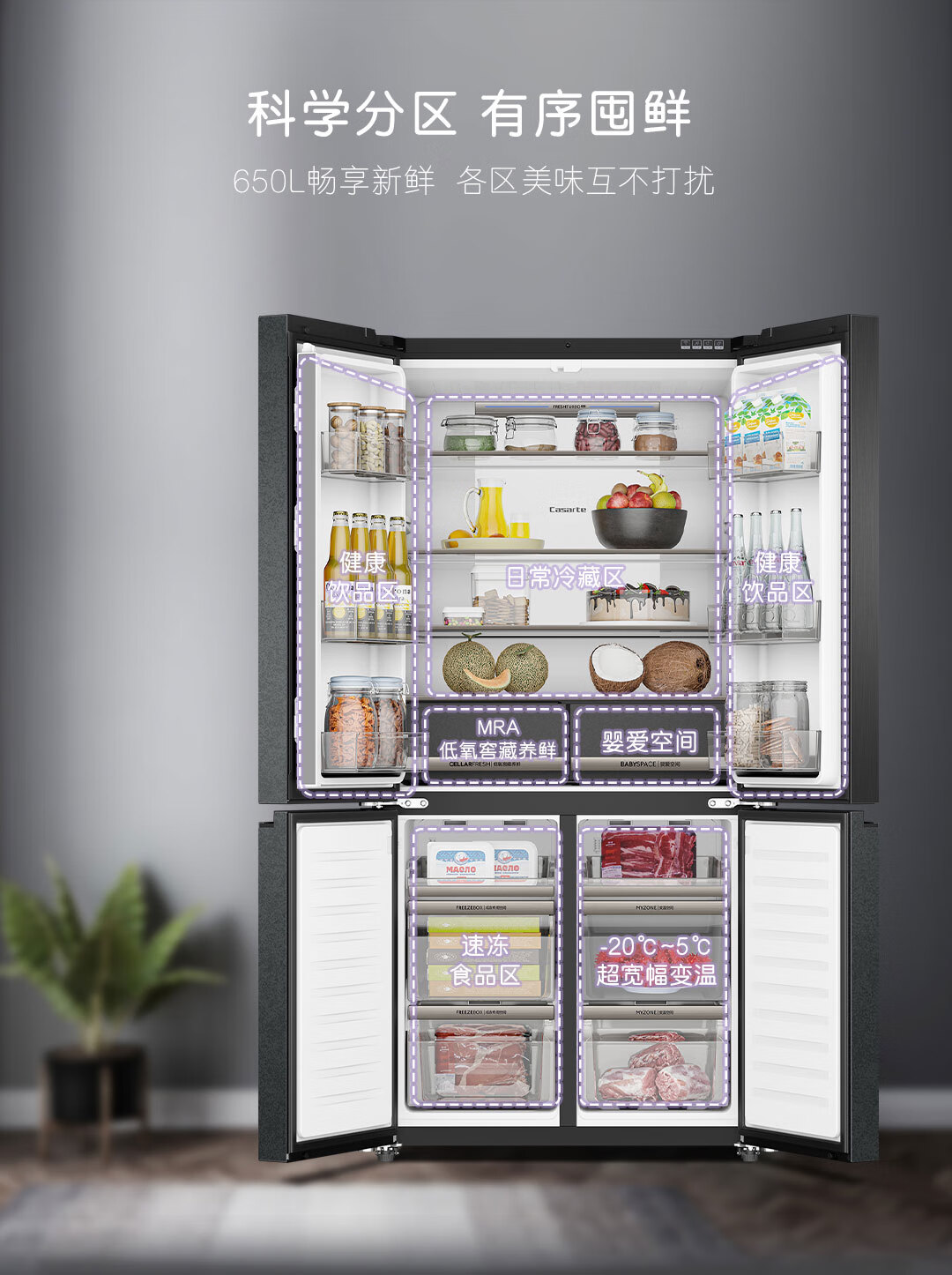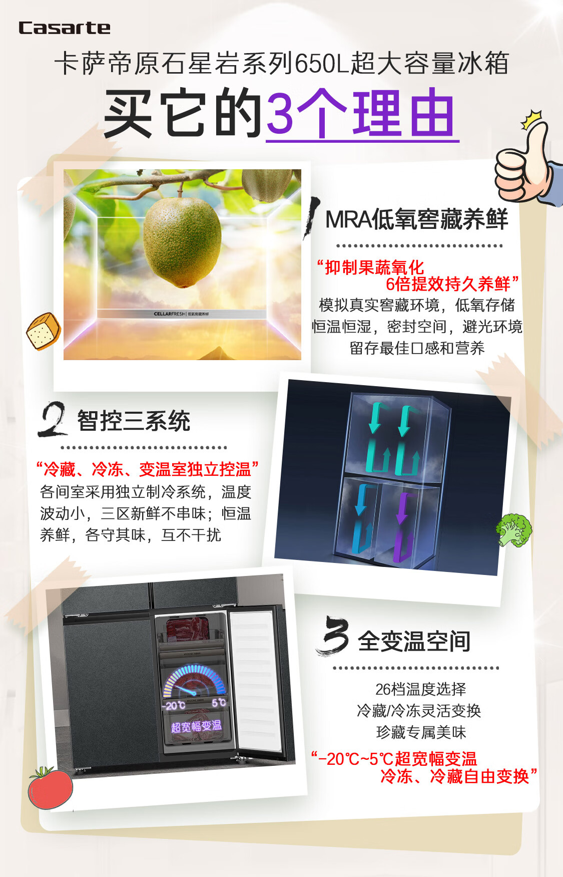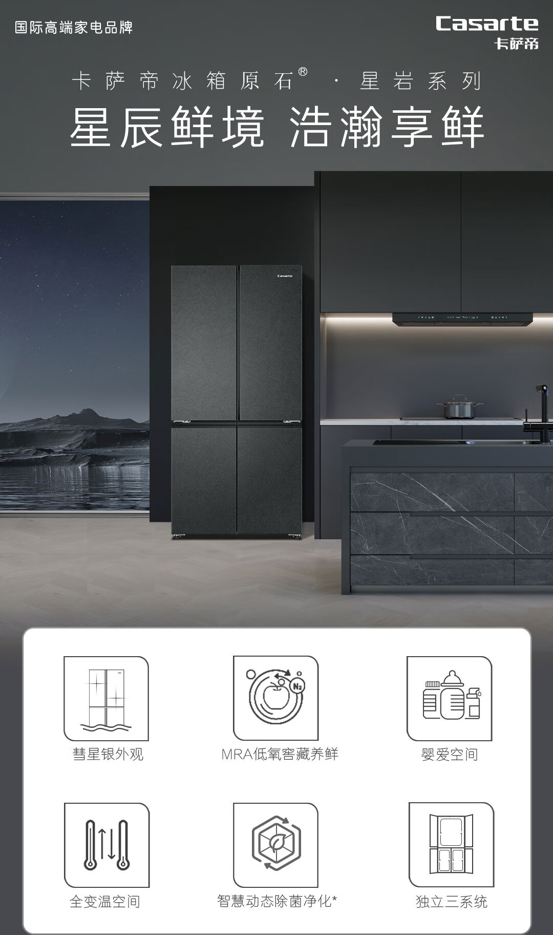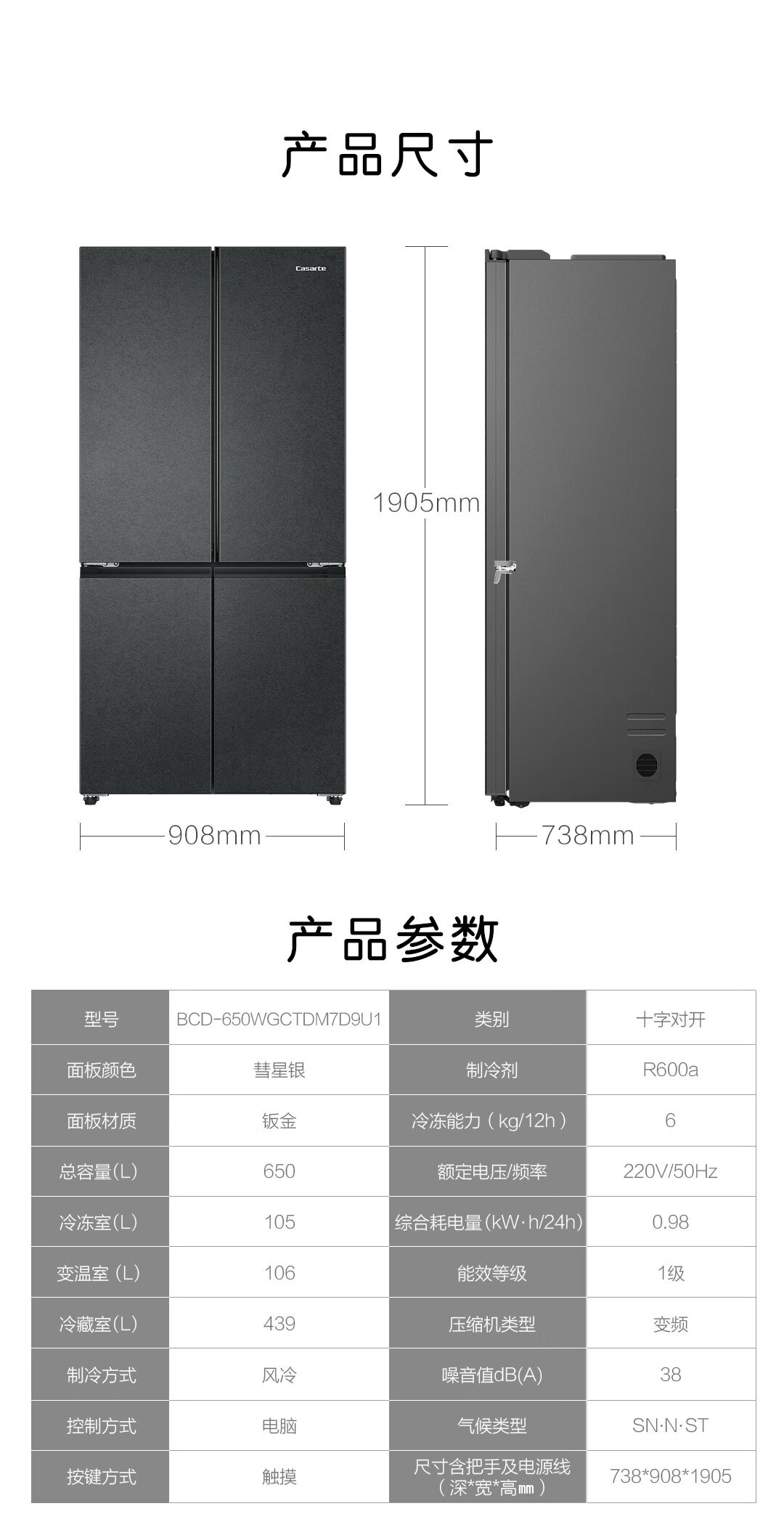 卡萨帝(Casarte)650升原石星岩系列635升级款十字四开门冰箱一级能效变频家用三系统超大容量BCD-650WGCTDM7D9U1
