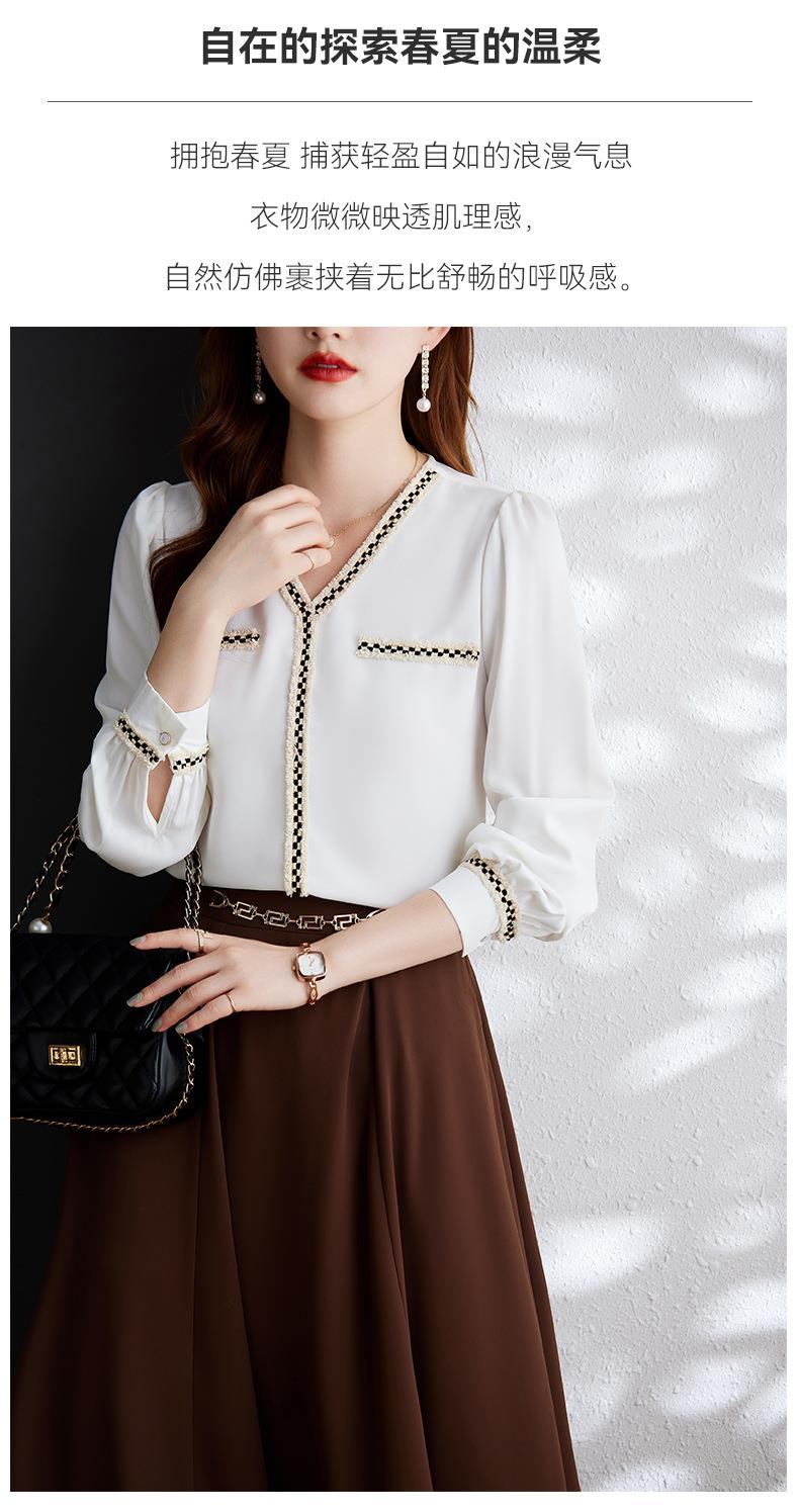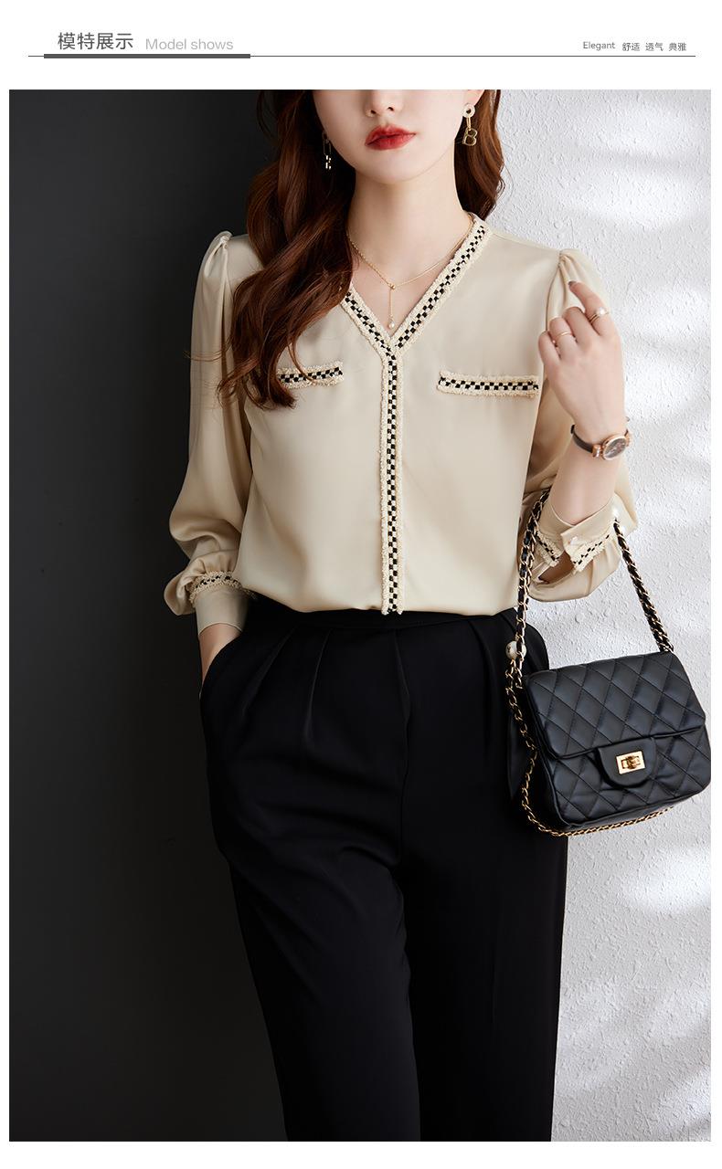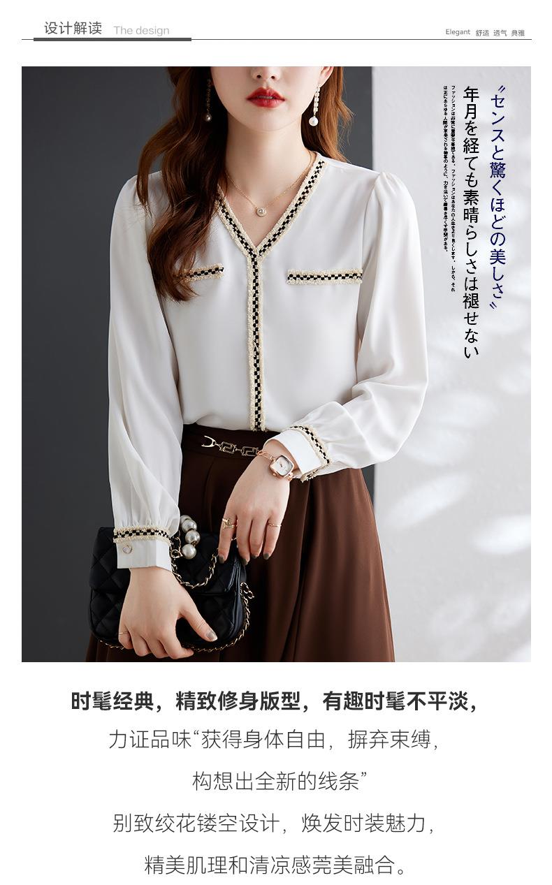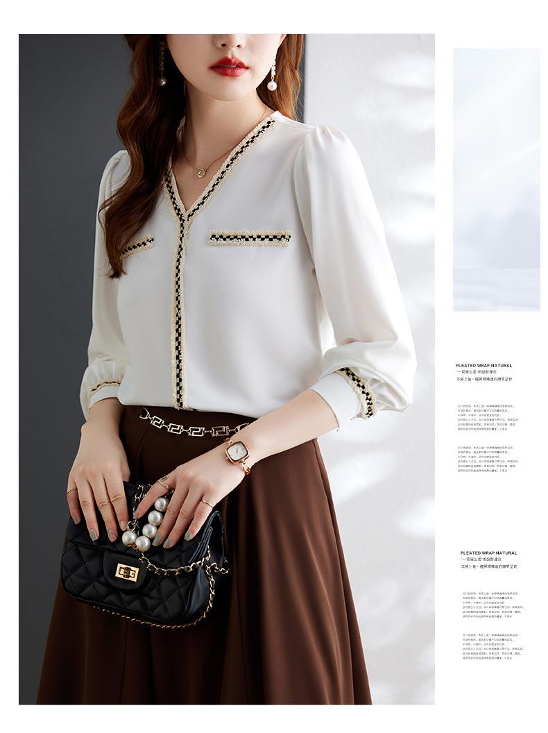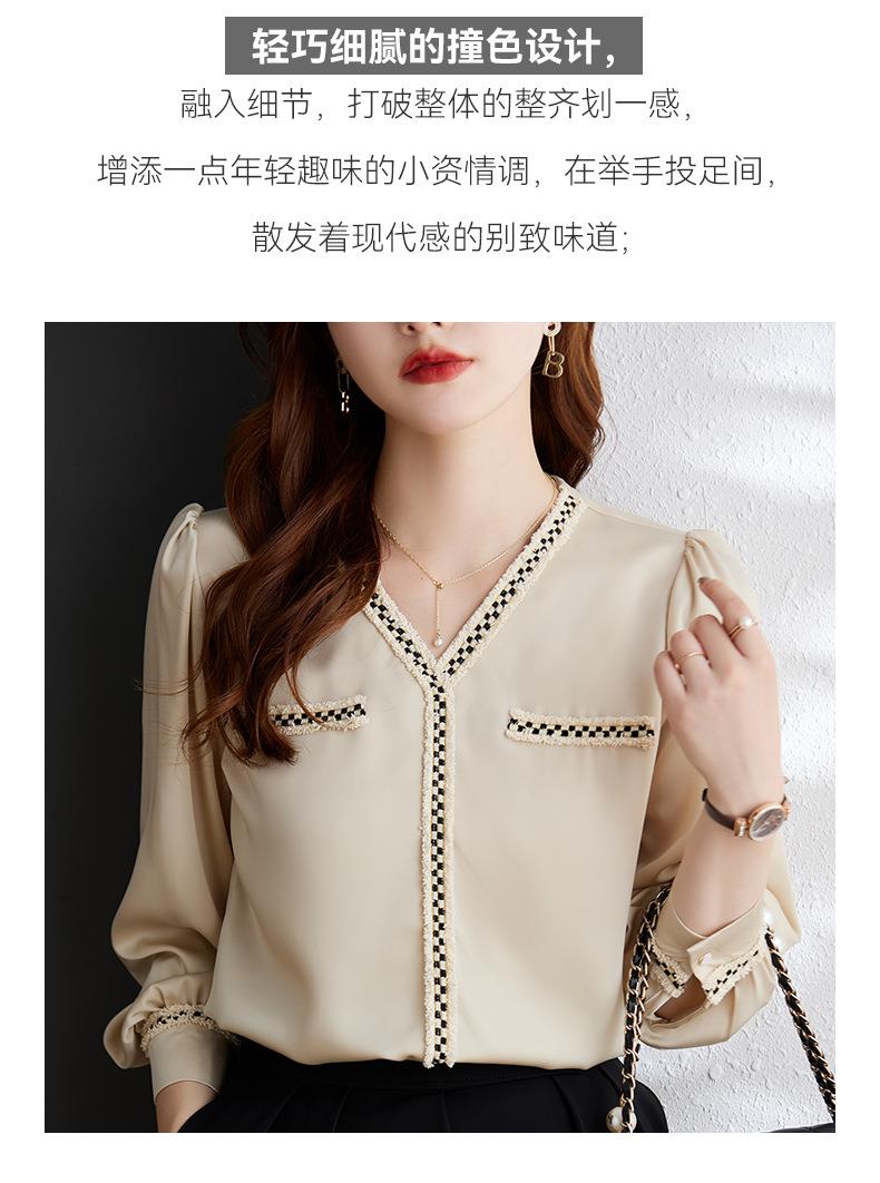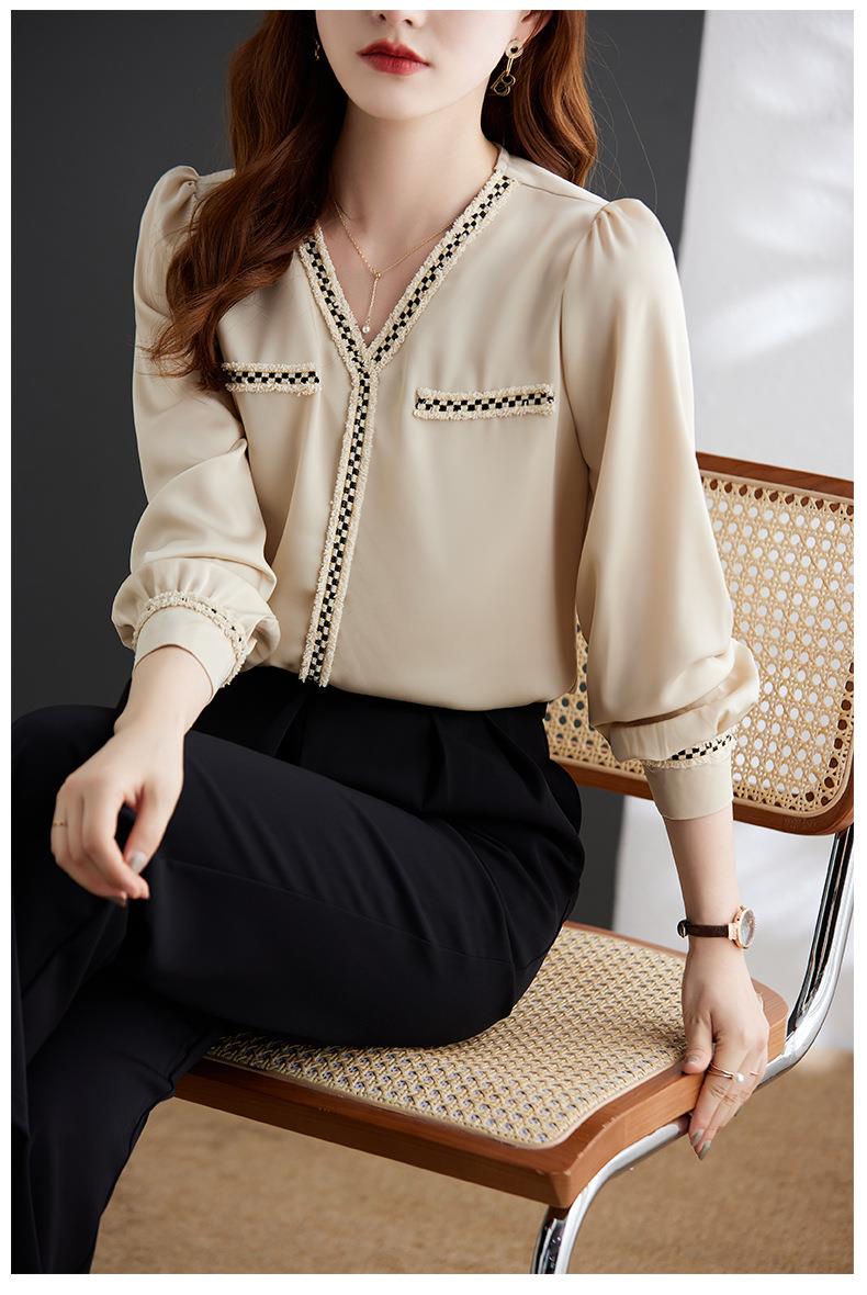 娜璐多 2023年春秋衬衣打底衫女百搭衬衫小香风V领时尚新潮别致显