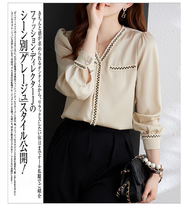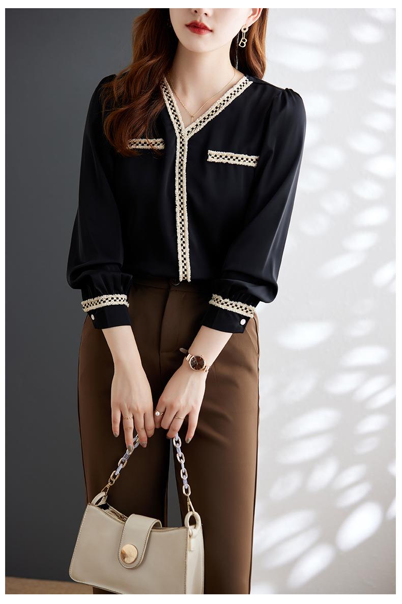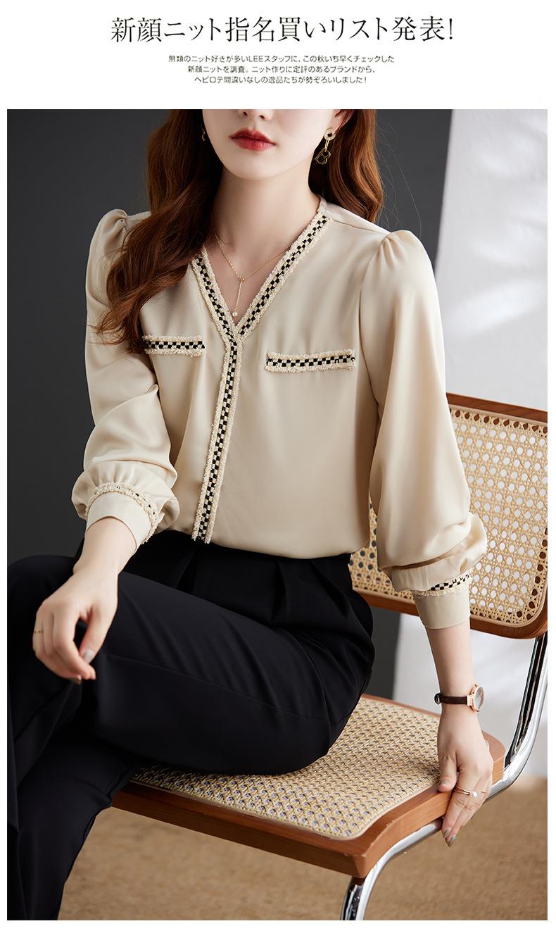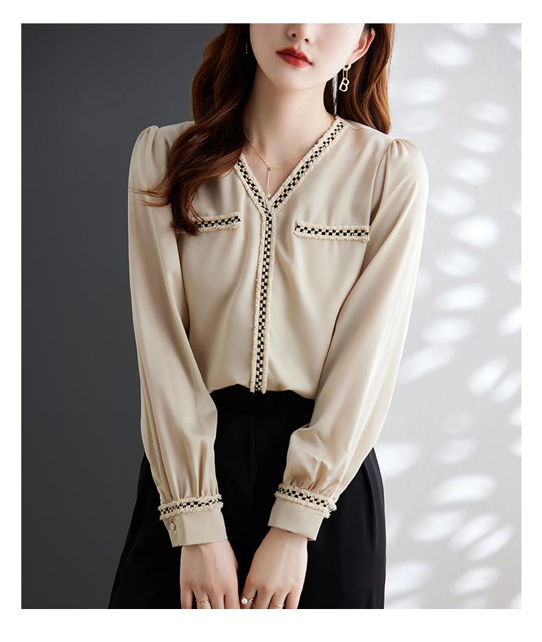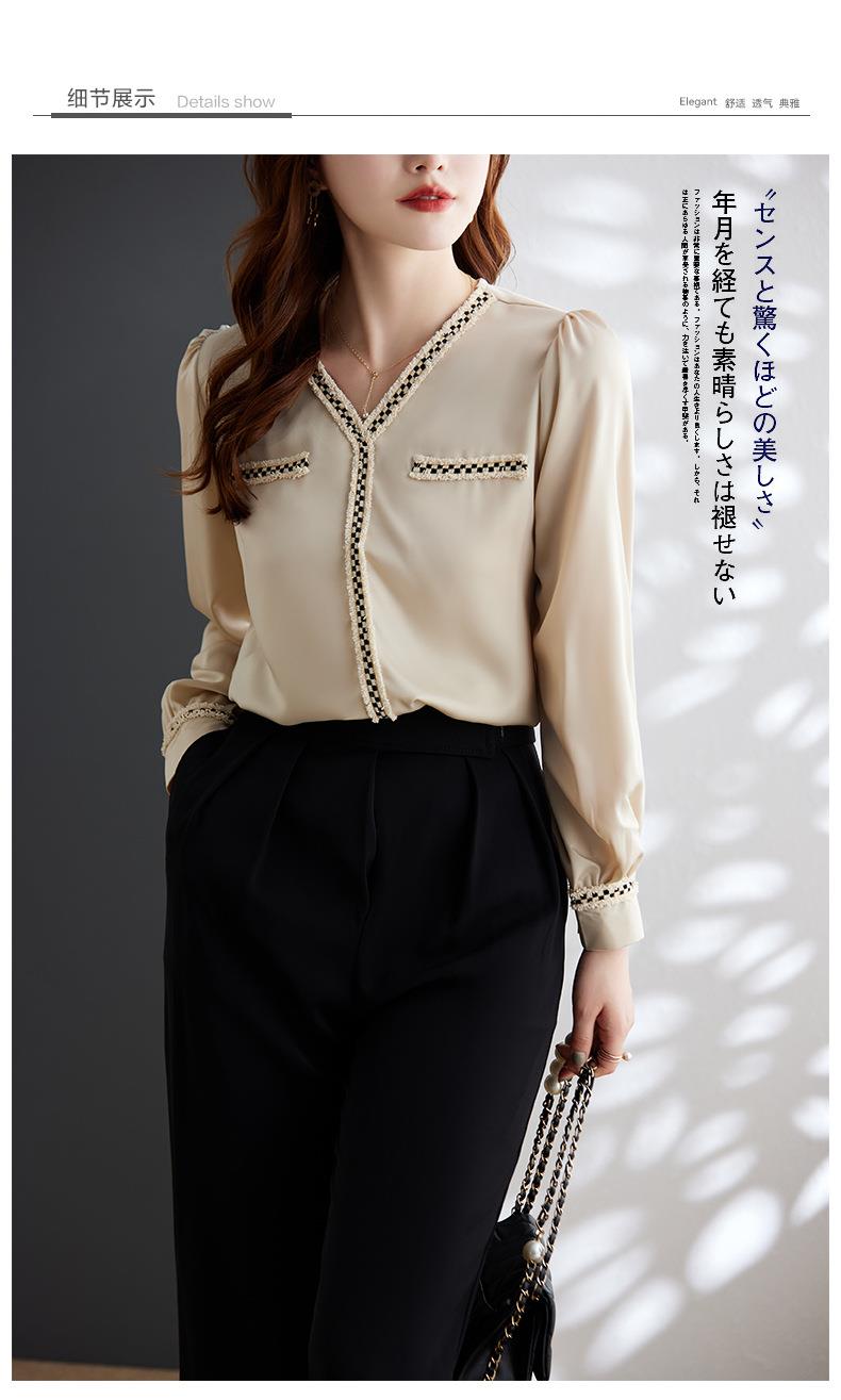 娜璐多 2023年春秋衬衣打底衫女百搭衬衫小香风V领时尚新潮别致显