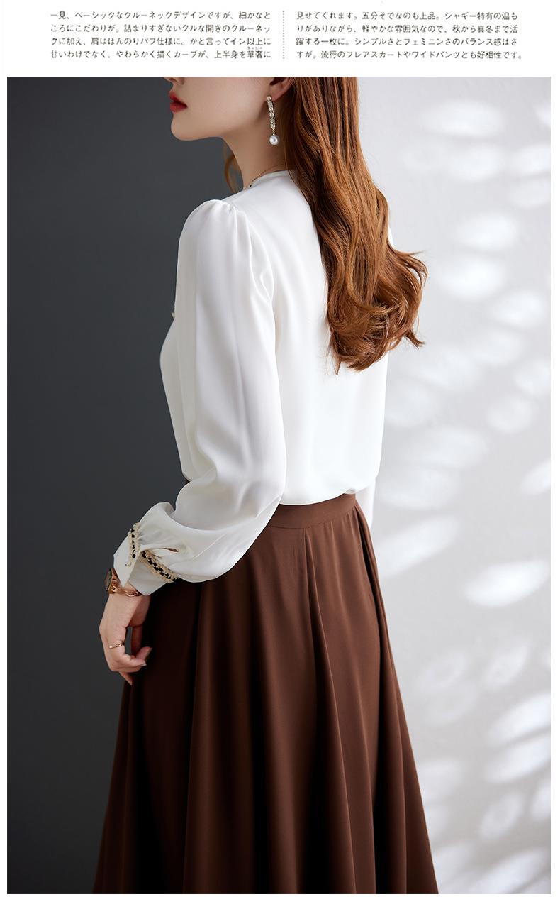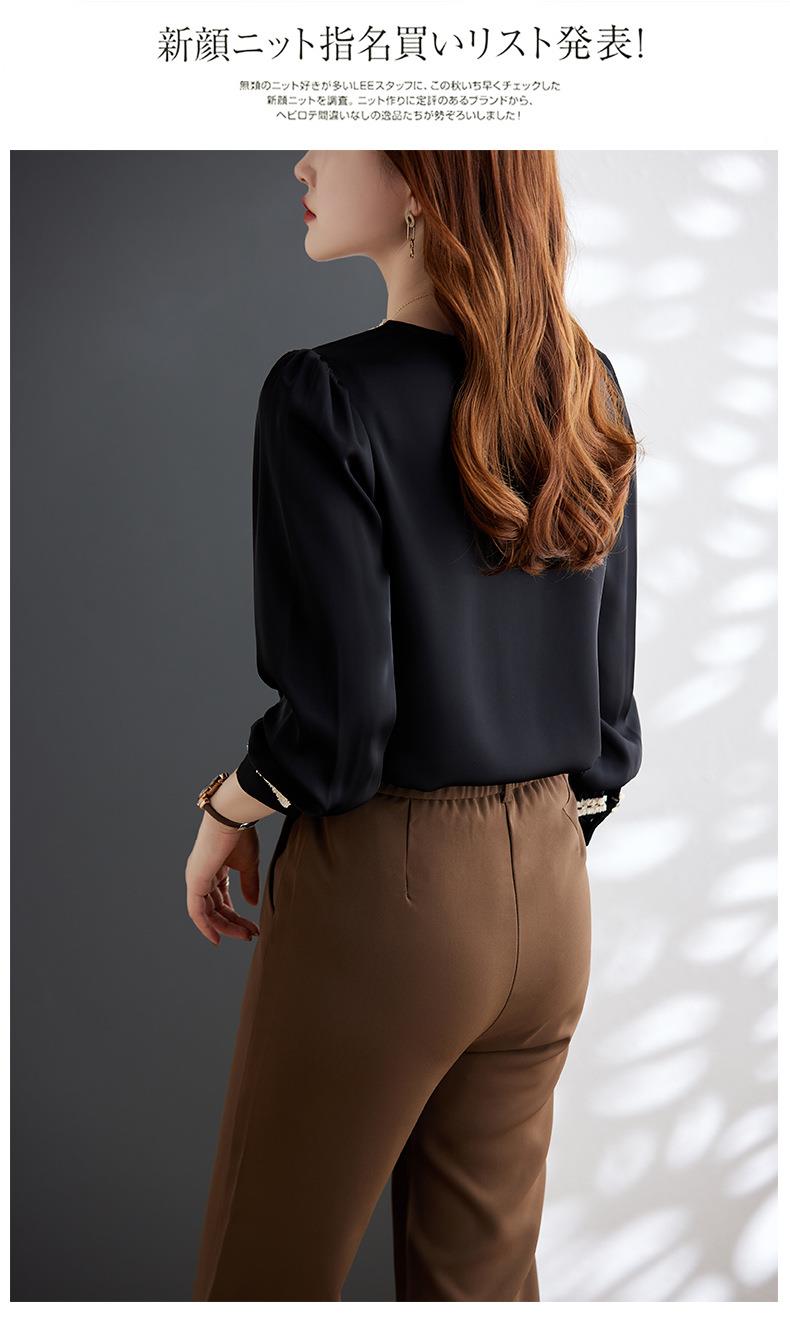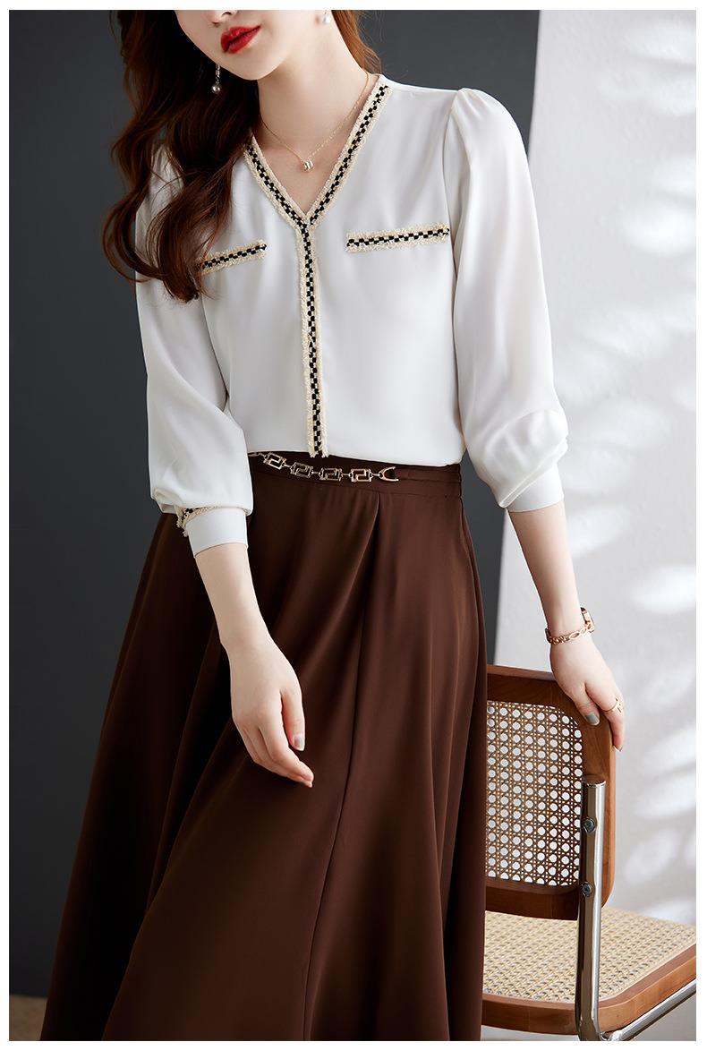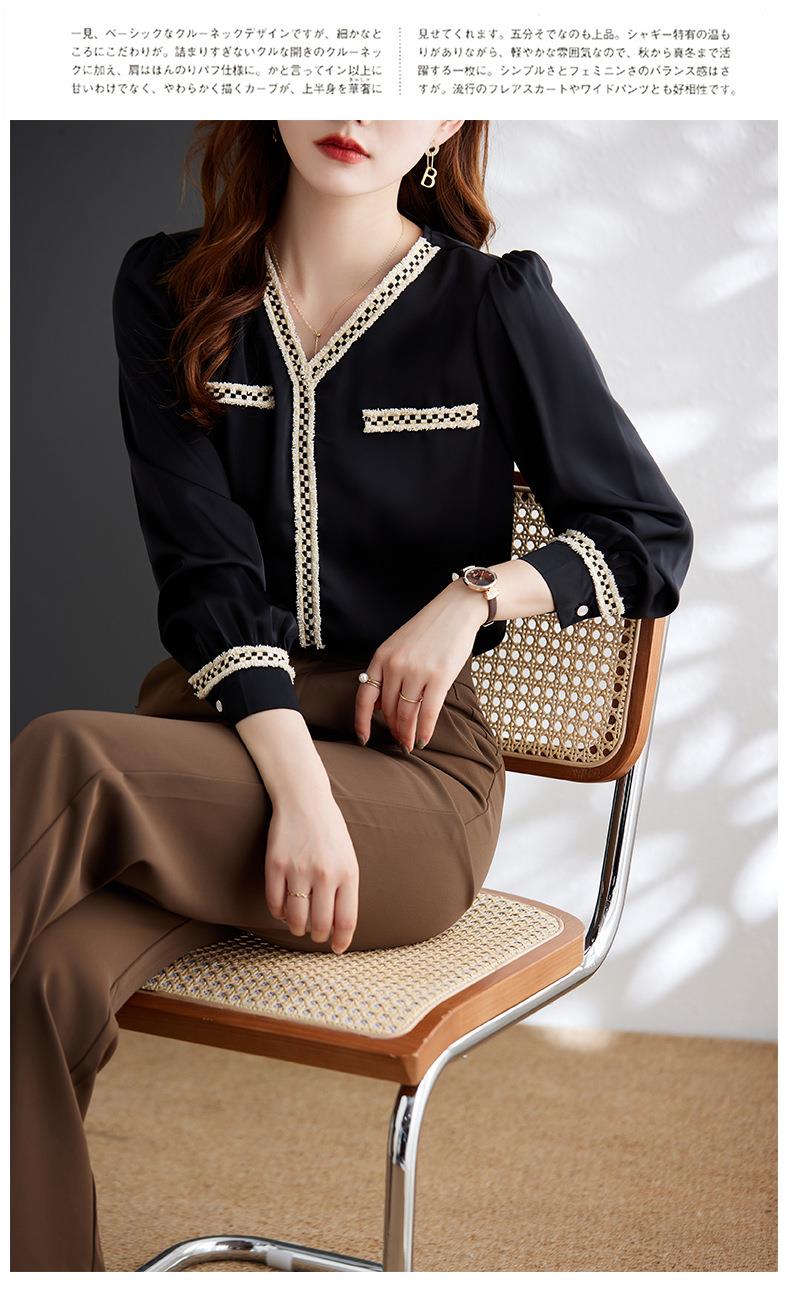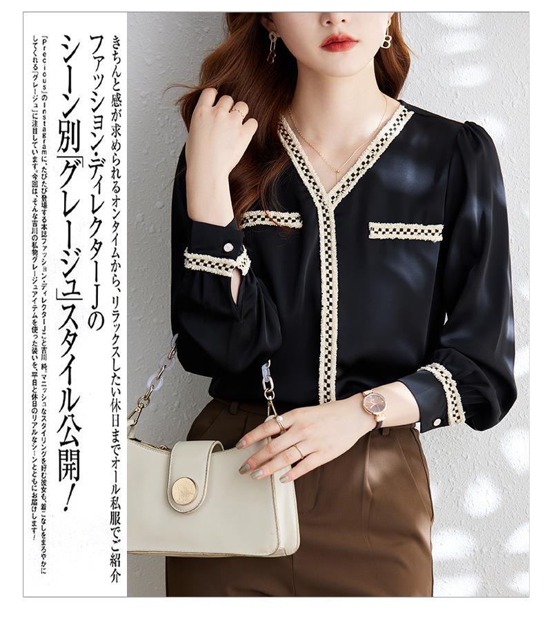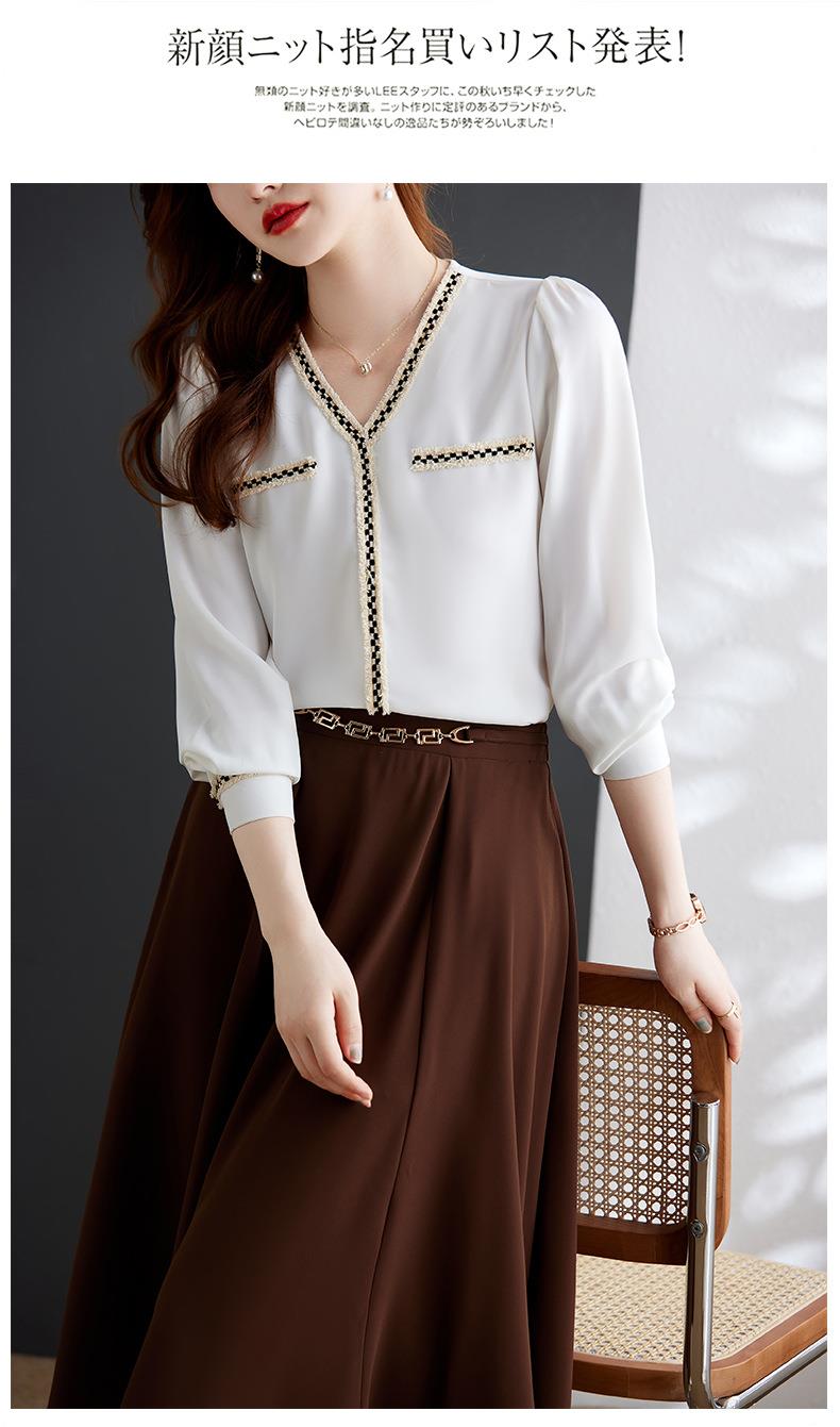 娜璐多 2023年春秋衬衣打底衫女百搭衬衫小香风V领时尚新潮别致显
