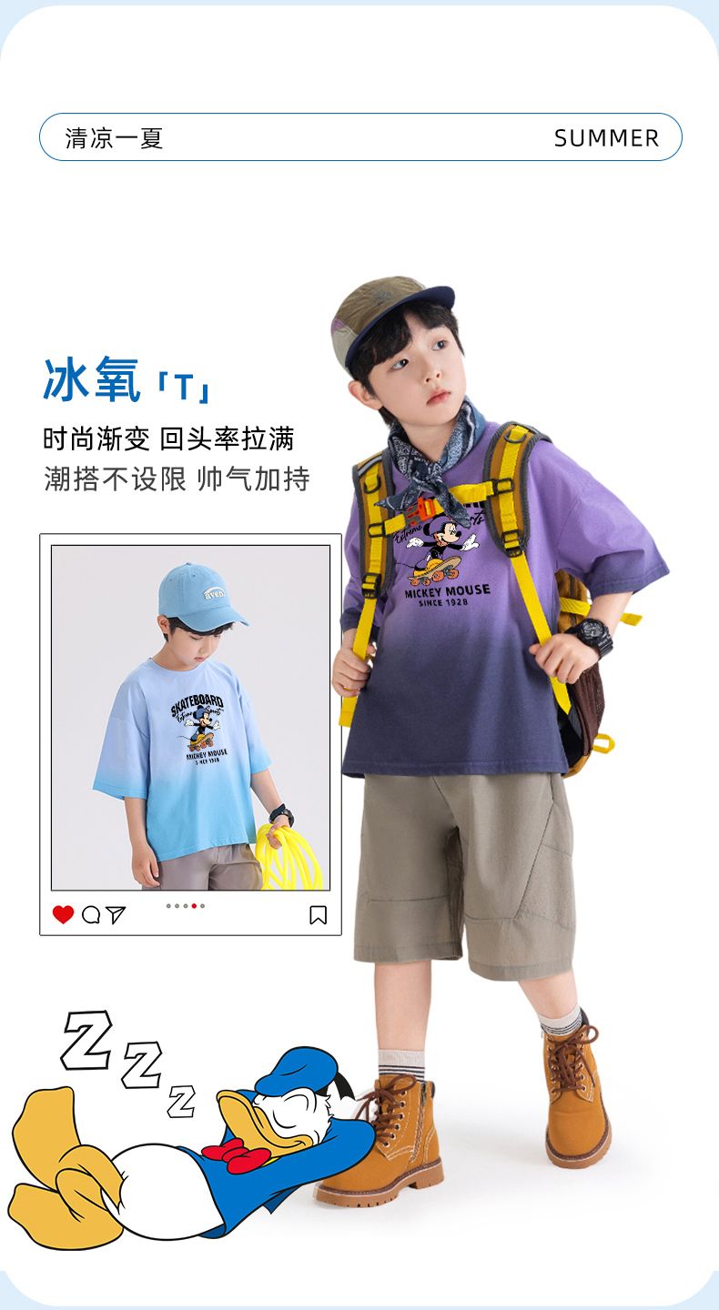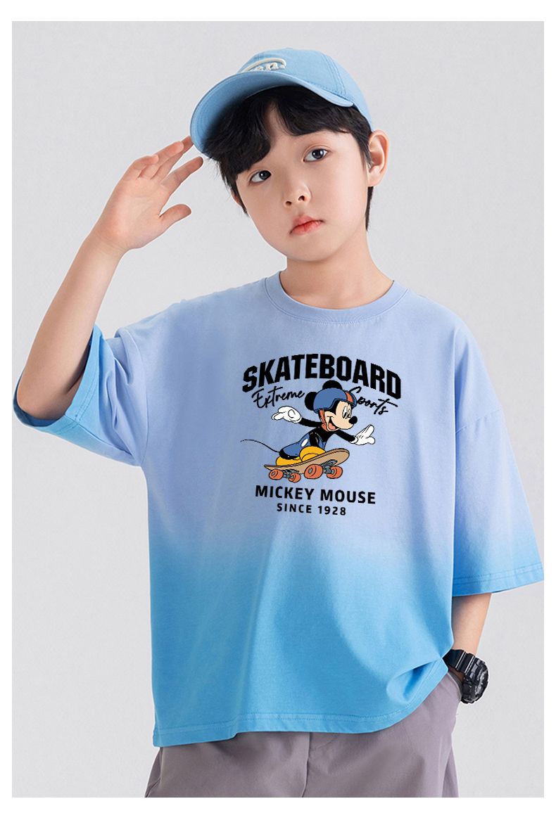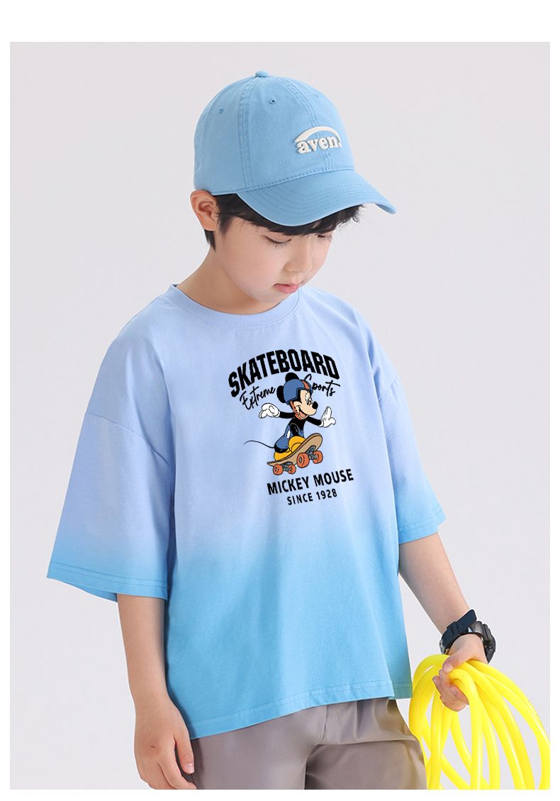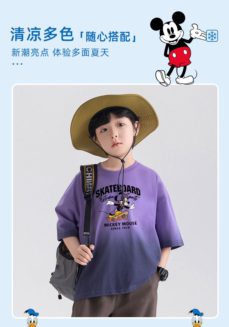 迪士尼男童短袖T恤夏季儿童渐变体恤洋气男大童上衣夏装男孩半袖